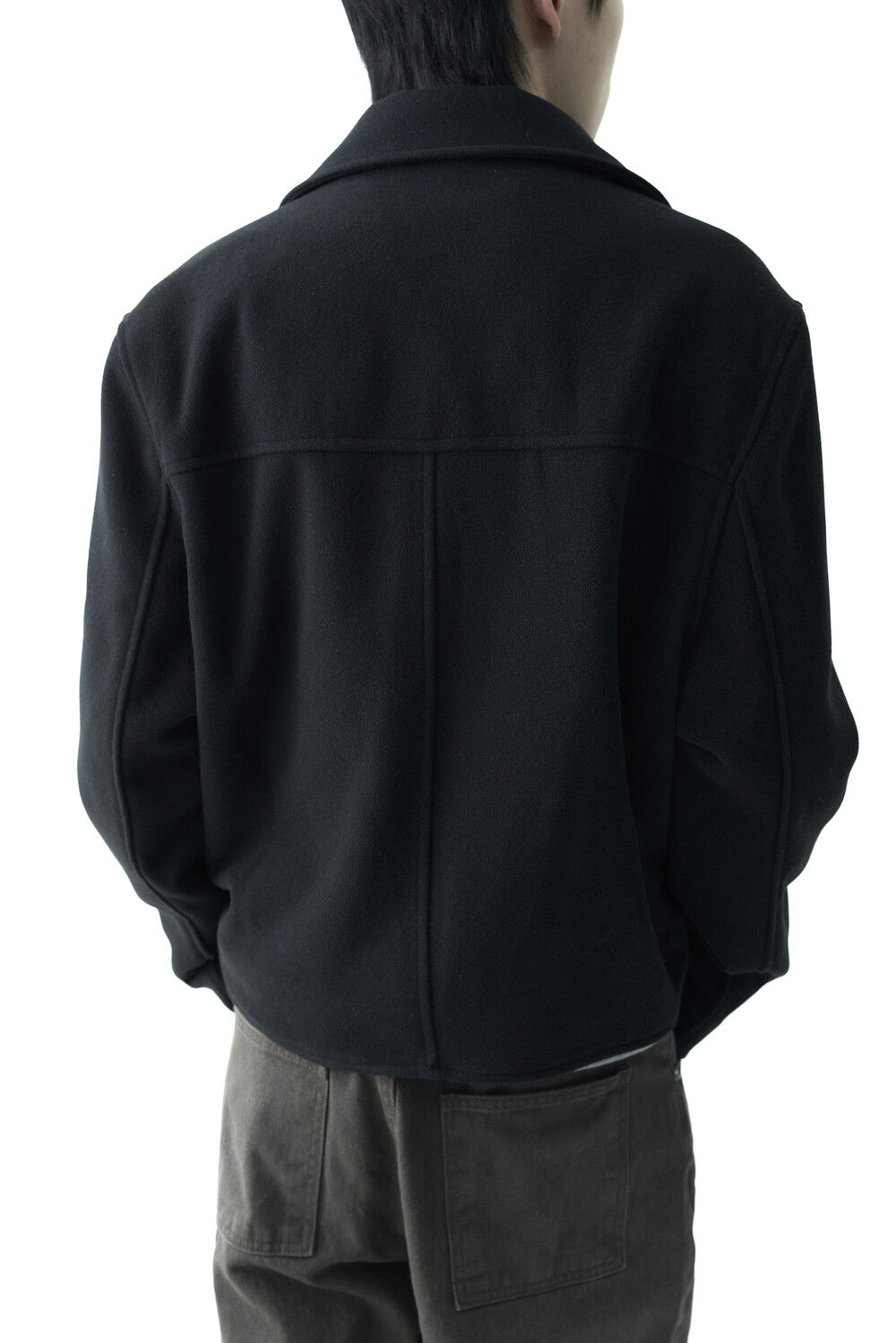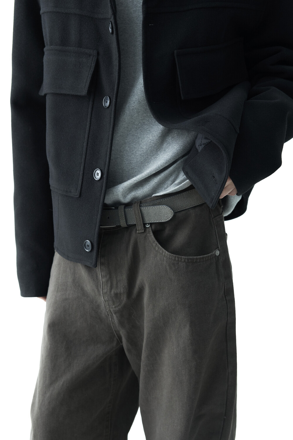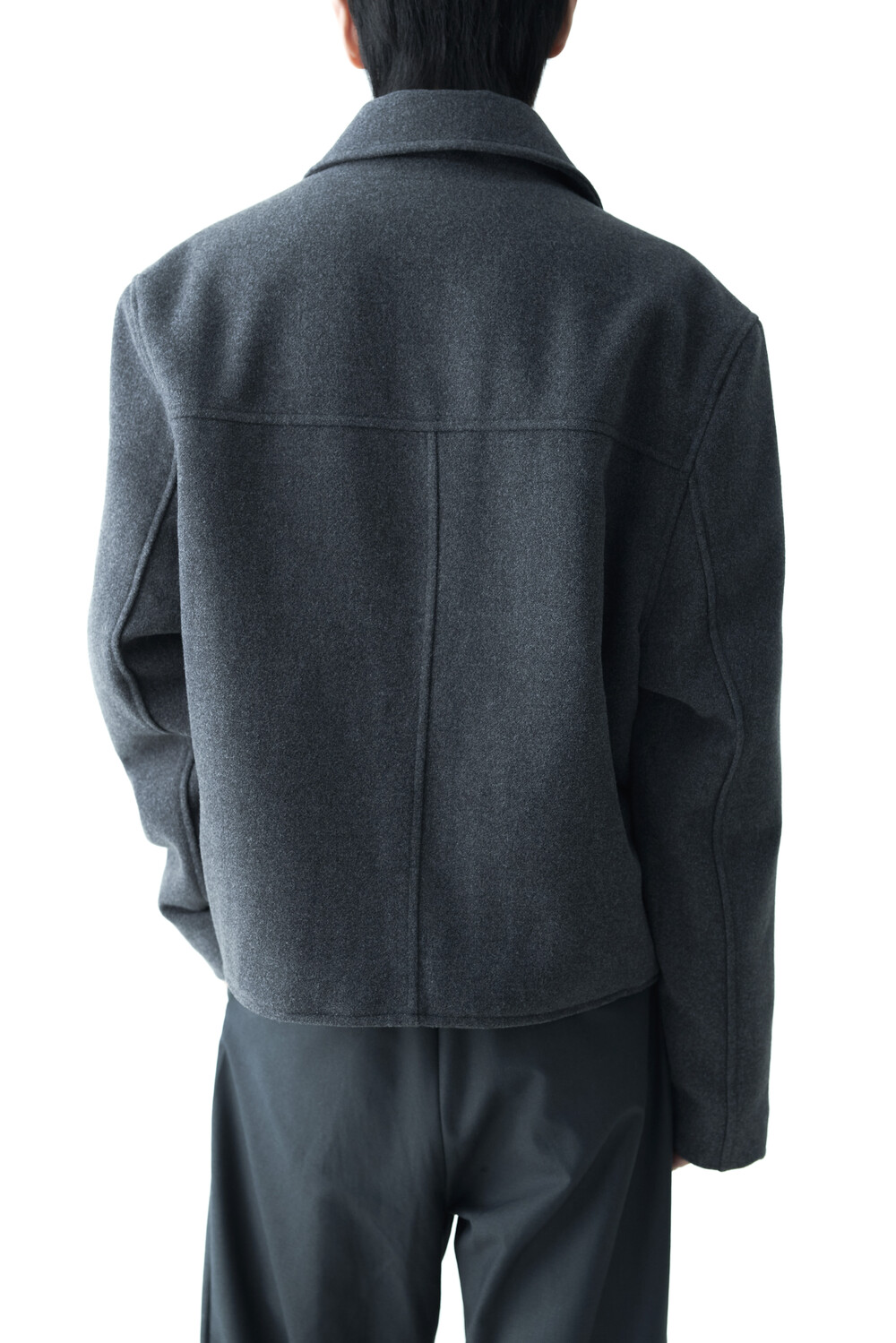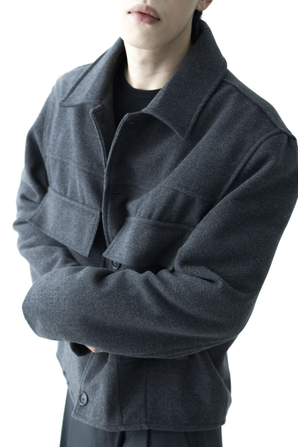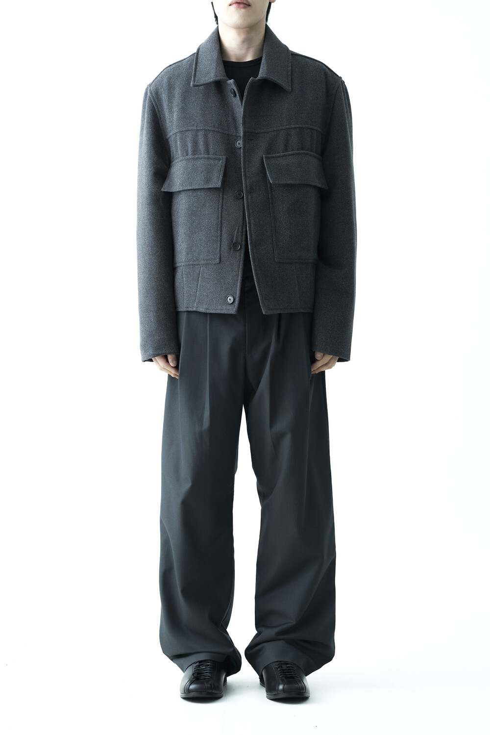 - 포멀한 싱글 자켓 스타일을 베이스로 오버한 투포켓과 전면부 절개 슬릿이 적용된 크롭 자켓 제품입니다.