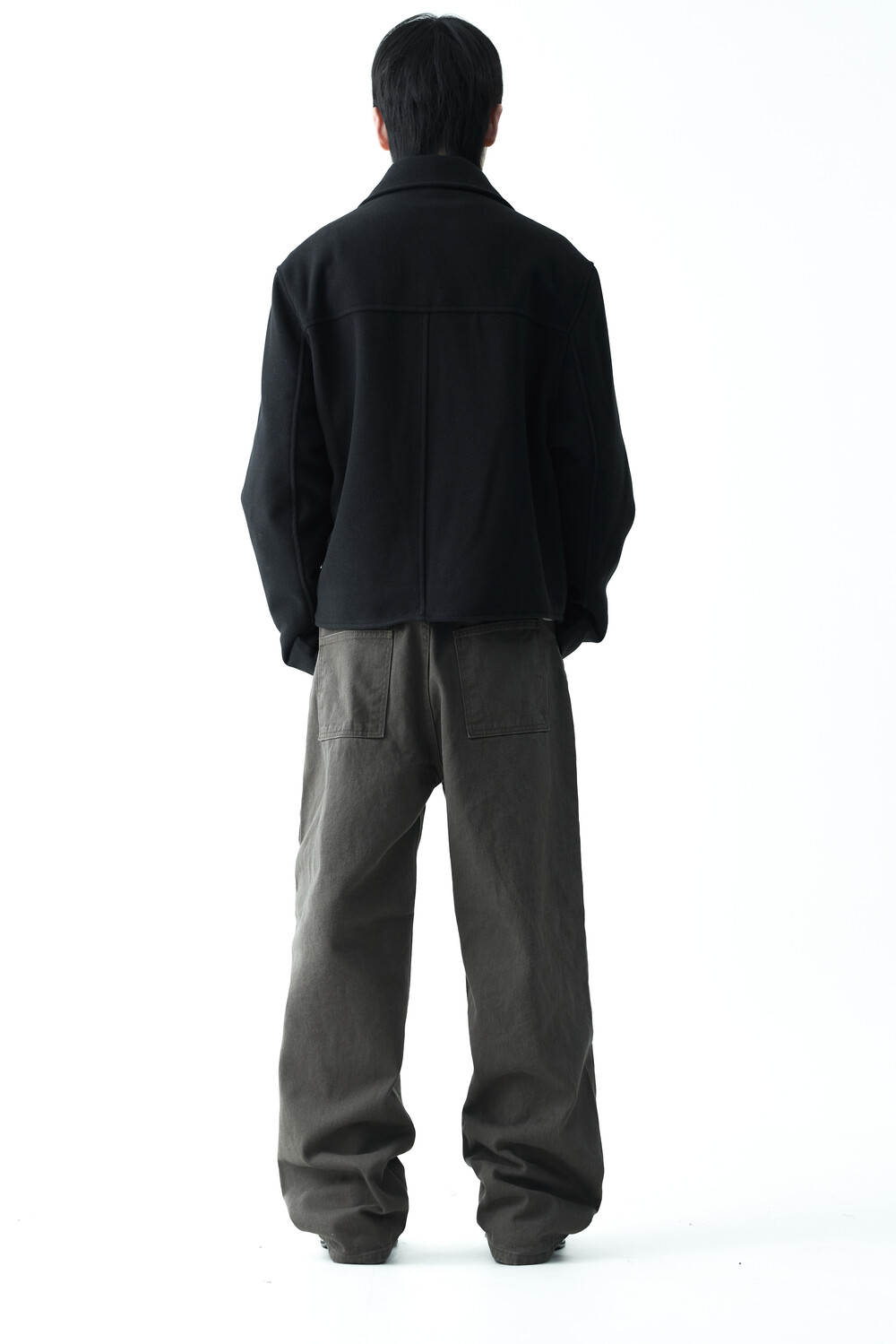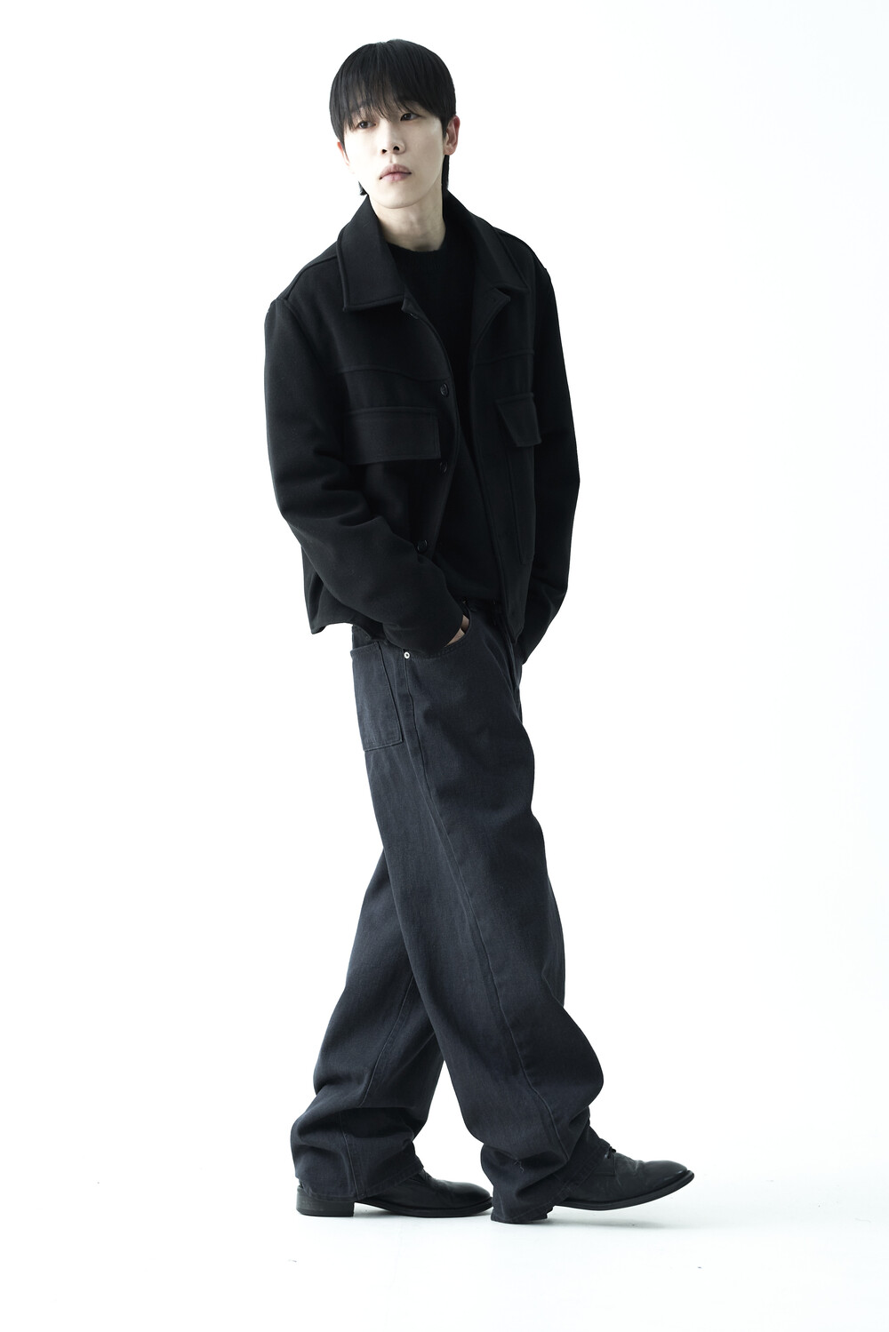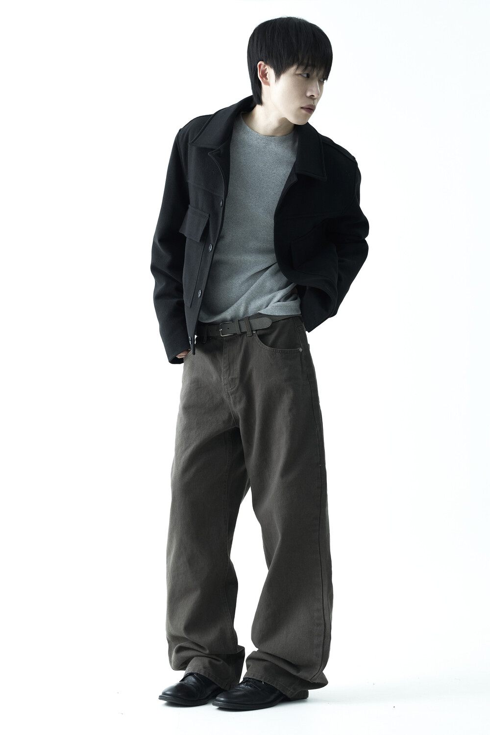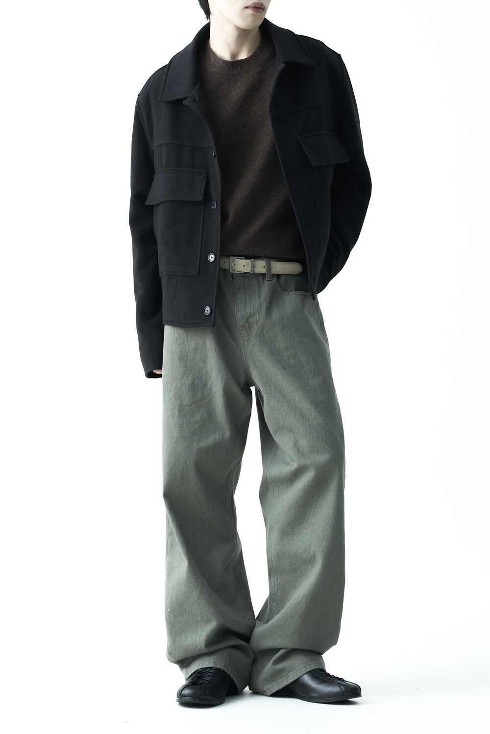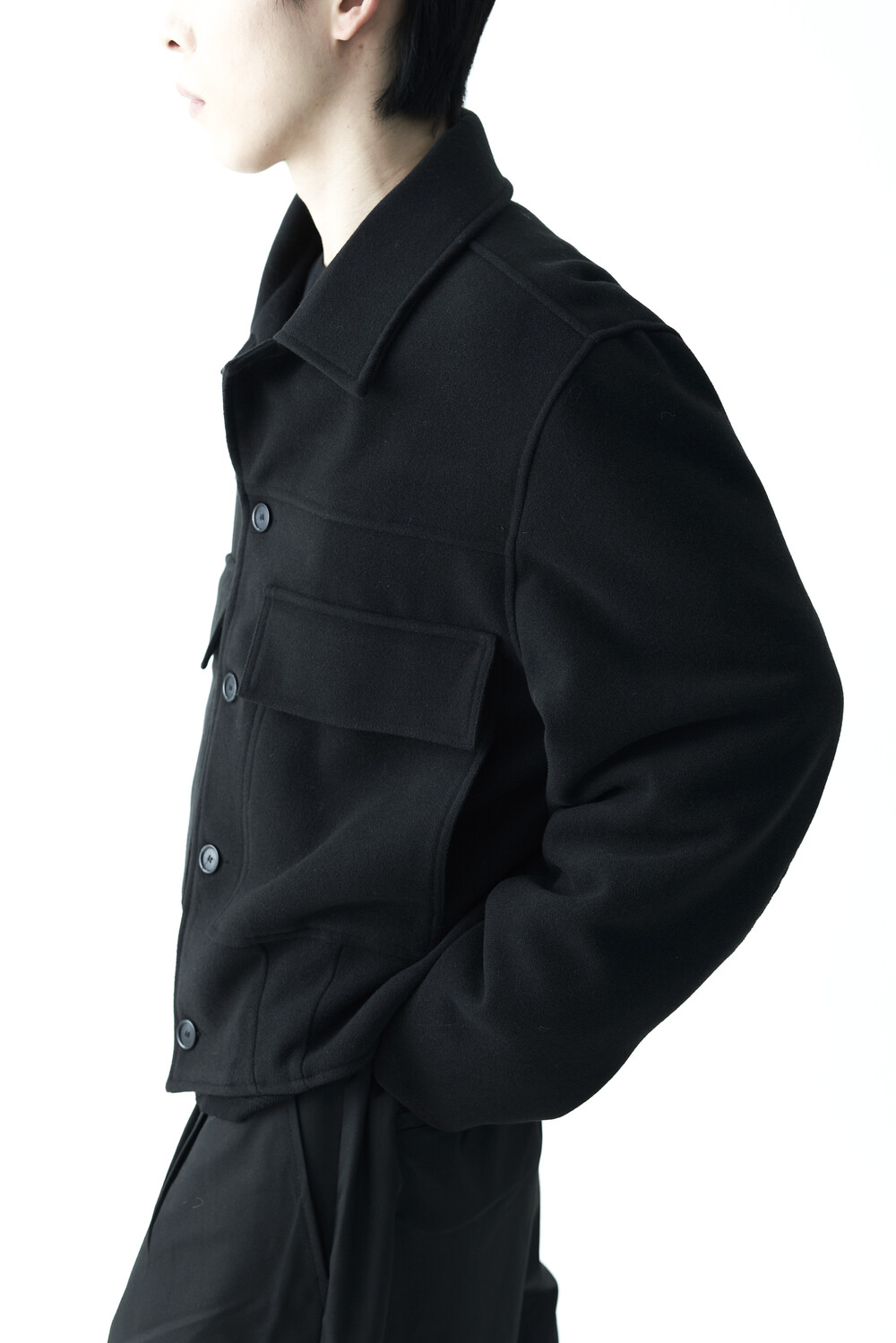 - 포멀한 싱글 자켓 스타일을 베이스로 오버한 투포켓과 전면부 절개 슬릿이 적용된 크롭 자켓 제품입니다.