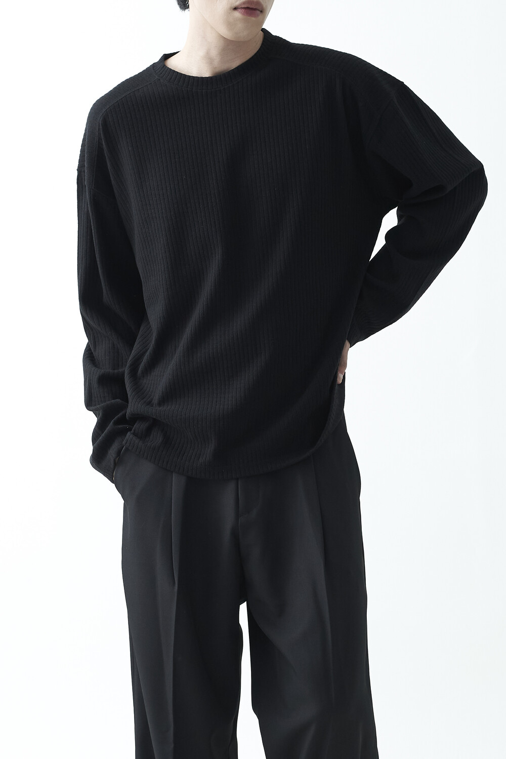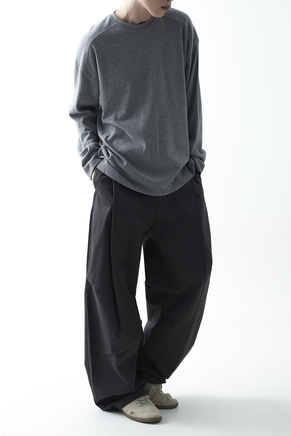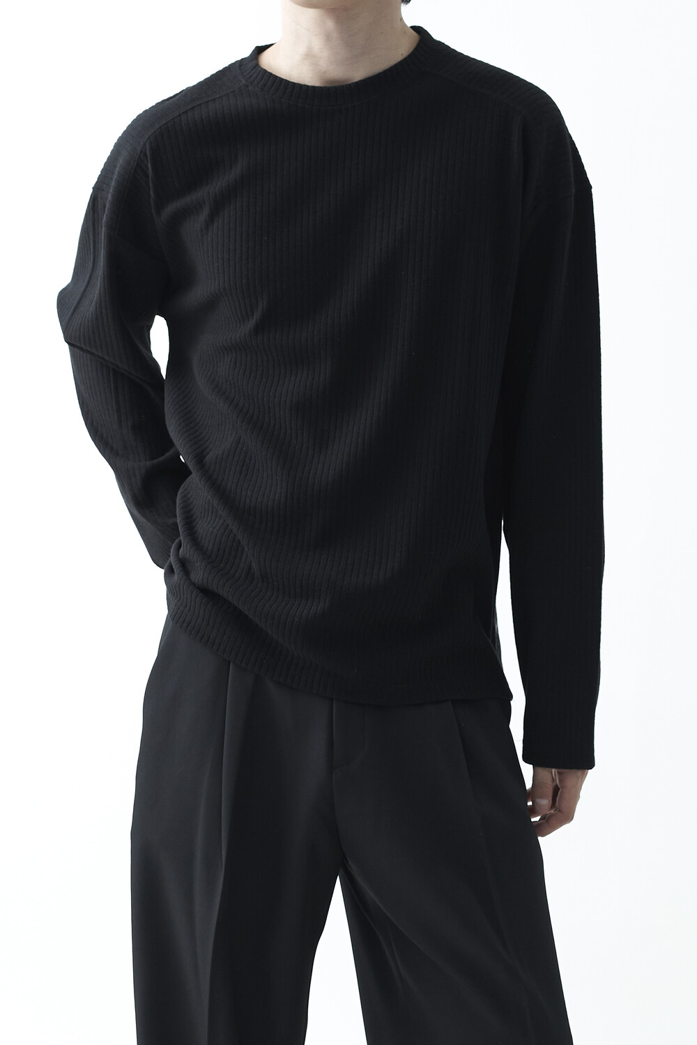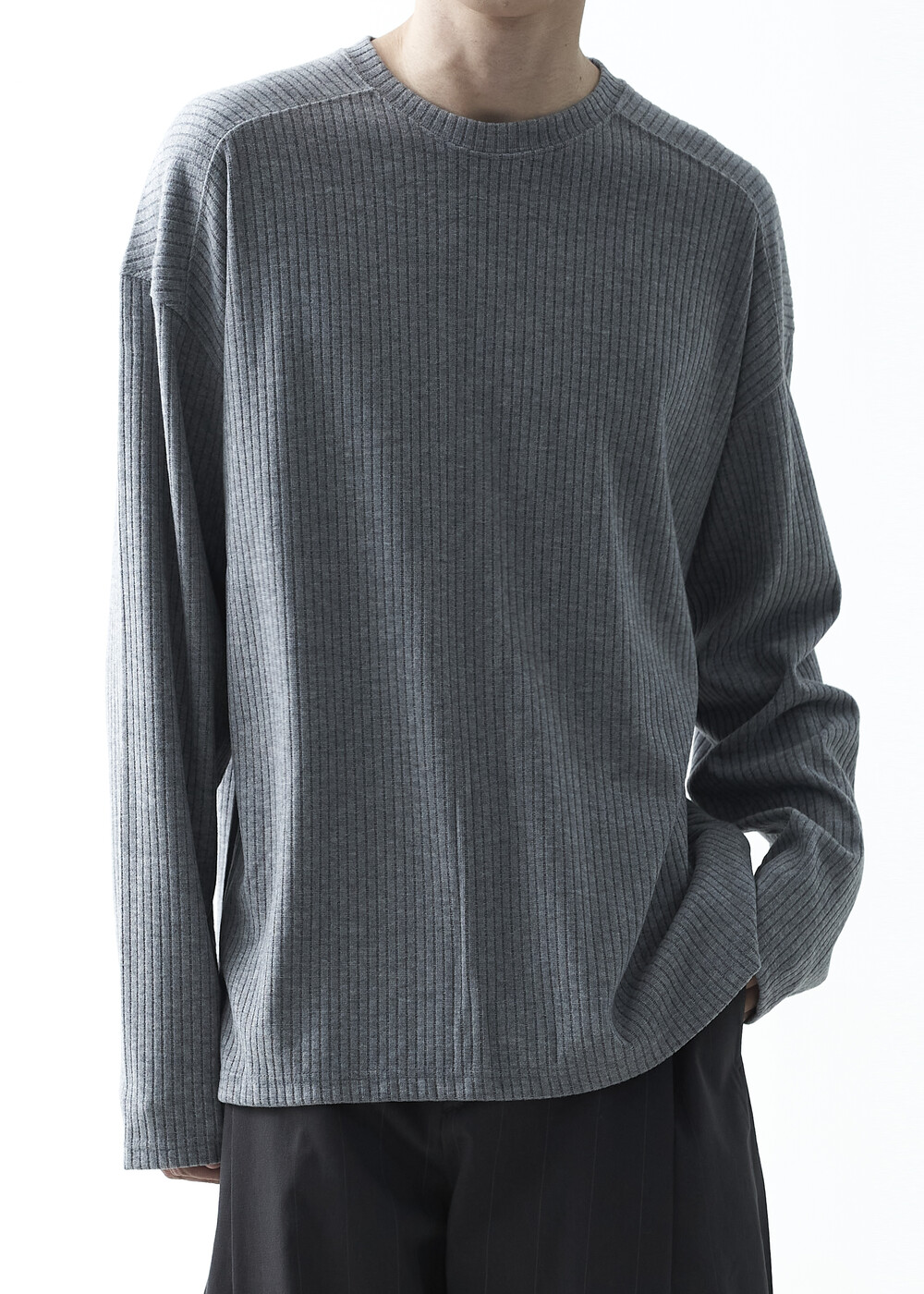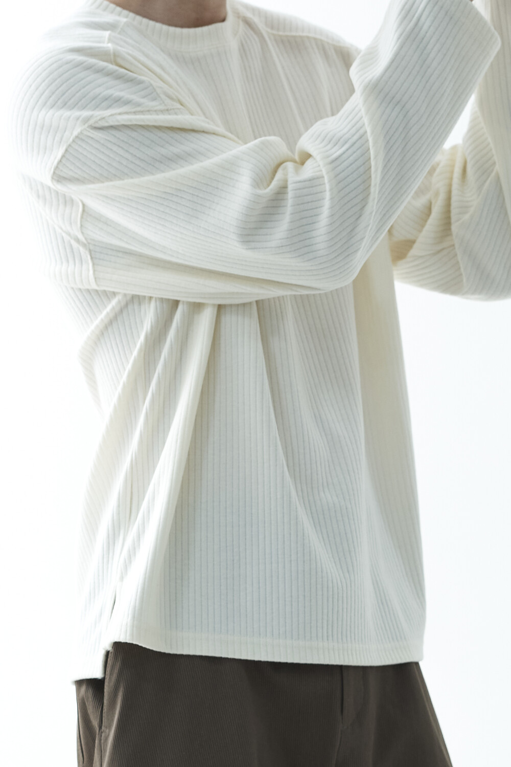 볼드한 골지 텍스쳐의 패턴으로 구성된 슬리브 티 제품입니다.