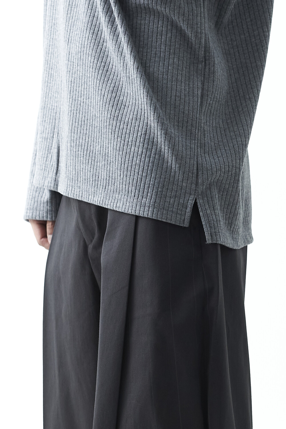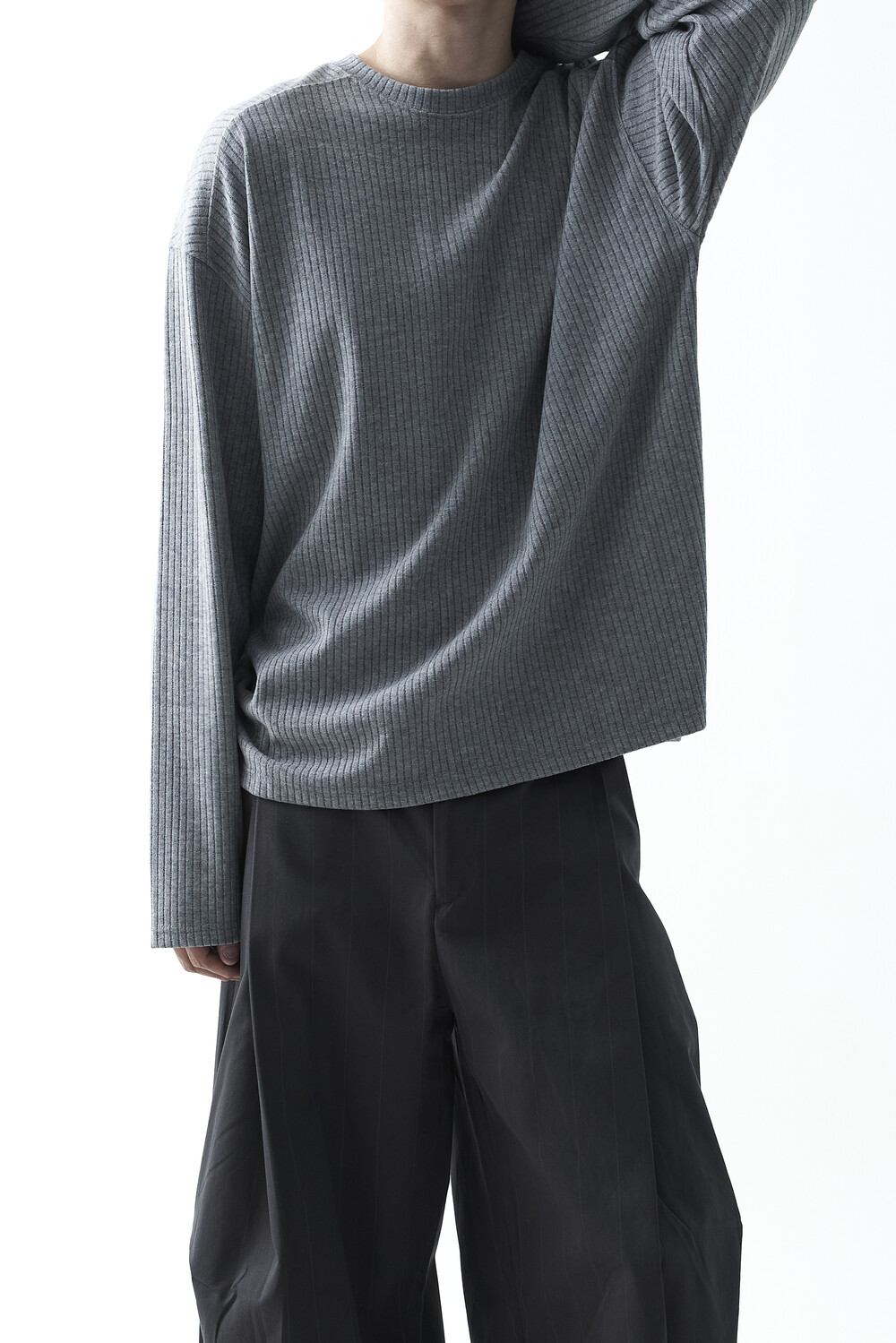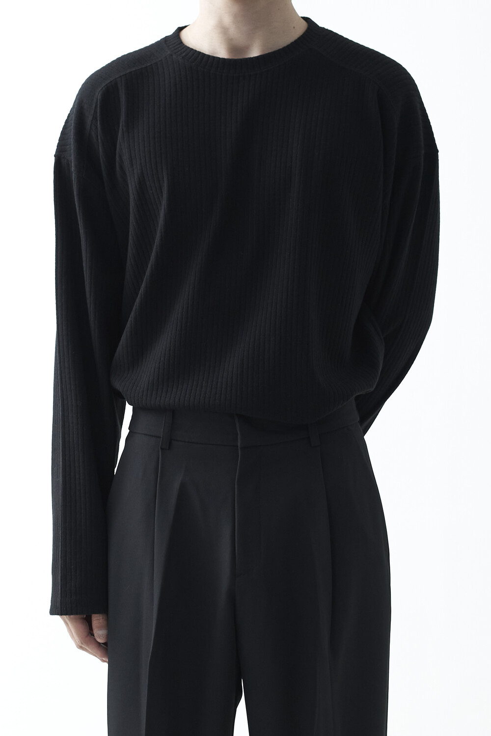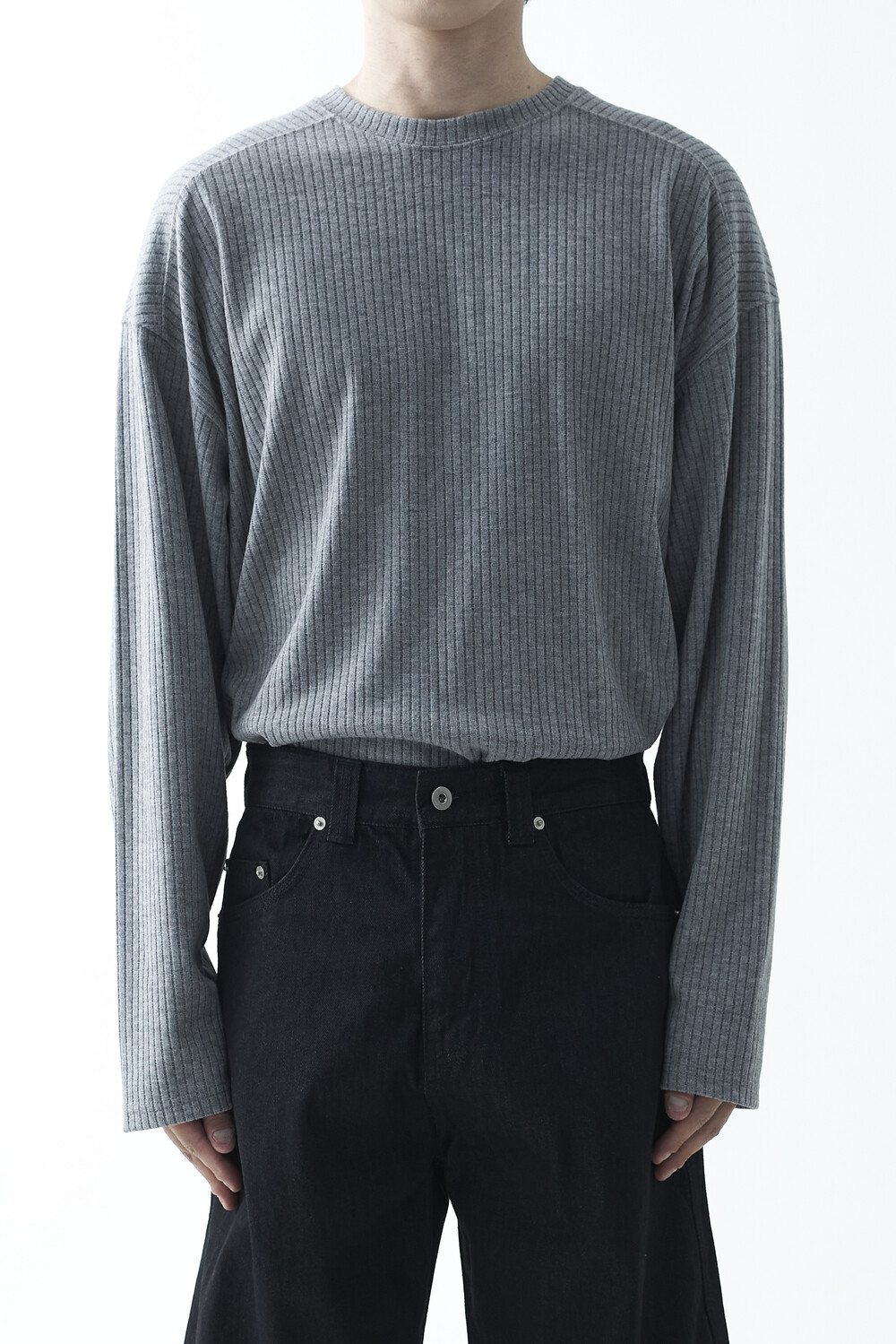 볼드한 골지 텍스쳐의 패턴으로 구성된 슬리브 티 제품입니다.