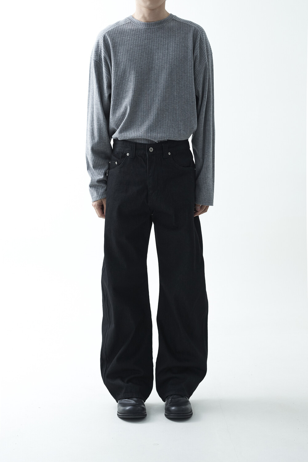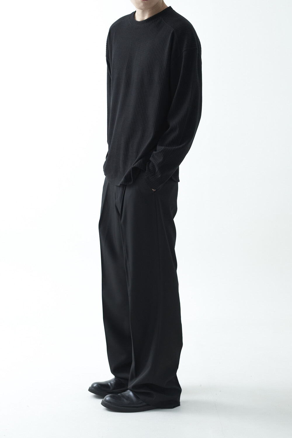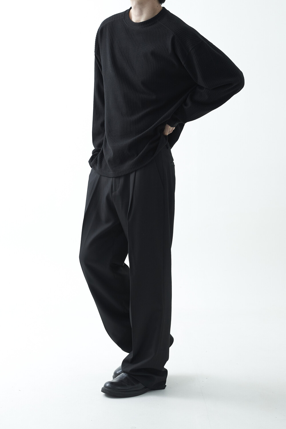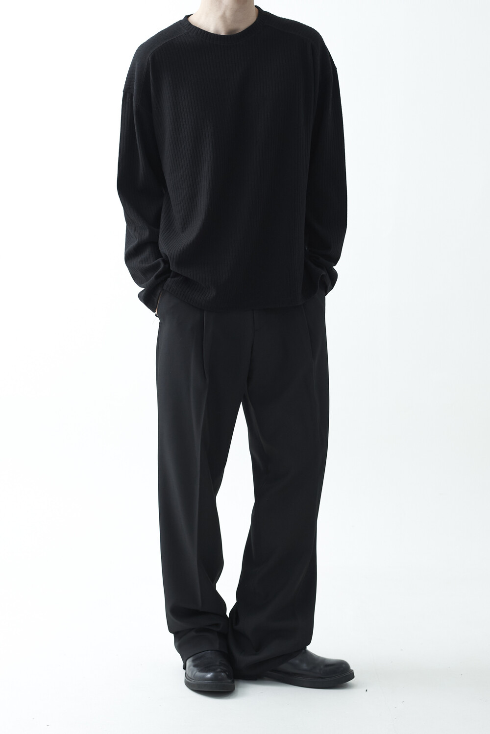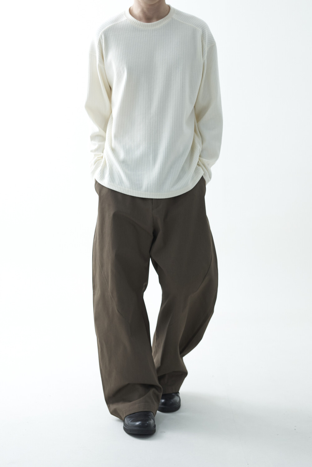 볼드한 골지 텍스쳐의 패턴으로 구성된 슬리브 티 제품입니다.