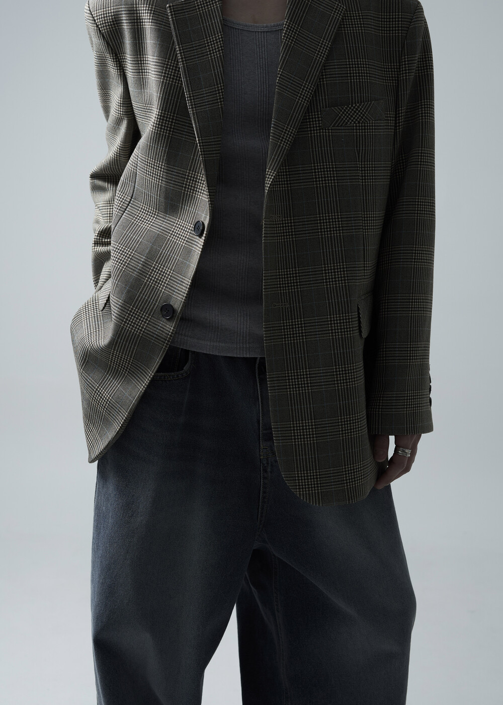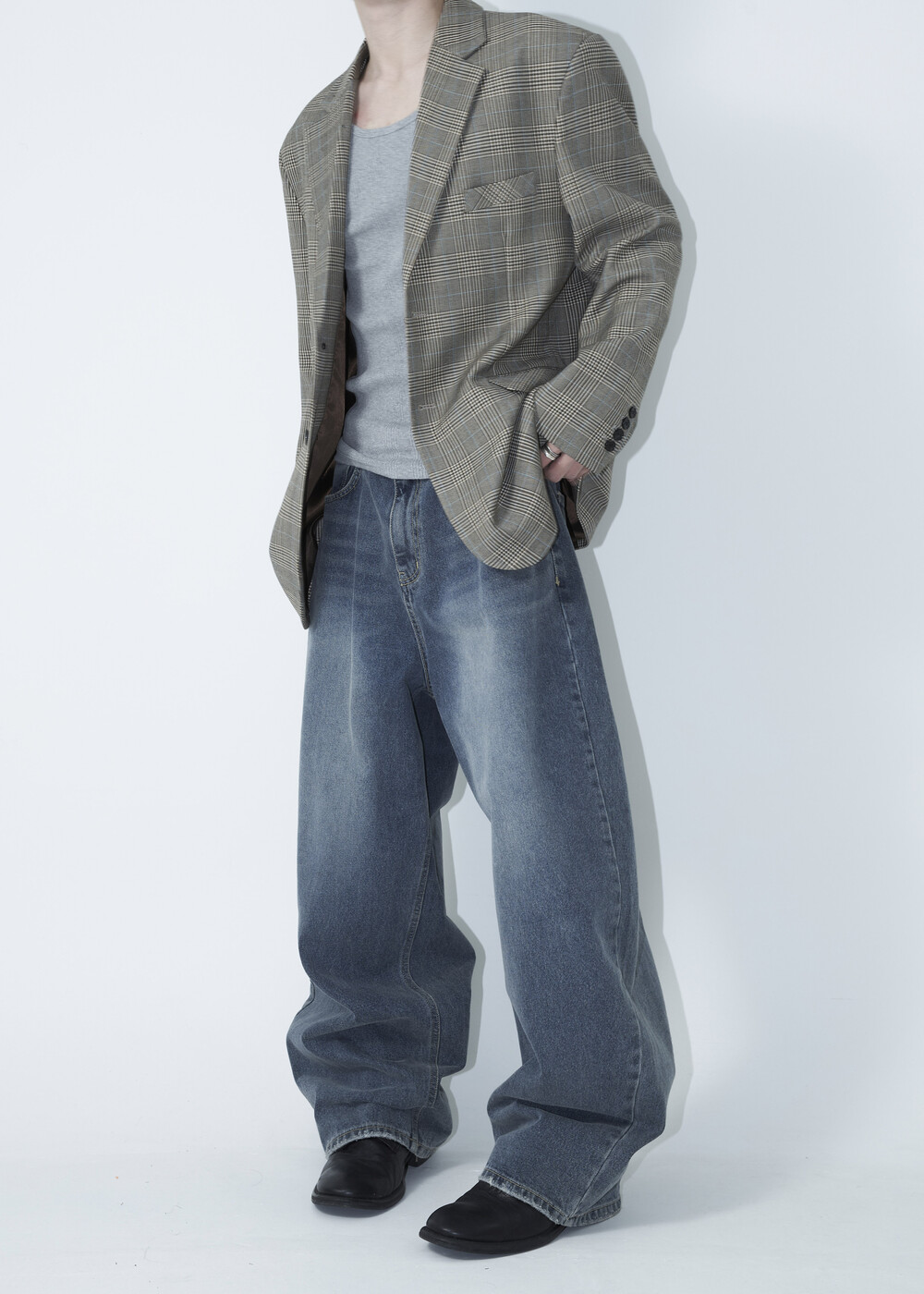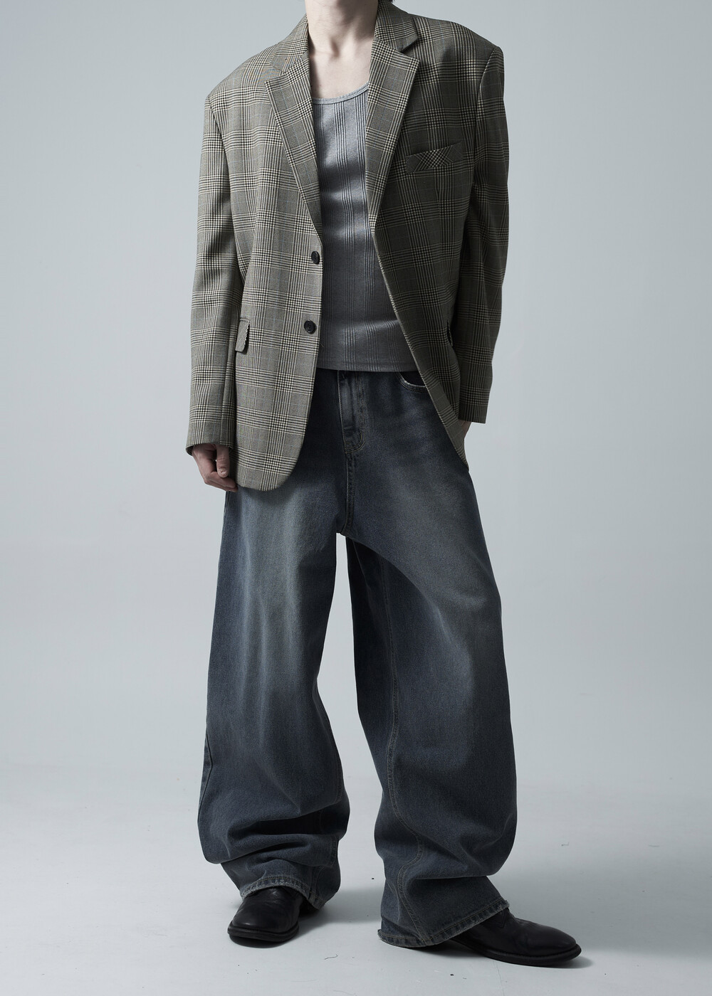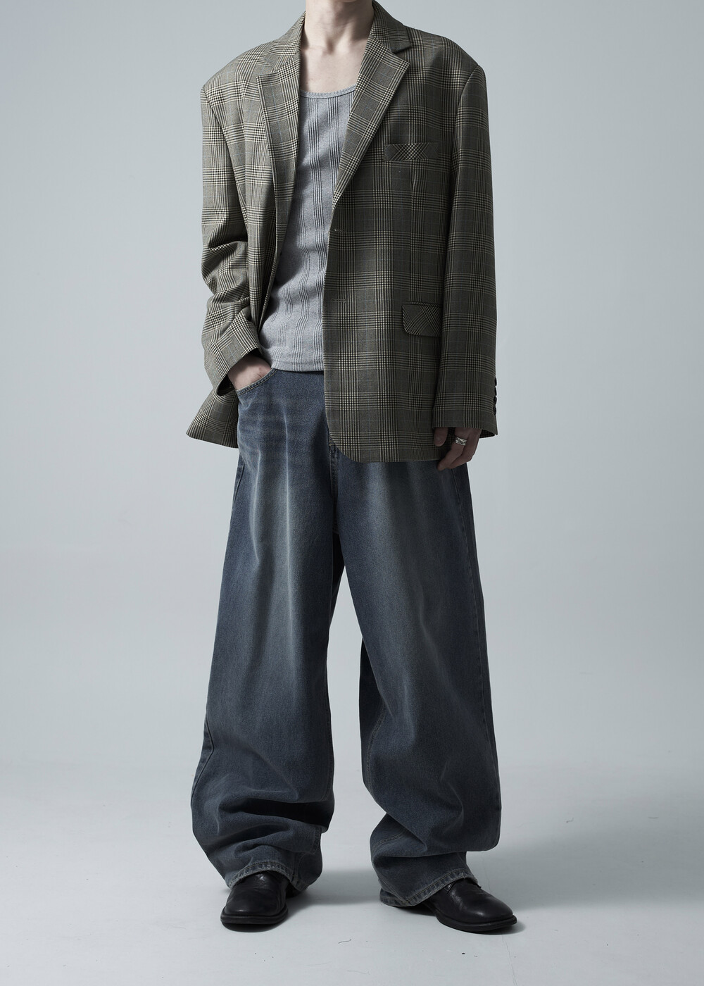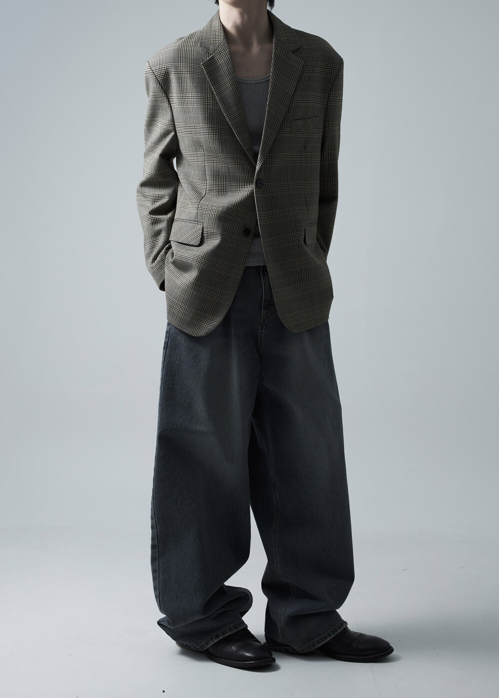 레트로 감성을 현대적인 느낌으로 재해석한 베이지 컬러감의 대디핏 체크 블레이져 자켓 제품입니다.