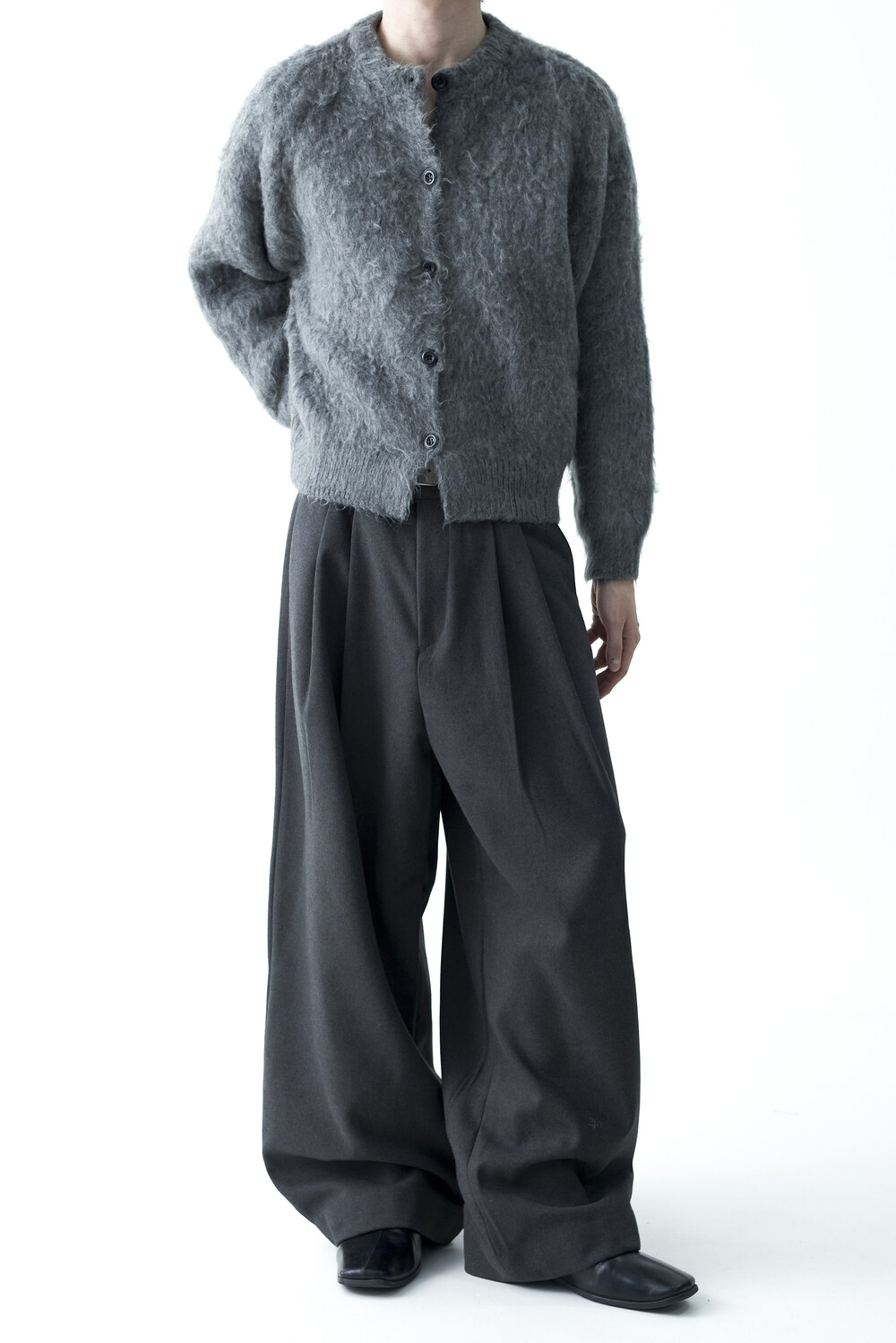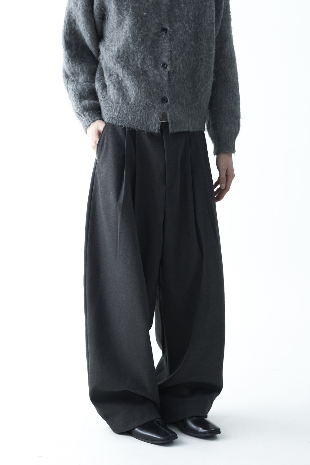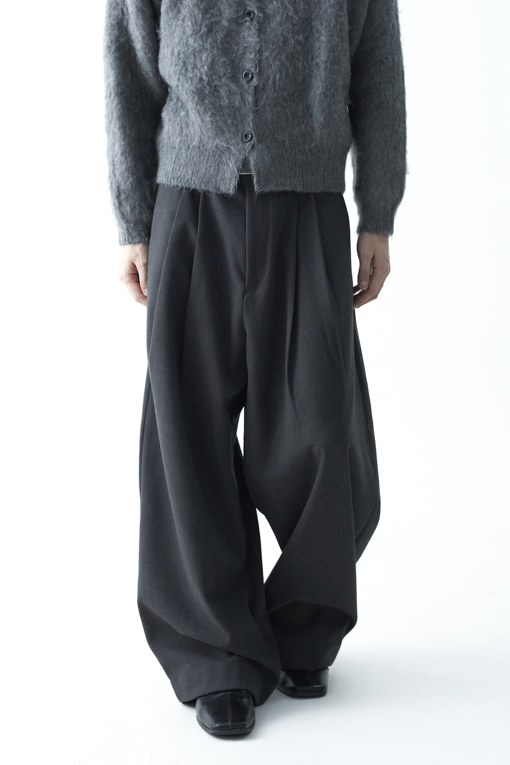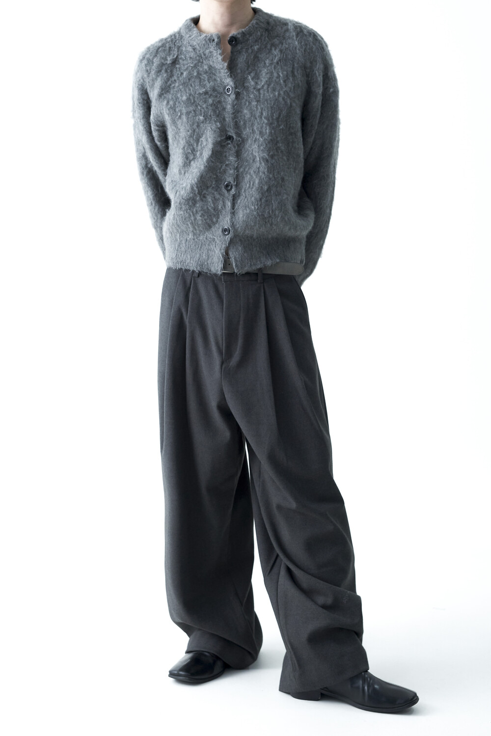 울/모직 소재가 가장 매력적으로 표현된 슬렉스로서 차분한 컬러감으로 다양한 제품군들과 높은 코디력을 갖춘 제품입니다. 25FW시즌 모두 착용하기 좋은 두께감으로 구성되었으며,울 소재감의 중량감을 통해 무게감이 느껴지는 찰랑거리는 실루엣과 와이드 핏을 구현합니다.