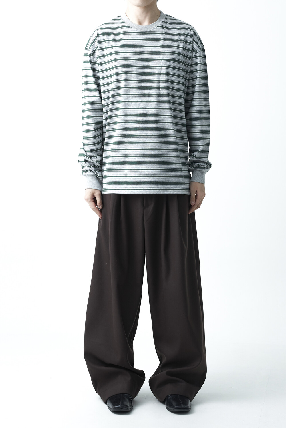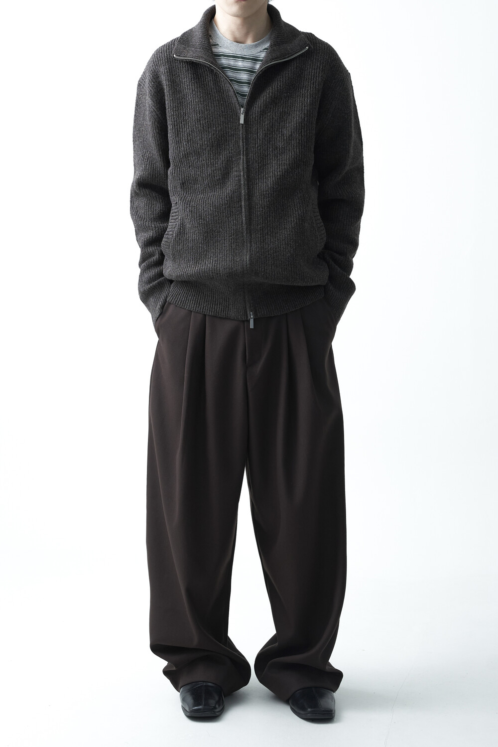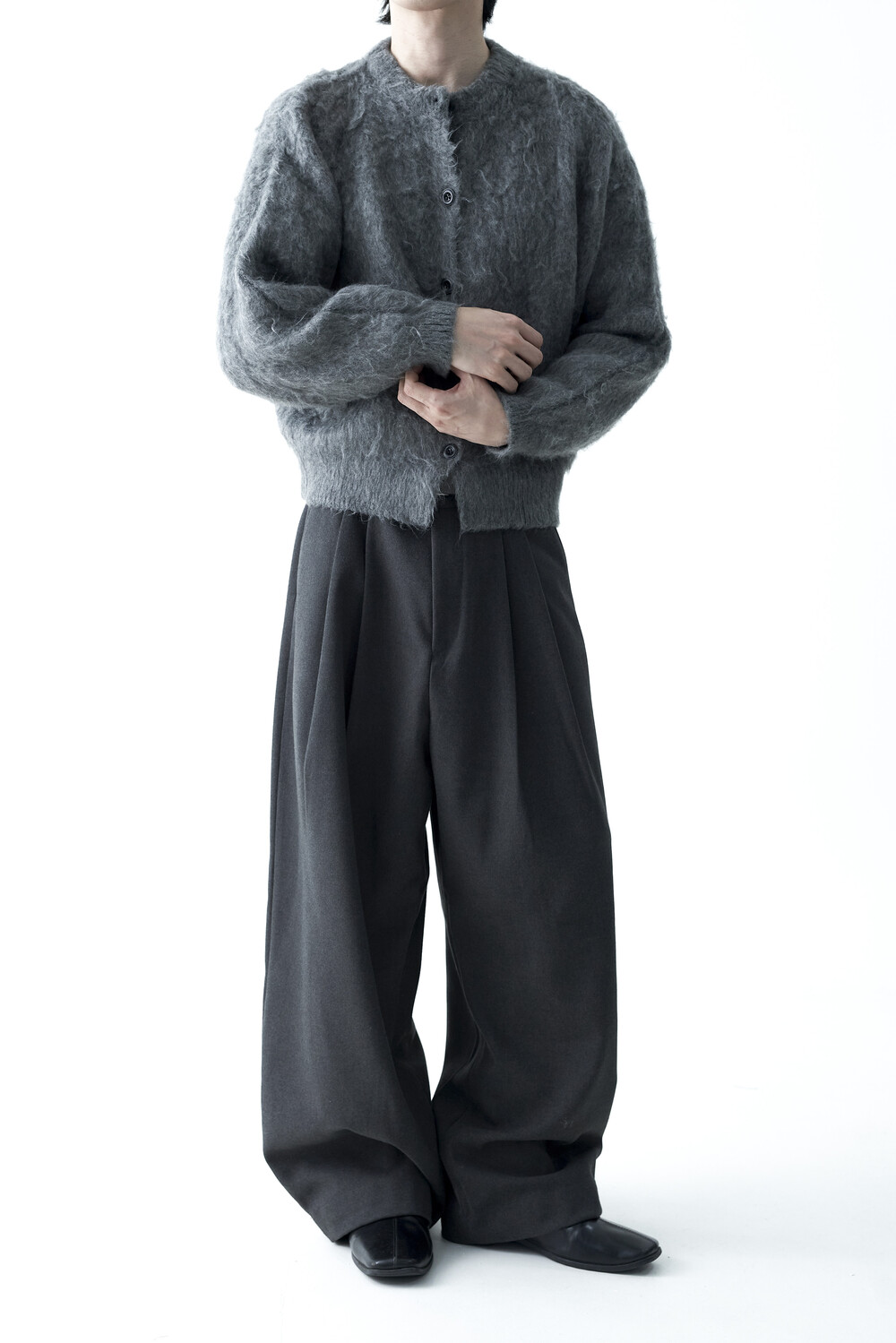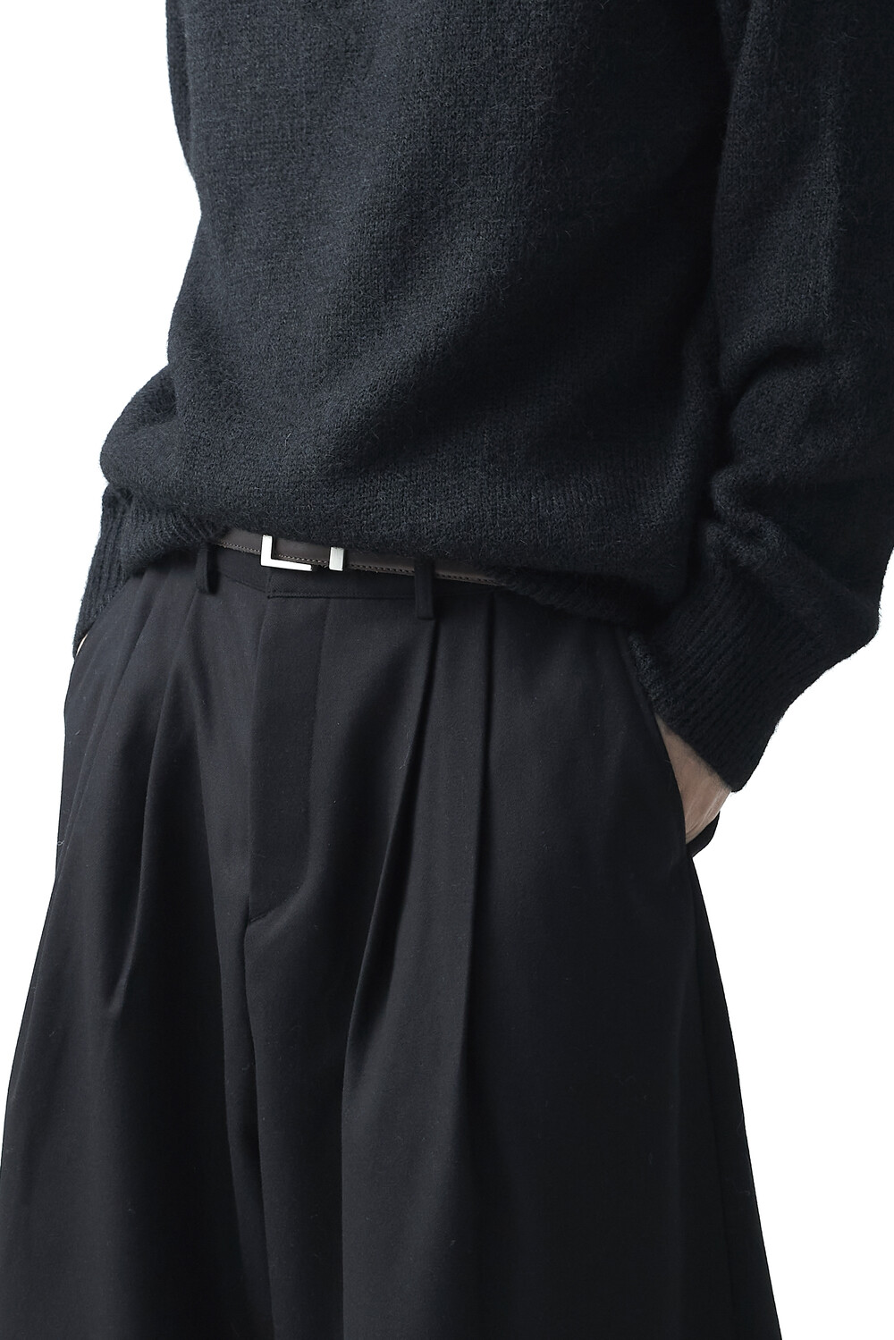 울/모직 소재가 가장 매력적으로 표현된 슬렉스로서 차분한 컬러감으로 다양한 제품군들과 높은 코디력을 갖춘 제품입니다. 25FW시즌 모두 착용하기 좋은 두께감으로 구성되었으며,울 소재감의 중량감을 통해 무게감이 느껴지는 찰랑거리는 실루엣과 와이드 핏을 구현합니다.