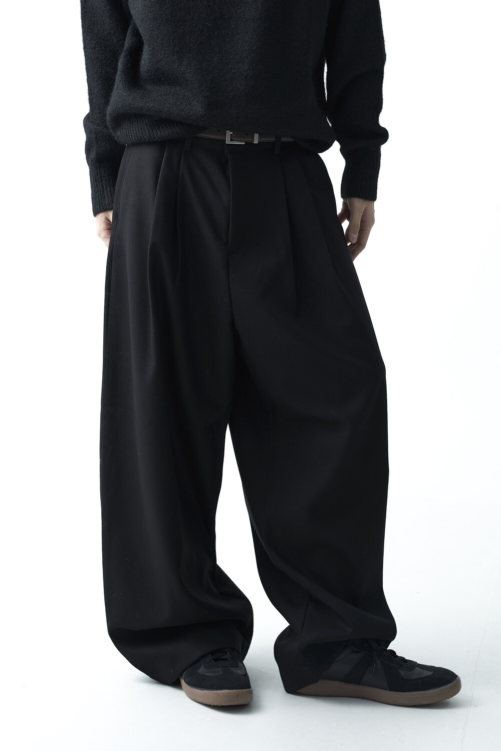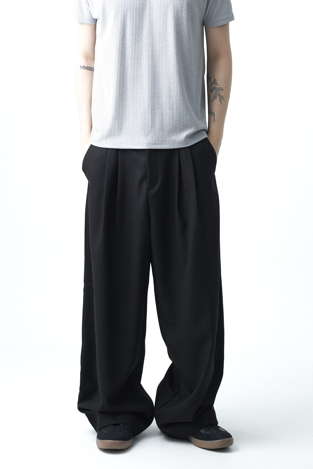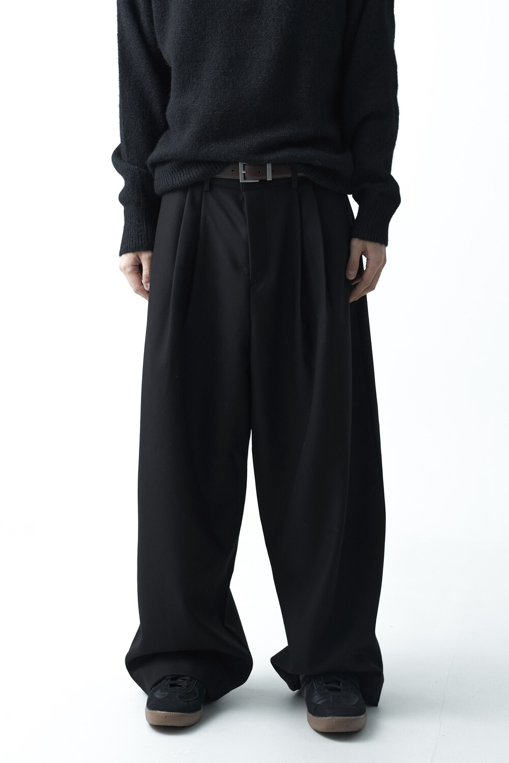 - 2핀턱 디테일이 적용된 오버와이드 울 슬렉스 제품입니다.