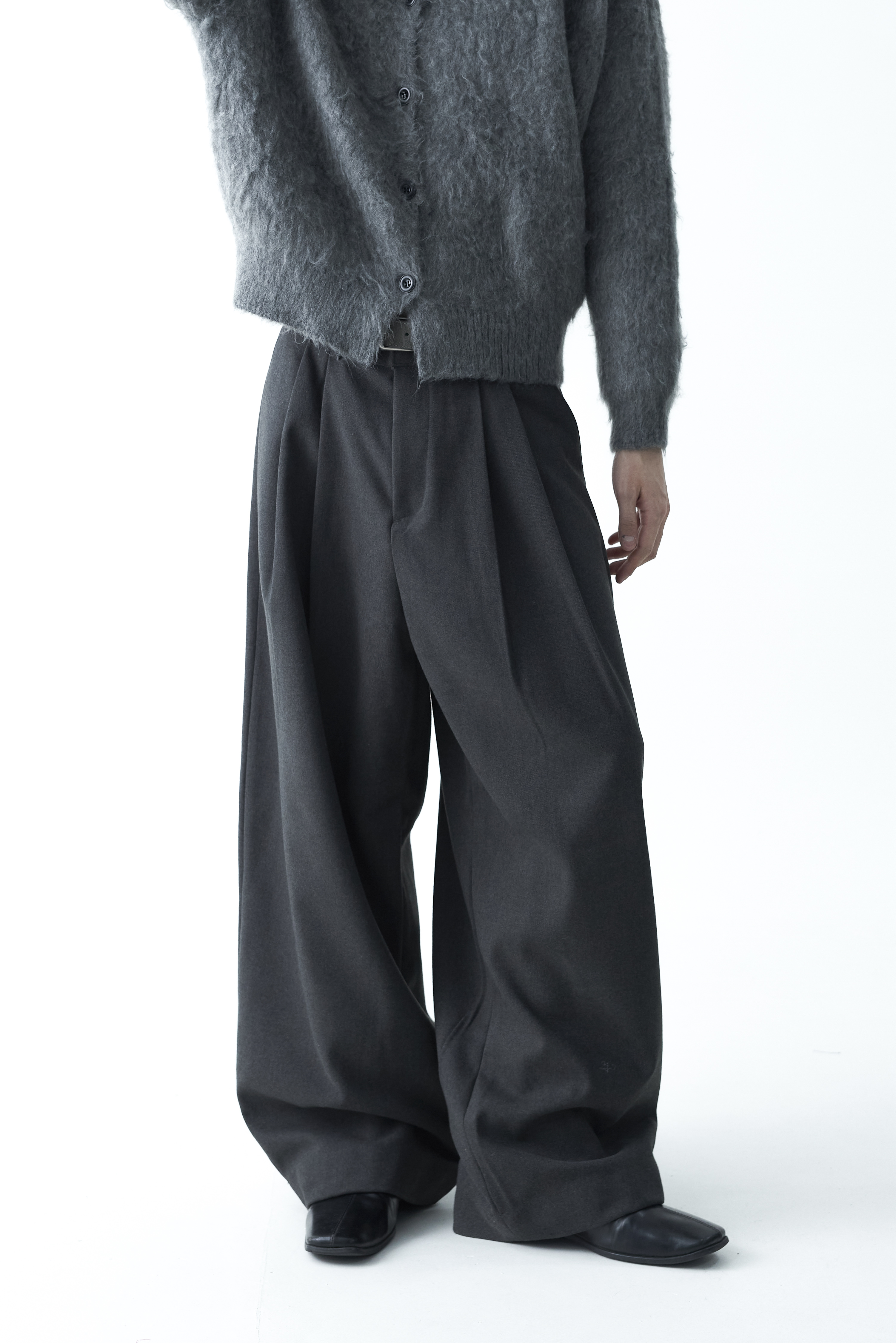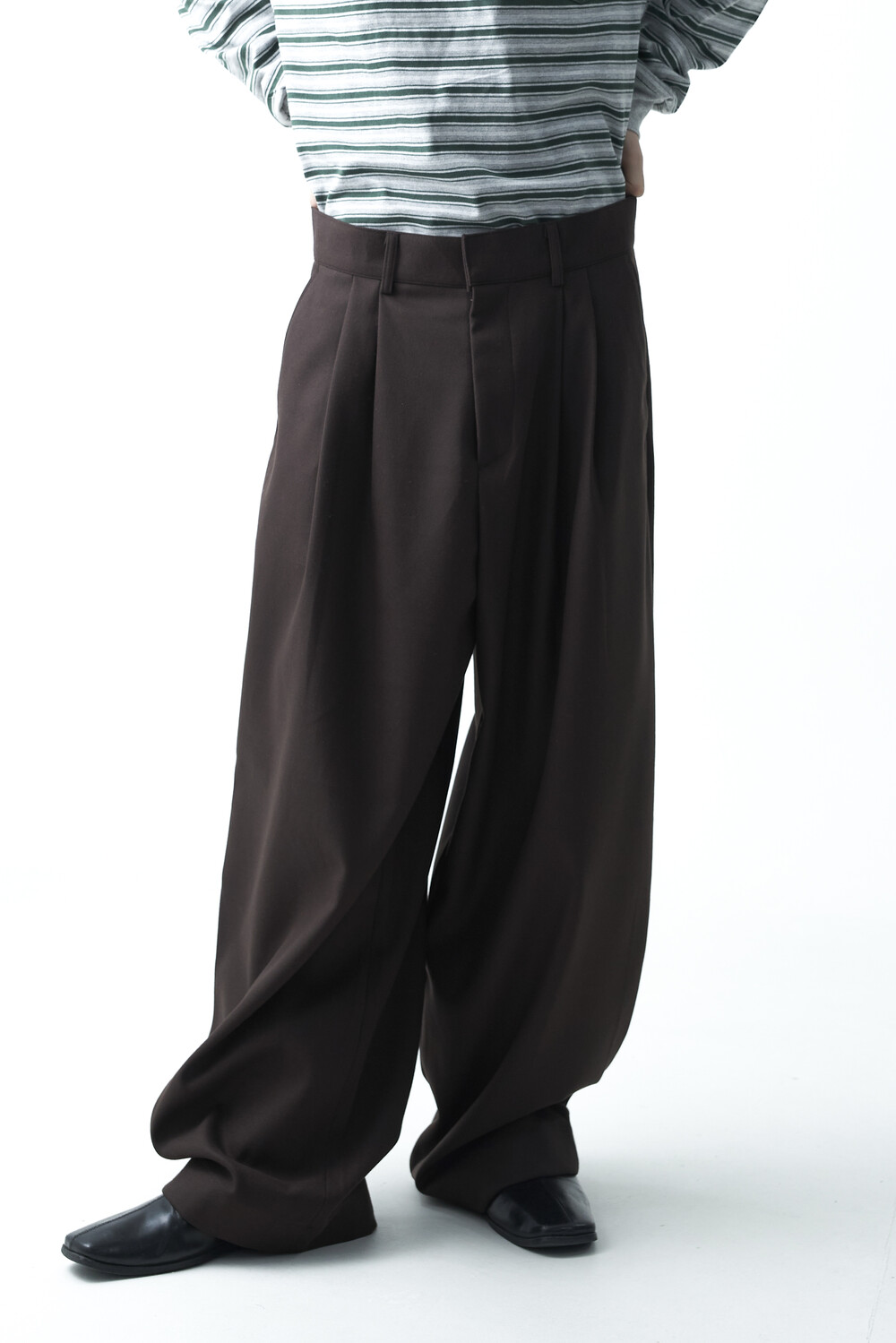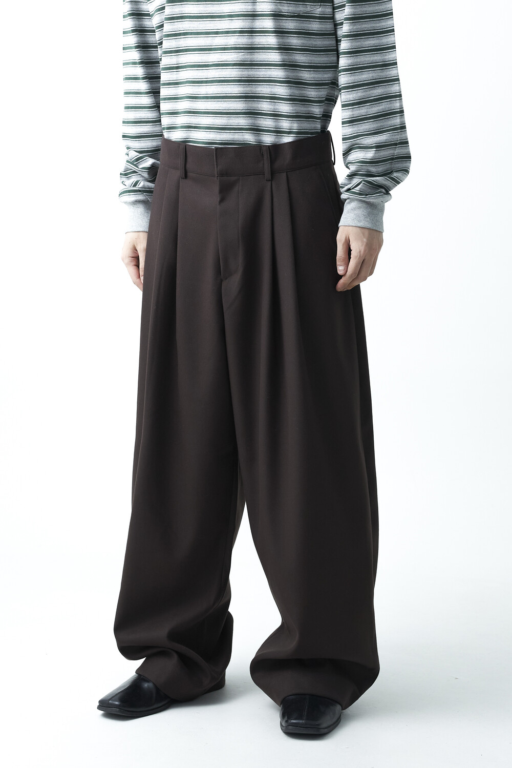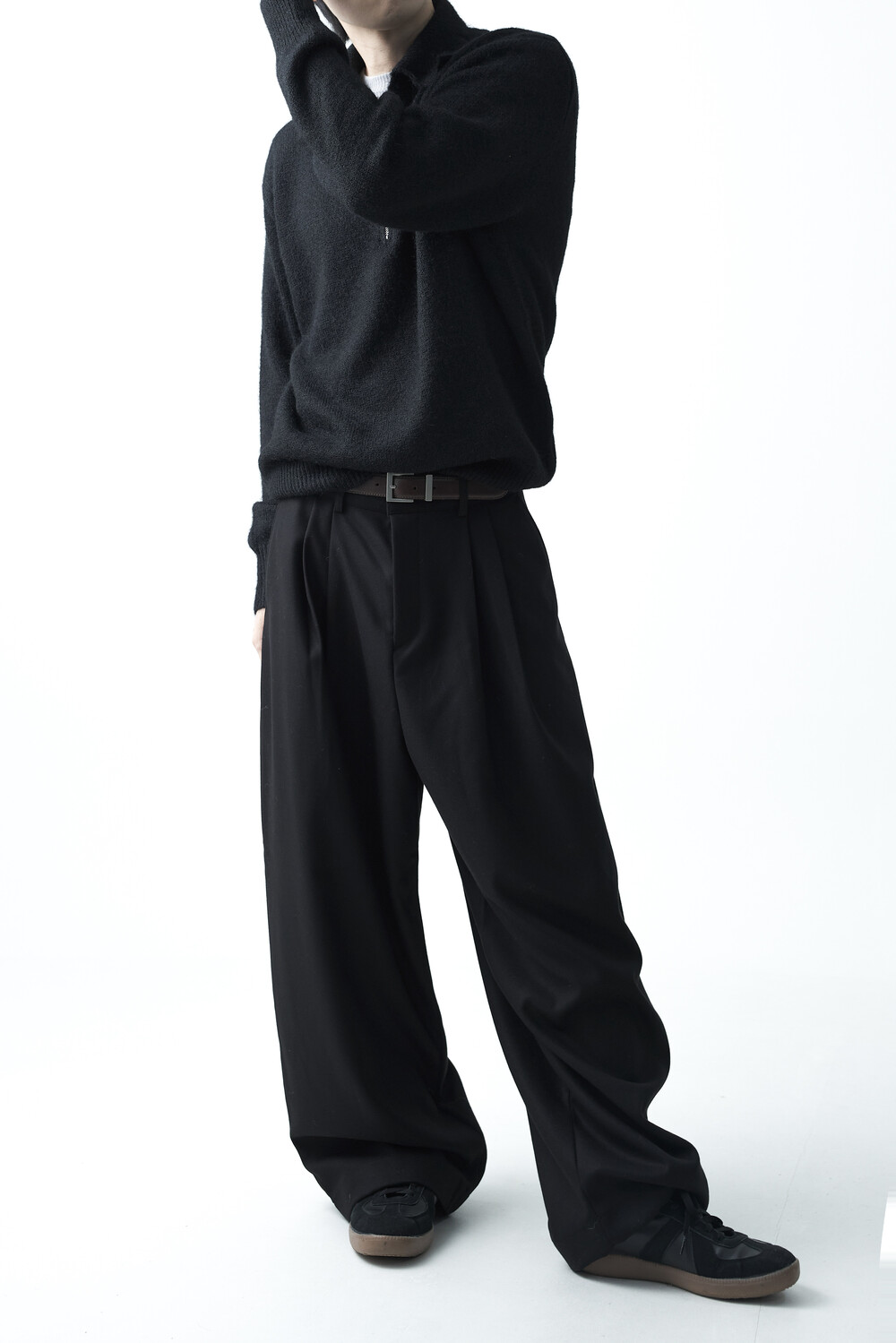 - 2핀턱 디테일이 적용된 오버와이드 울 슬렉스 제품입니다.