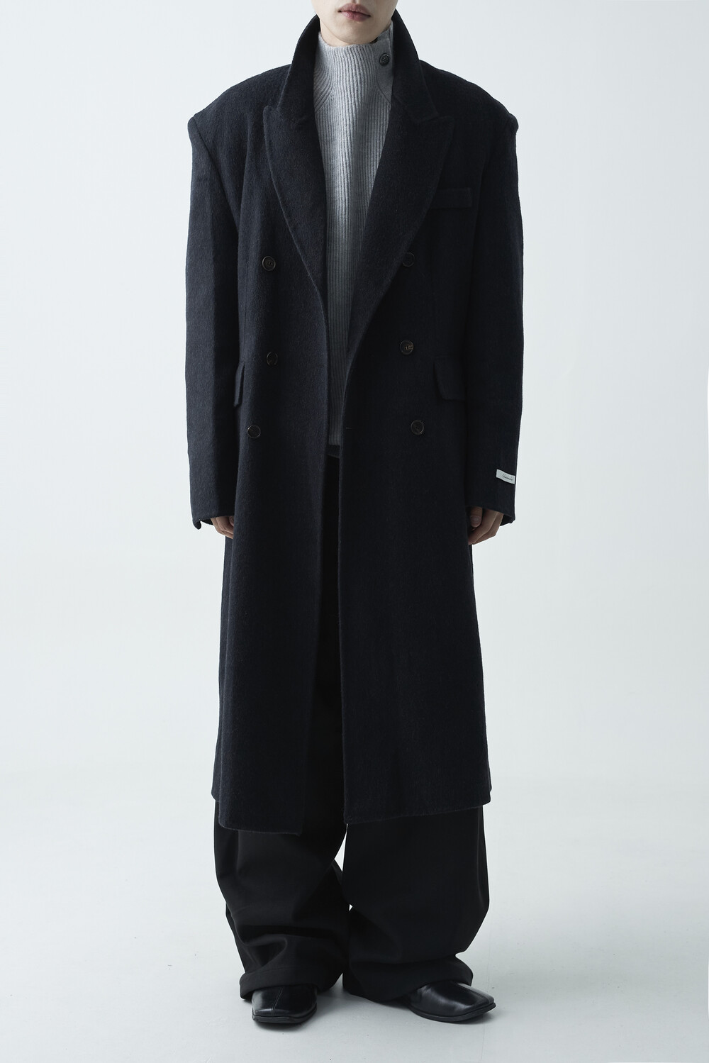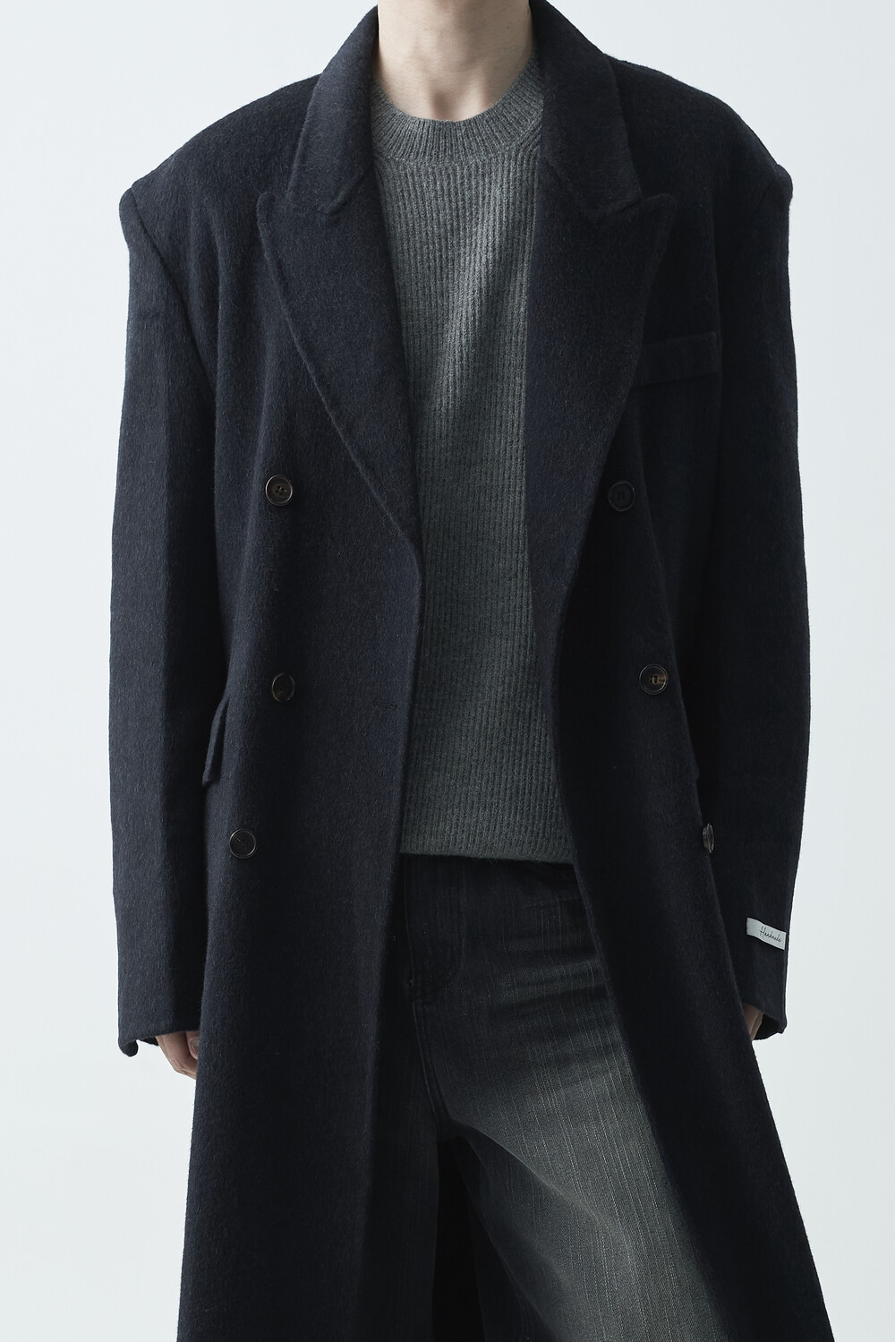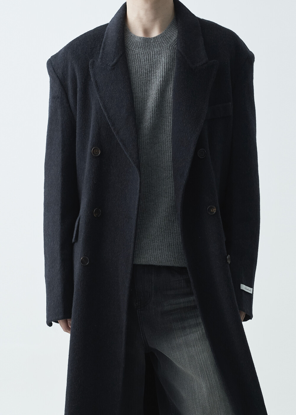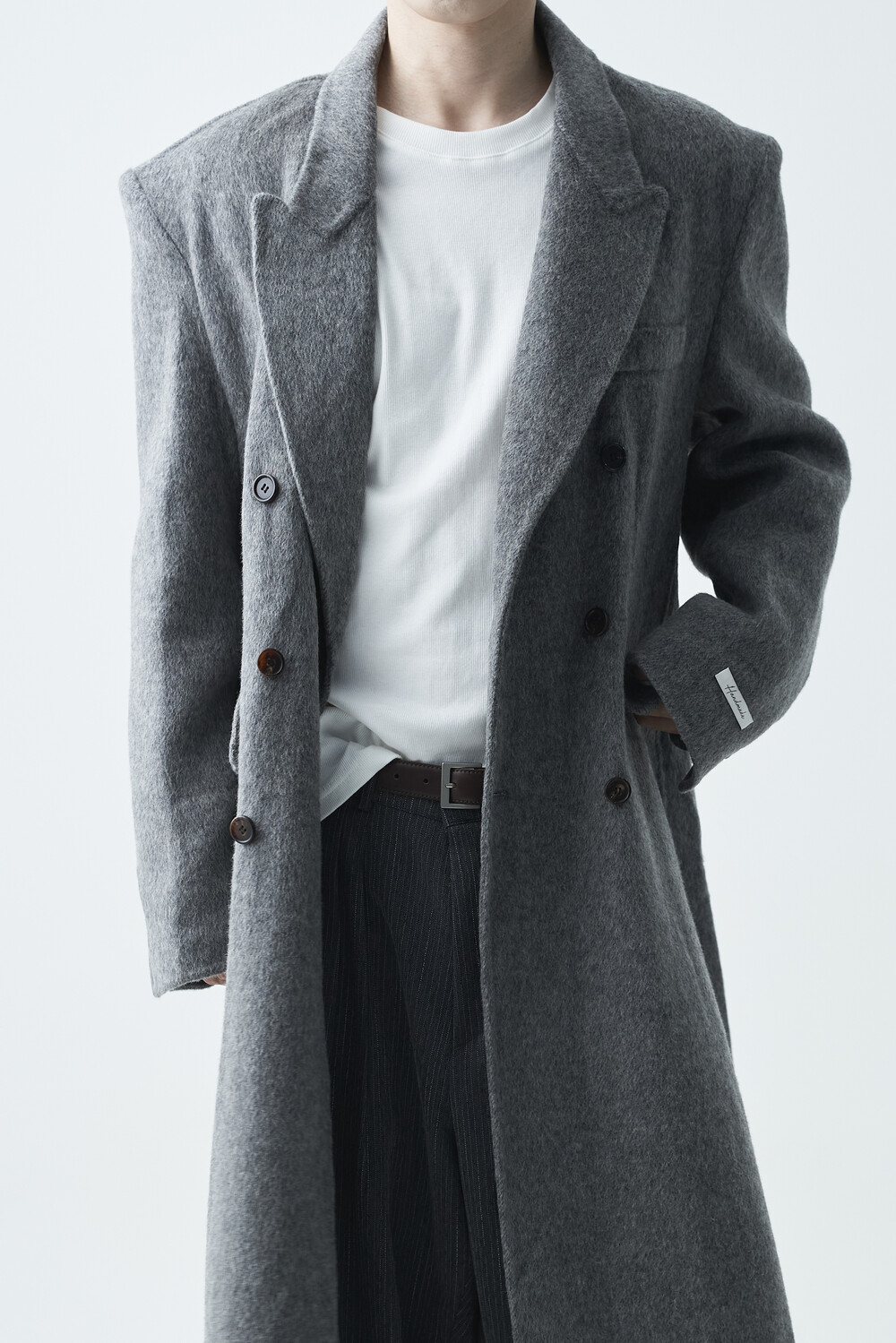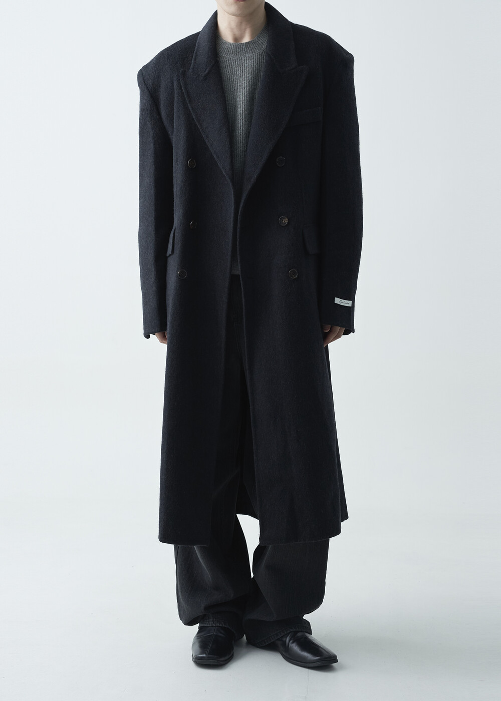 - 더블코트 스타일의 맥시한 기장감으로 구성된 울 코트 제품입니다. 핸드메이드 방식으로 구현되어 더욱 프리미엄 아우터로서 그 매력을 더합니다. 헤어리한 텍스쳐의 터치감과 울 소재임에도 불구하고 소프트한 무게감으로 수월한 착용감을 선사합니다. 자연스럽게 찰랑이는 실루엣으로 고급스러운 스타일을 표현해보세요.