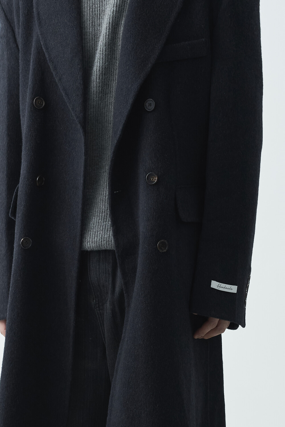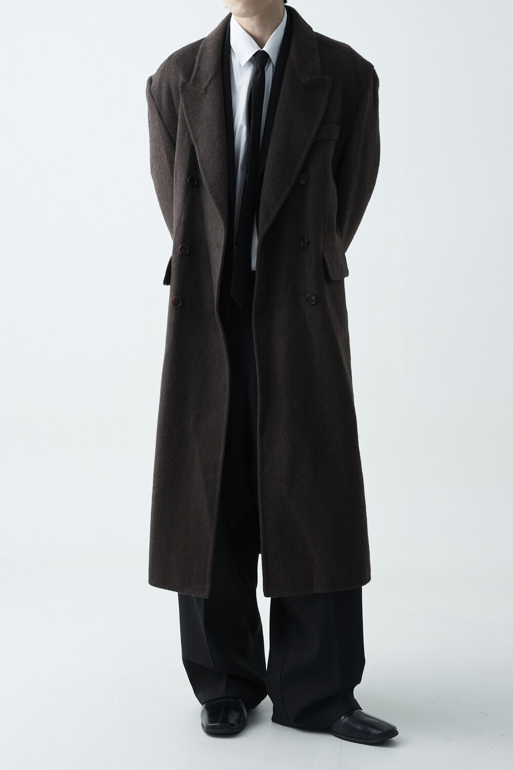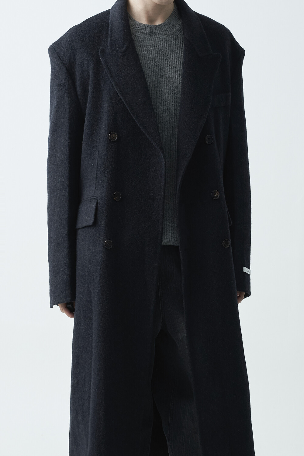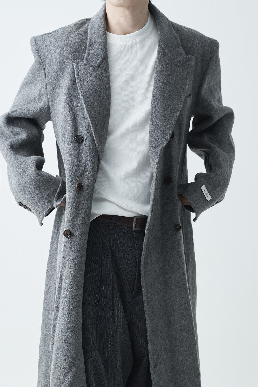 - 더블코트 스타일의 맥시한 기장감으로 구성된 울 코트 제품입니다. 핸드메이드 방식으로 구현되어 더욱 프리미엄 아우터로서 그 매력을 더합니다. 헤어리한 텍스쳐의 터치감과 울 소재임에도 불구하고 소프트한 무게감으로 수월한 착용감을 선사합니다. 자연스럽게 찰랑이는 실루엣으로 고급스러운 스타일을 표현해보세요.