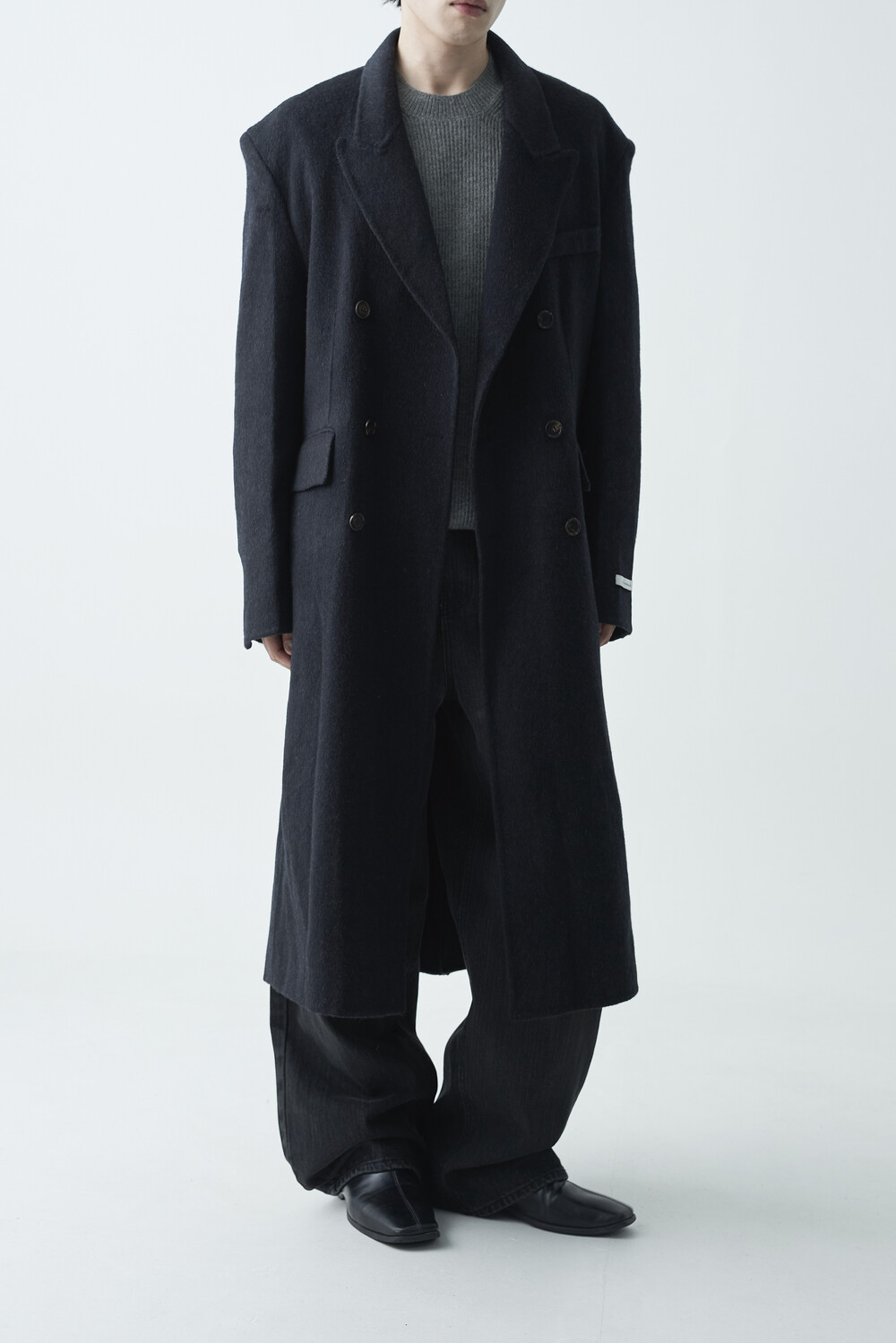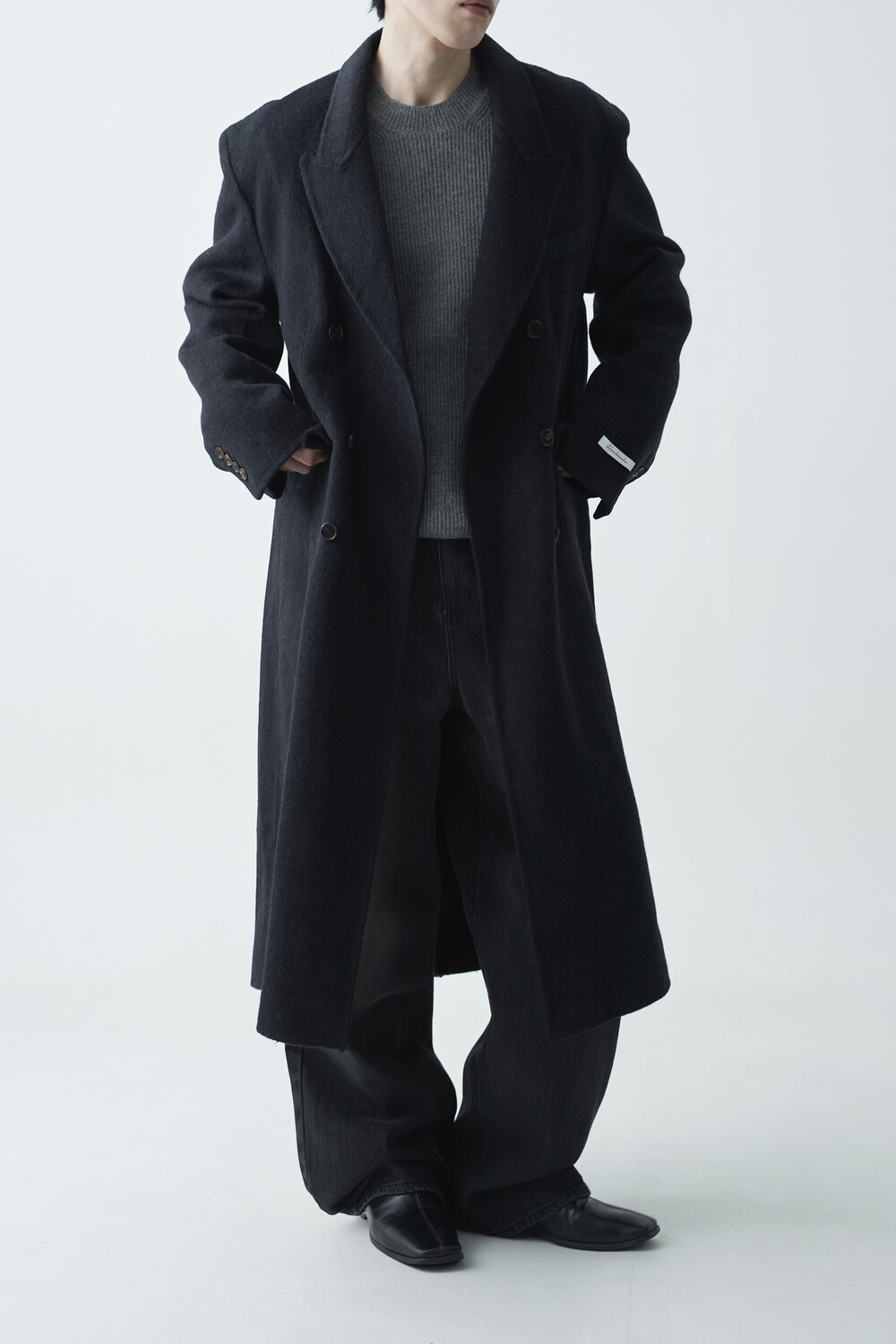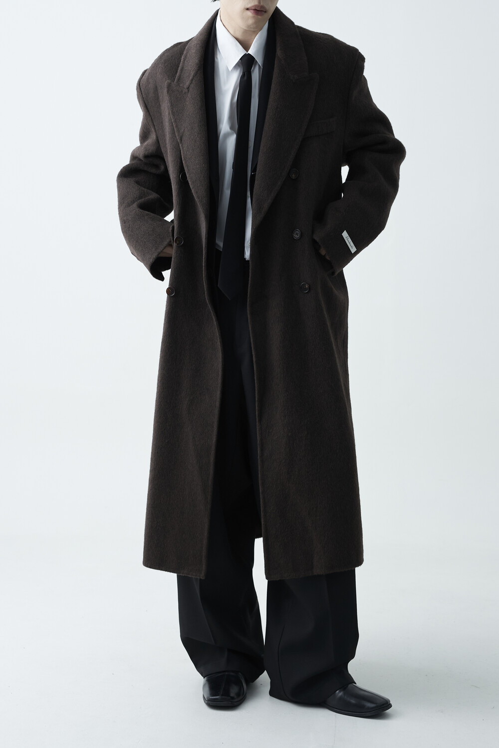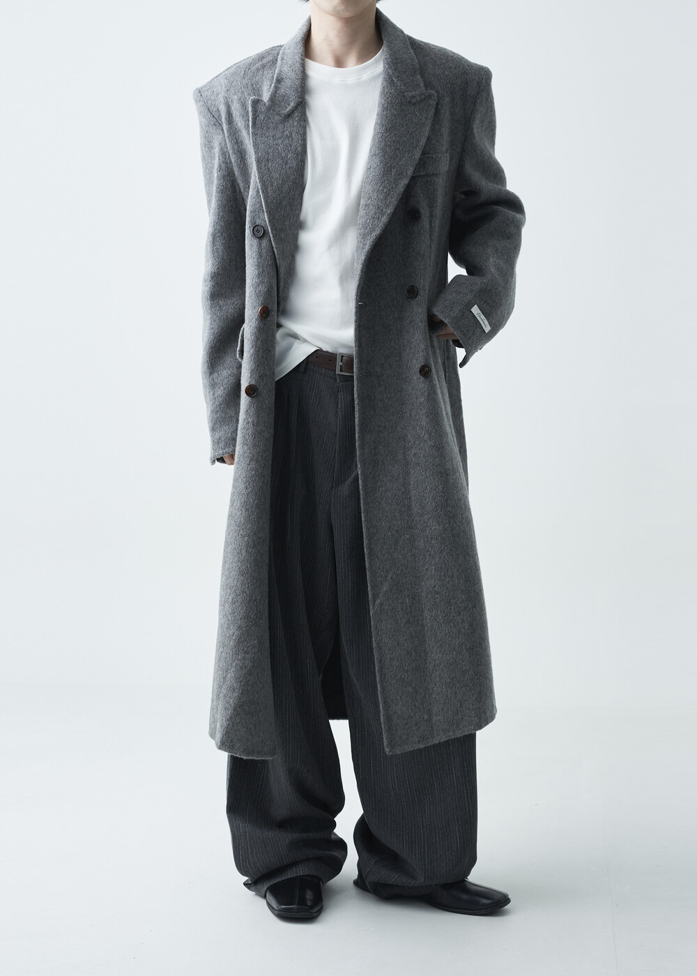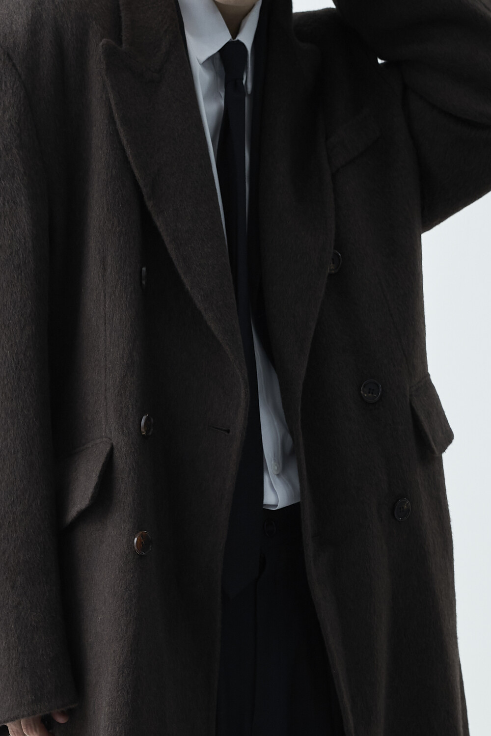 - 더블코트 스타일의 맥시한 기장감으로 구성된 울 코트 제품입니다. 핸드메이드 방식으로 구현되어 더욱 프리미엄 아우터로서 그 매력을 더합니다. 헤어리한 텍스쳐의 터치감과 울 소재임에도 불구하고 소프트한 무게감으로 수월한 착용감을 선사합니다. 자연스럽게 찰랑이는 실루엣으로 고급스러운 스타일을 표현해보세요.