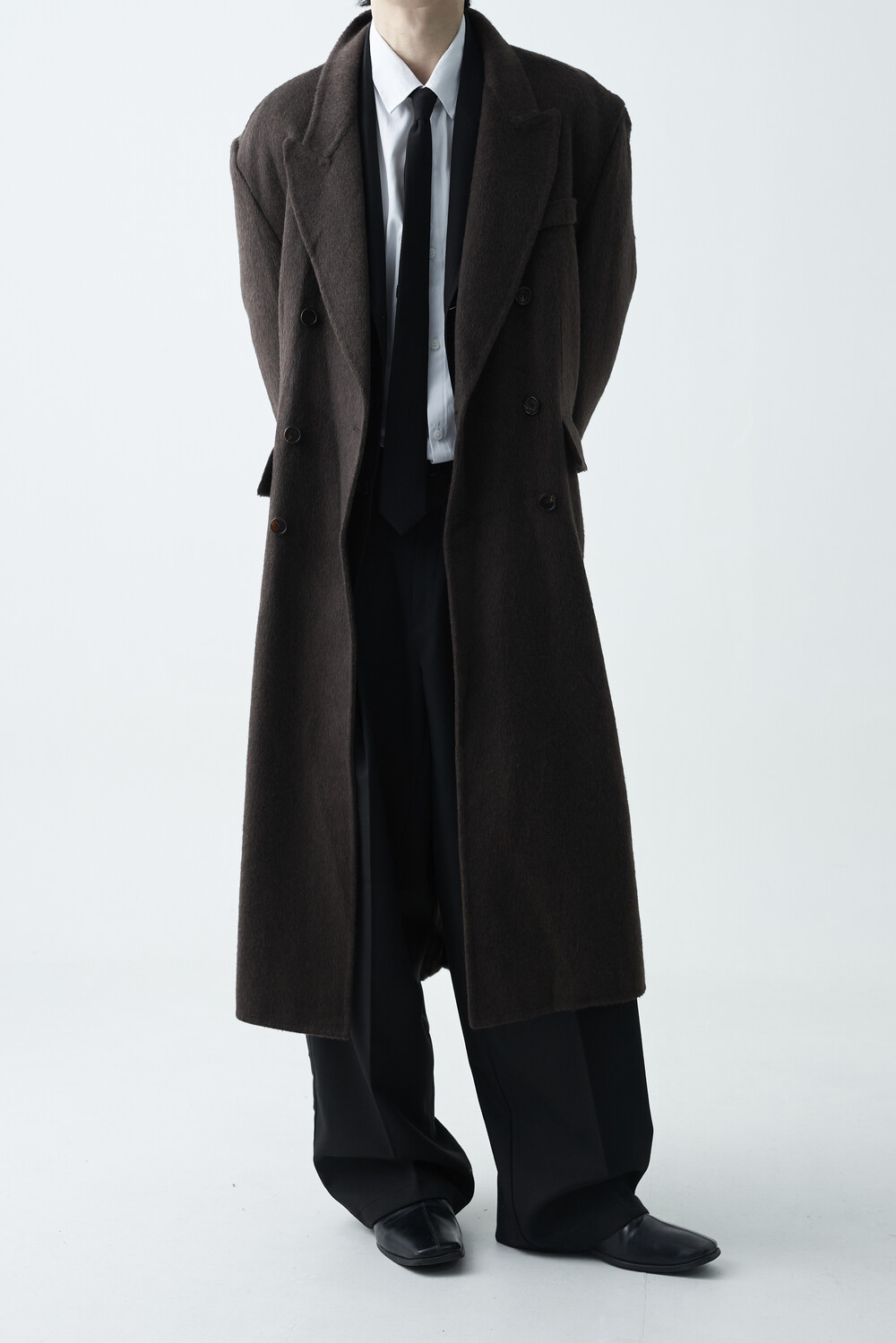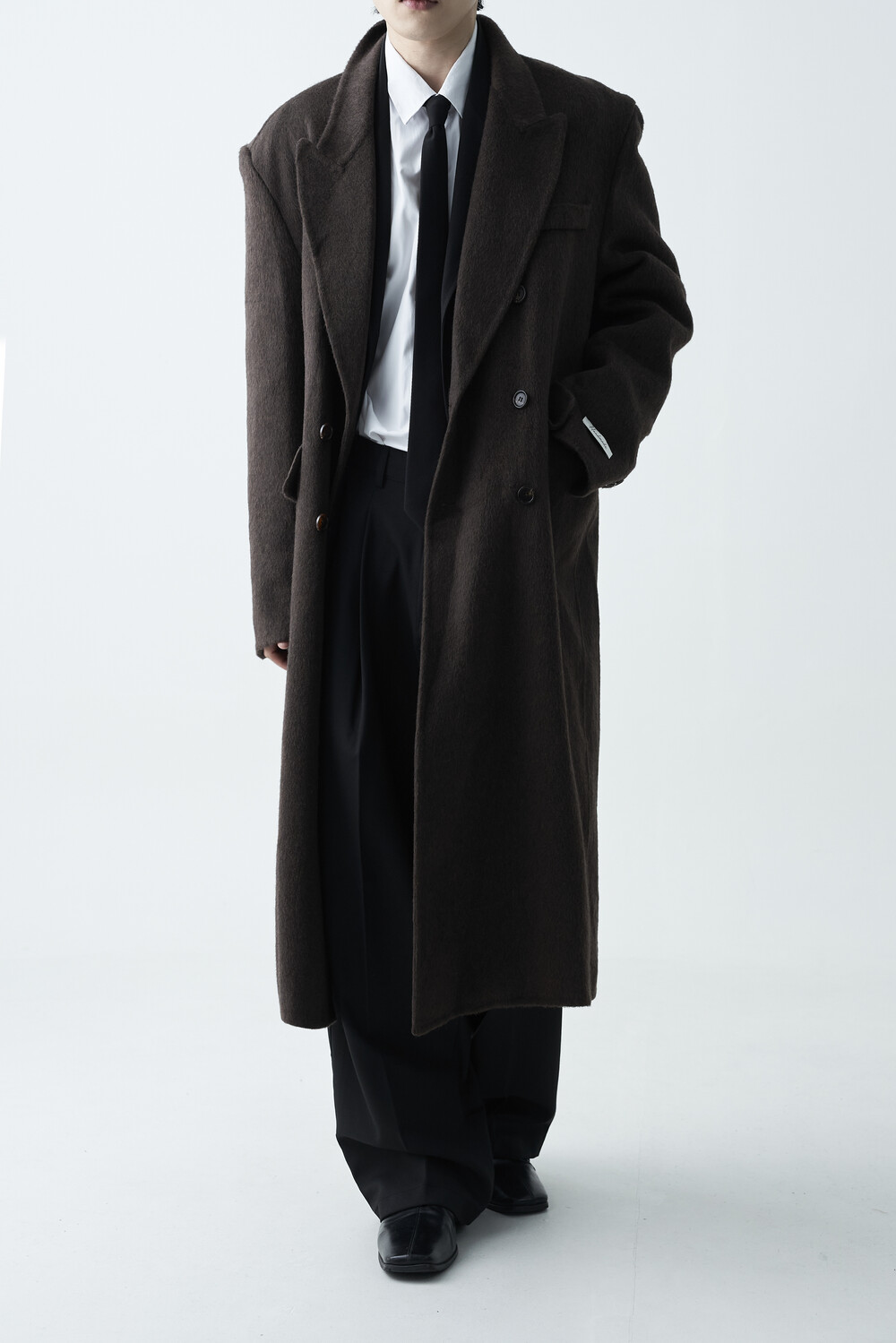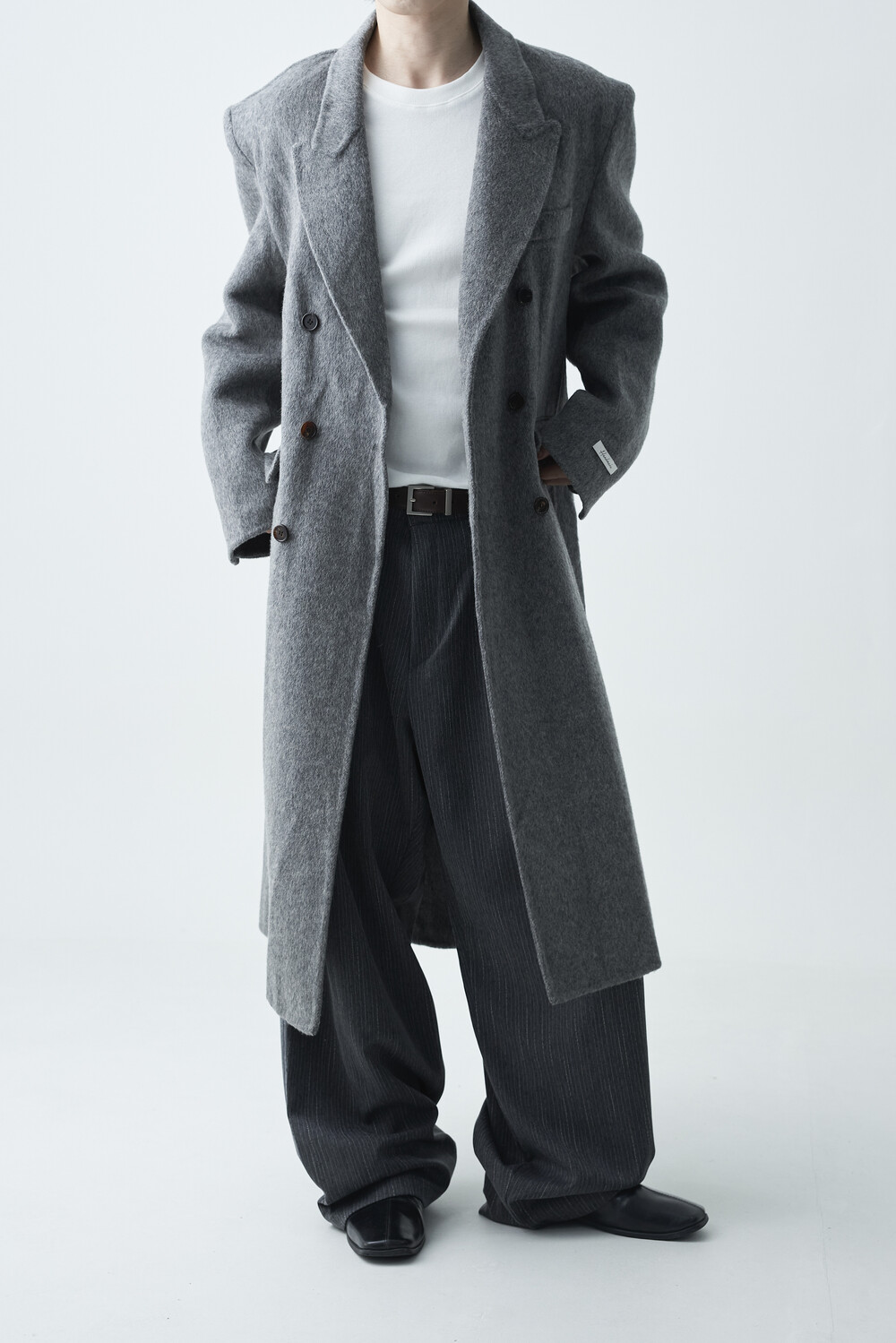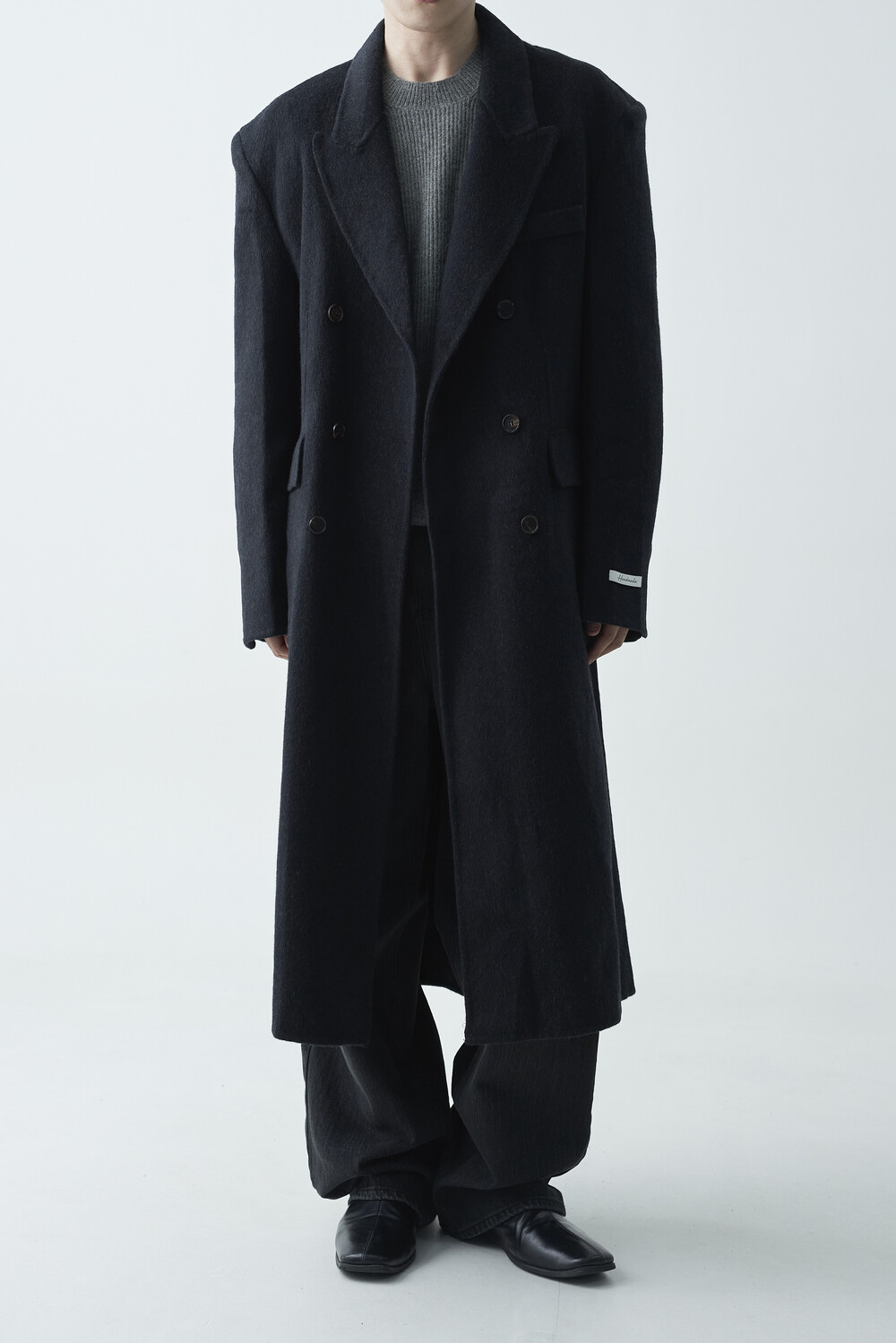 - 더블코트 스타일의 맥시한 기장감으로 구성된 울 코트 제품입니다. 핸드메이드 방식으로 구현되어 더욱 프리미엄 아우터로서 그 매력을 더합니다. 헤어리한 텍스쳐의 터치감과 울 소재임에도 불구하고 소프트한 무게감으로 수월한 착용감을 선사합니다. 자연스럽게 찰랑이는 실루엣으로 고급스러운 스타일을 표현해보세요.