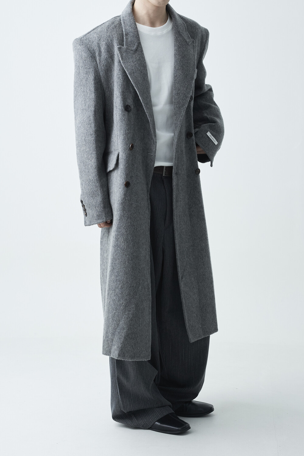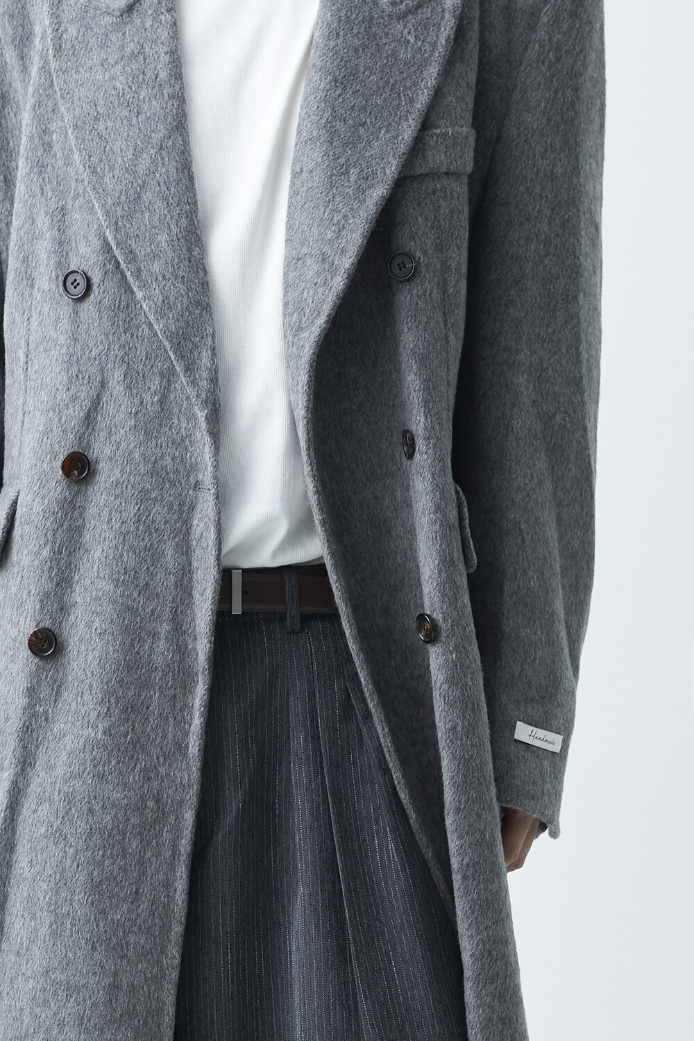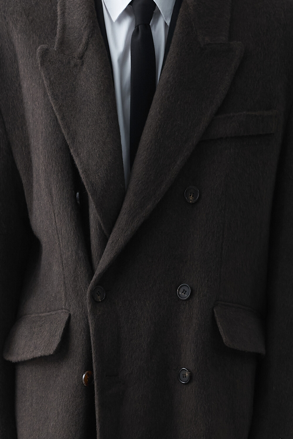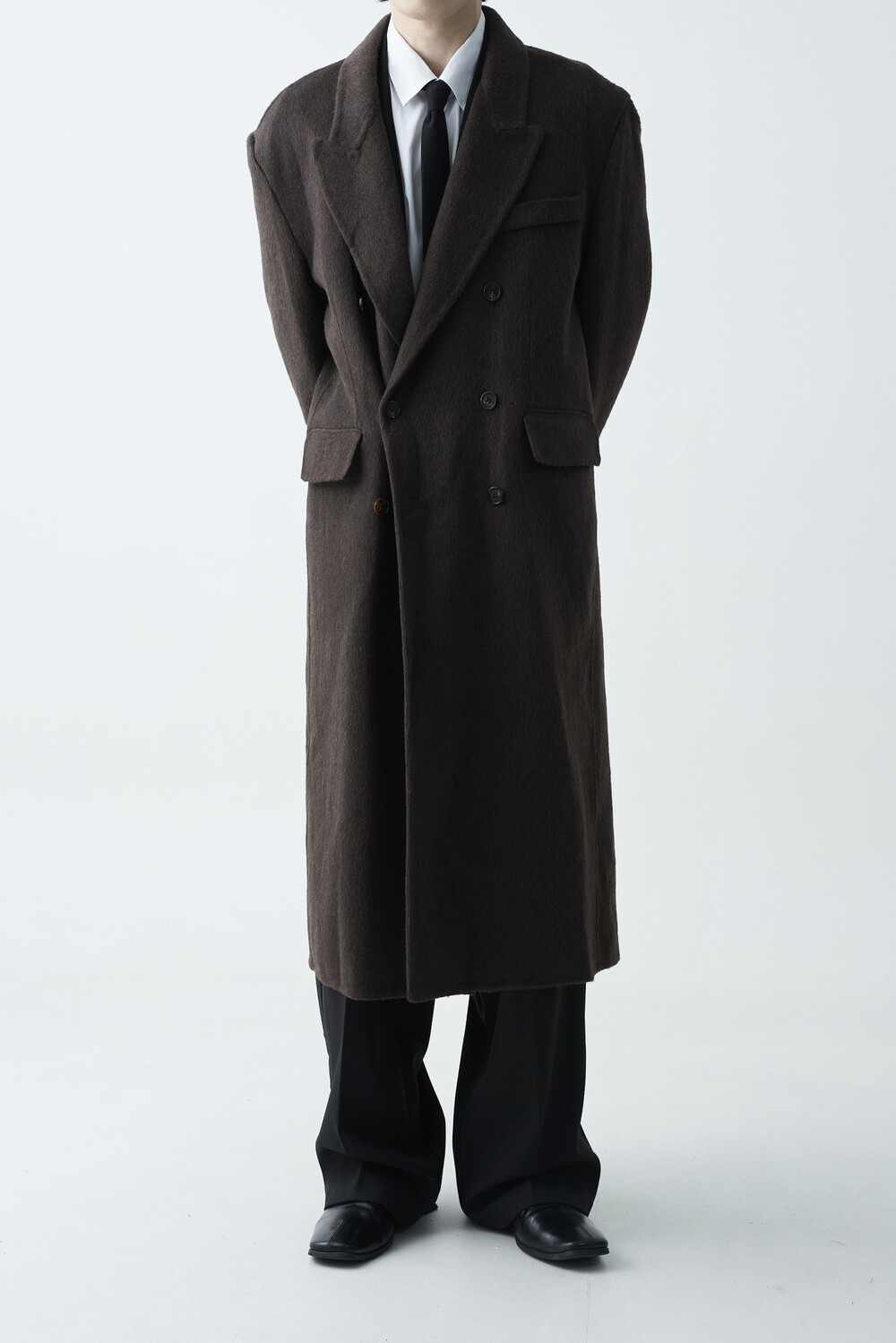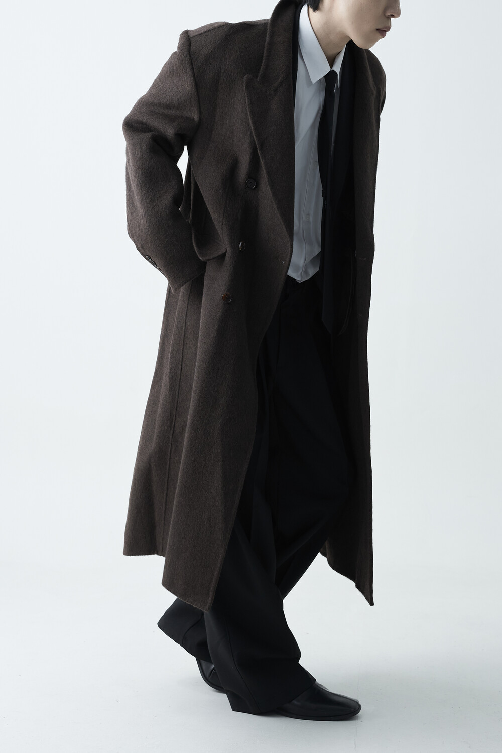 - 더블코트 스타일의 맥시한 기장감으로 구성된 울 코트 제품입니다. 핸드메이드 방식으로 구현되어 더욱 프리미엄 아우터로서 그 매력을 더합니다. 헤어리한 텍스쳐의 터치감과 울 소재임에도 불구하고 소프트한 무게감으로 수월한 착용감을 선사합니다. 자연스럽게 찰랑이는 실루엣으로 고급스러운 스타일을 표현해보세요.