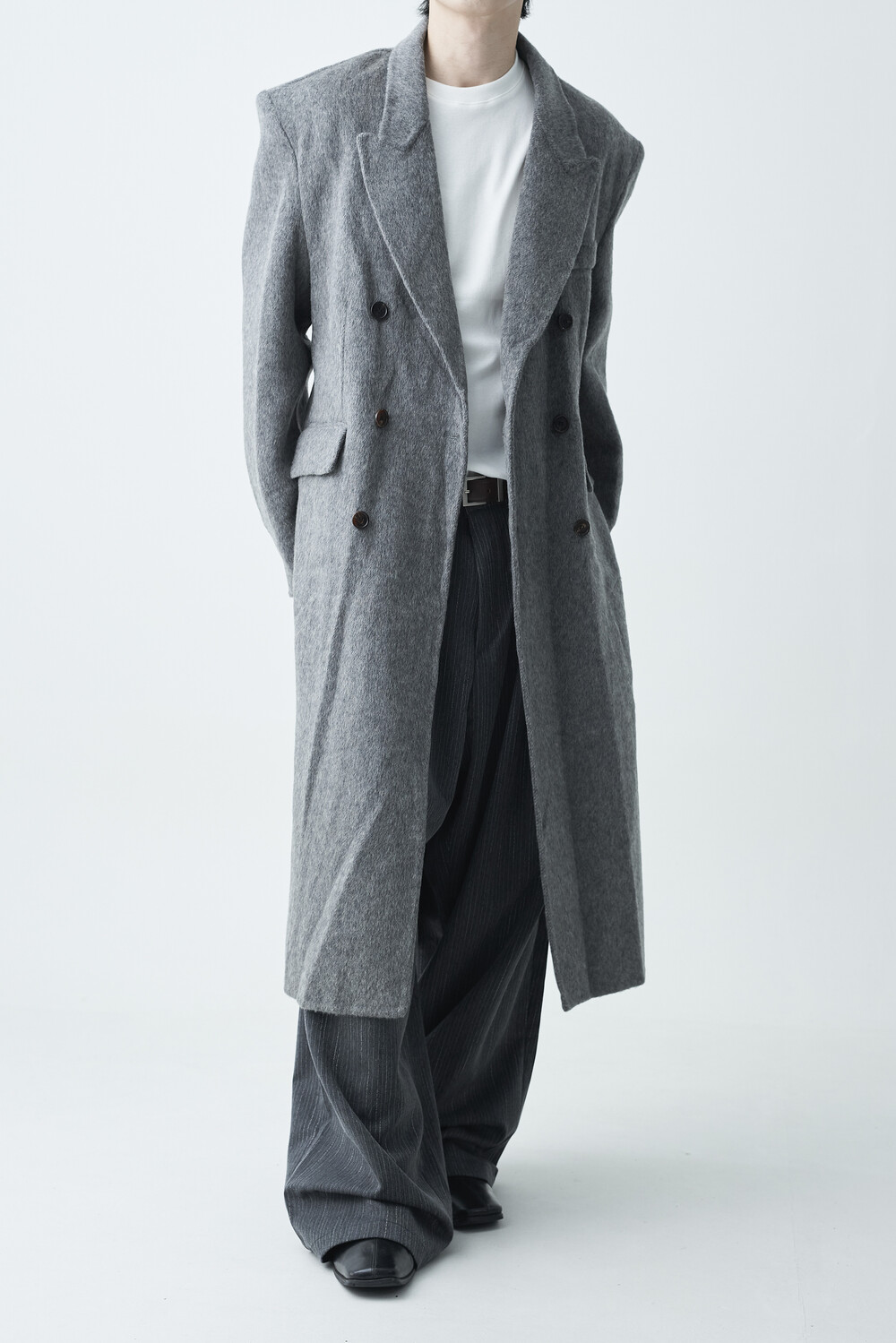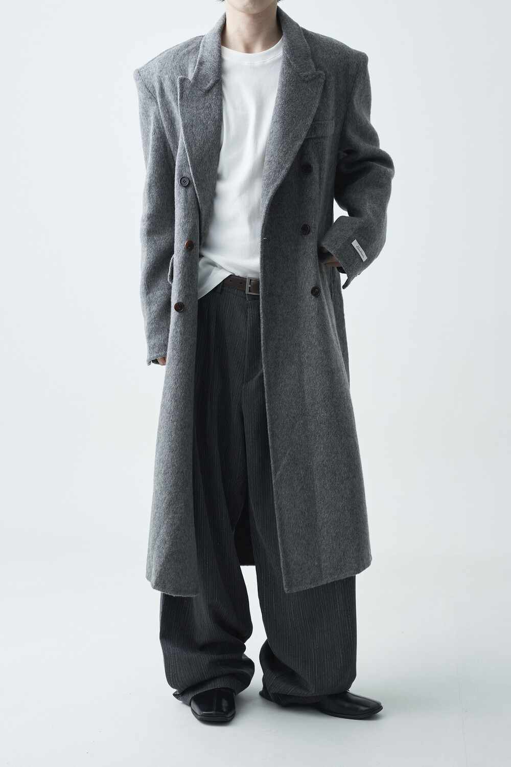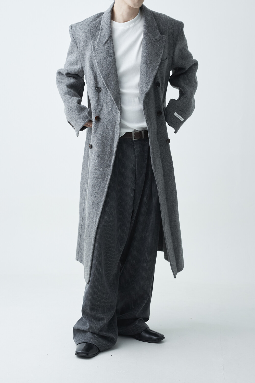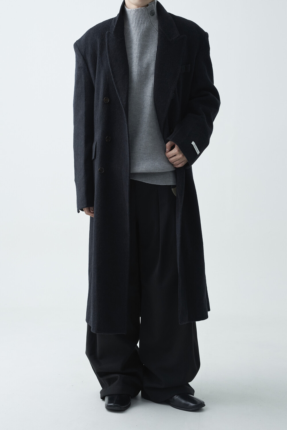 - 더블코트 스타일의 맥시한 기장감으로 구성된 울 코트 제품입니다. 핸드메이드 방식으로 구현되어 더욱 프리미엄 아우터로서 그 매력을 더합니다. 헤어리한 텍스쳐의 터치감과 울 소재임에도 불구하고 소프트한 무게감으로 수월한 착용감을 선사합니다. 자연스럽게 찰랑이는 실루엣으로 고급스러운 스타일을 표현해보세요.