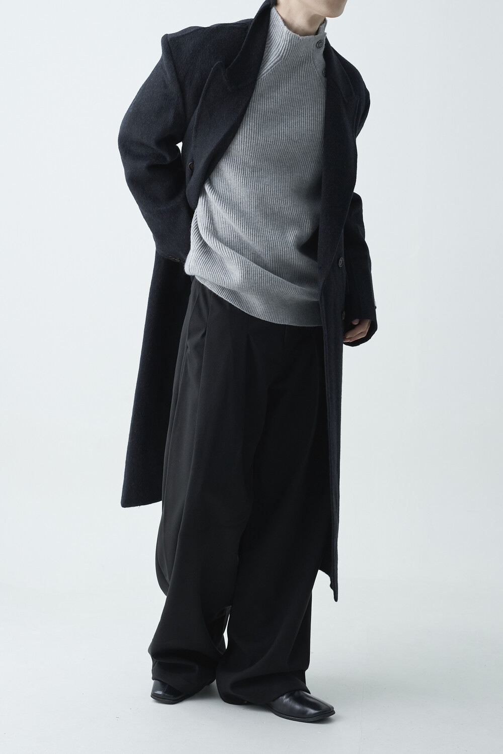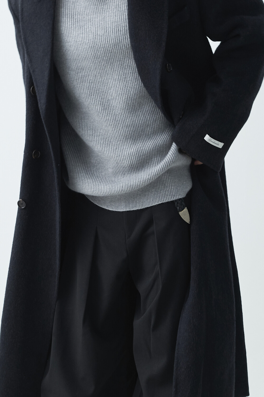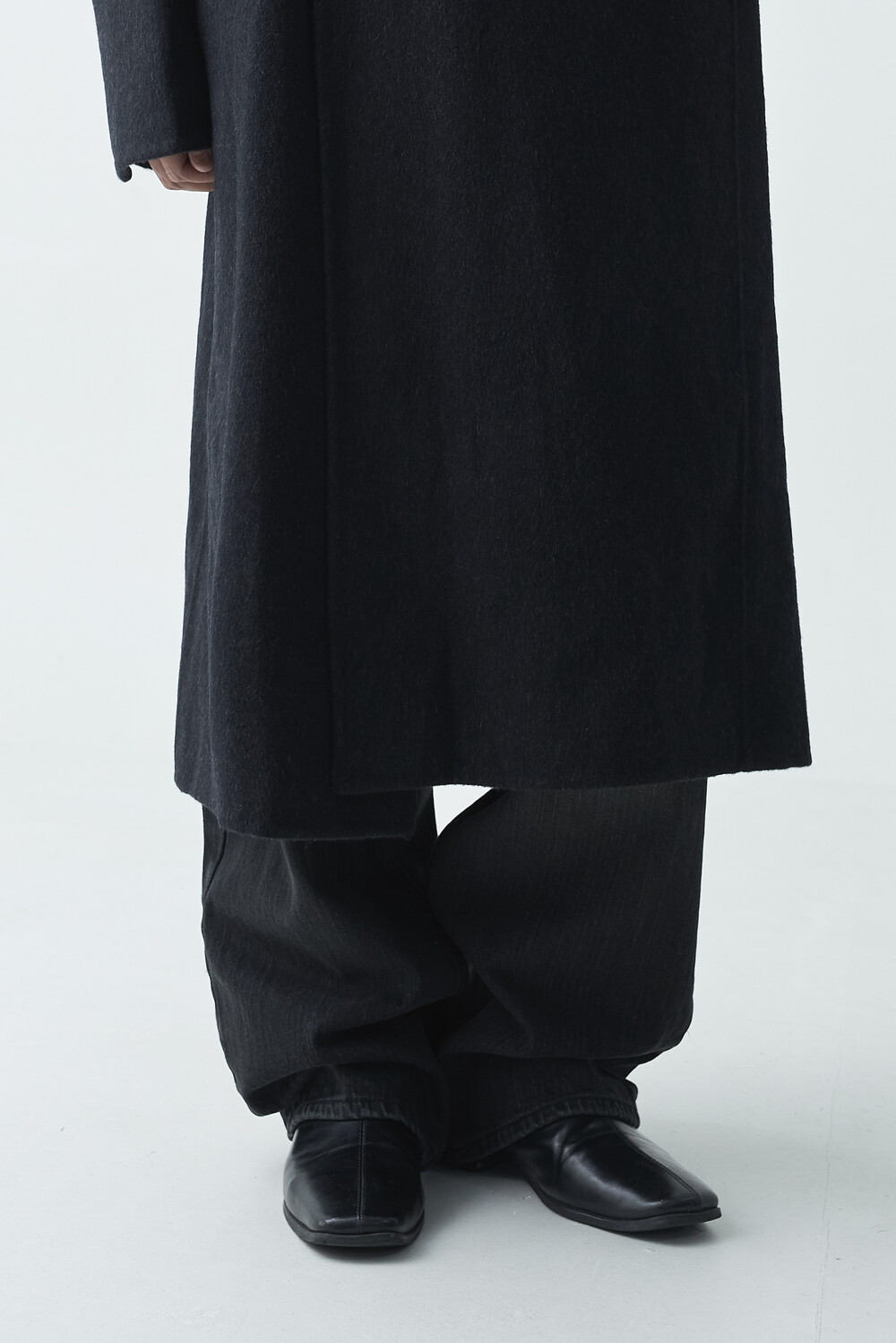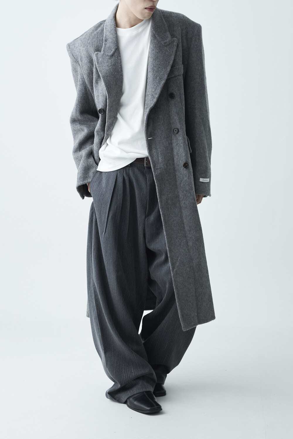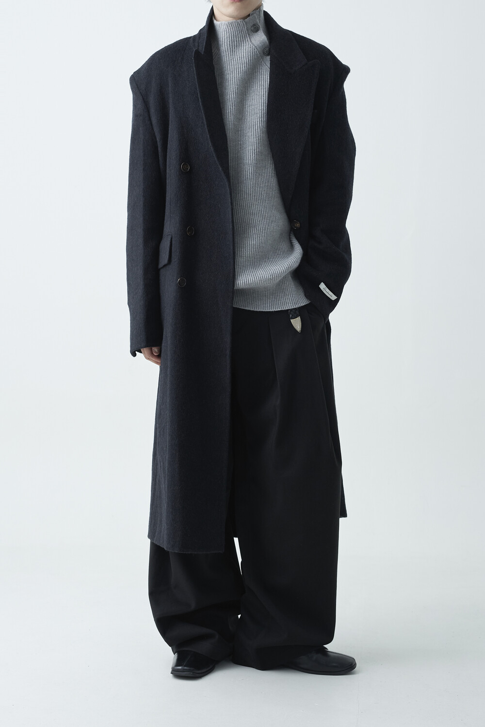 - 더블코트 스타일의 맥시한 기장감으로 구성된 울 코트 제품입니다. 핸드메이드 방식으로 구현되어 더욱 프리미엄 아우터로서 그 매력을 더합니다. 헤어리한 텍스쳐의 터치감과 울 소재임에도 불구하고 소프트한 무게감으로 수월한 착용감을 선사합니다. 자연스럽게 찰랑이는 실루엣으로 고급스러운 스타일을 표현해보세요.
