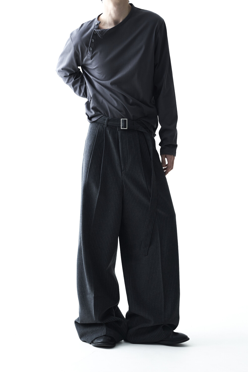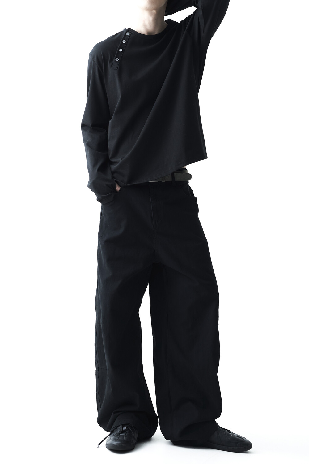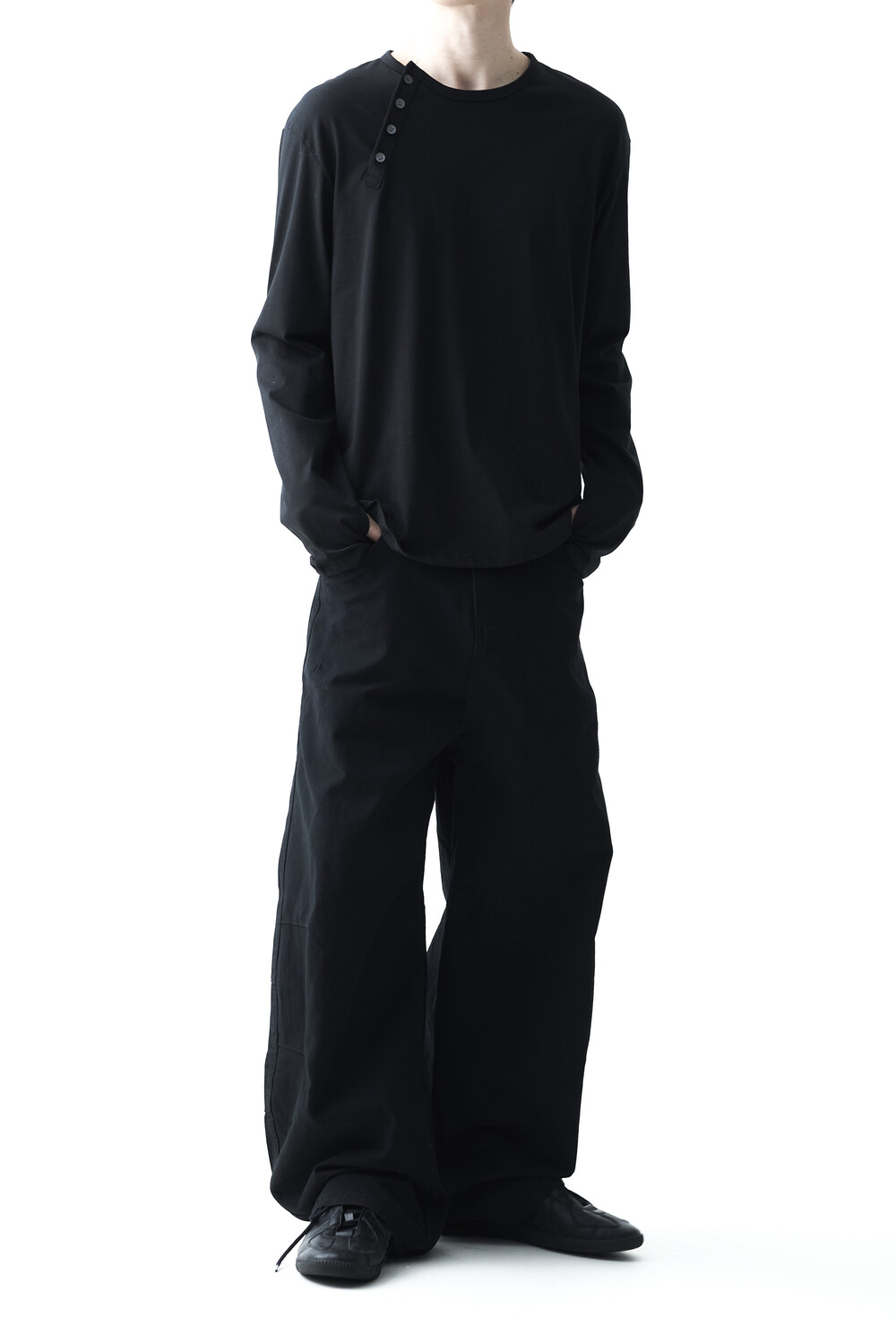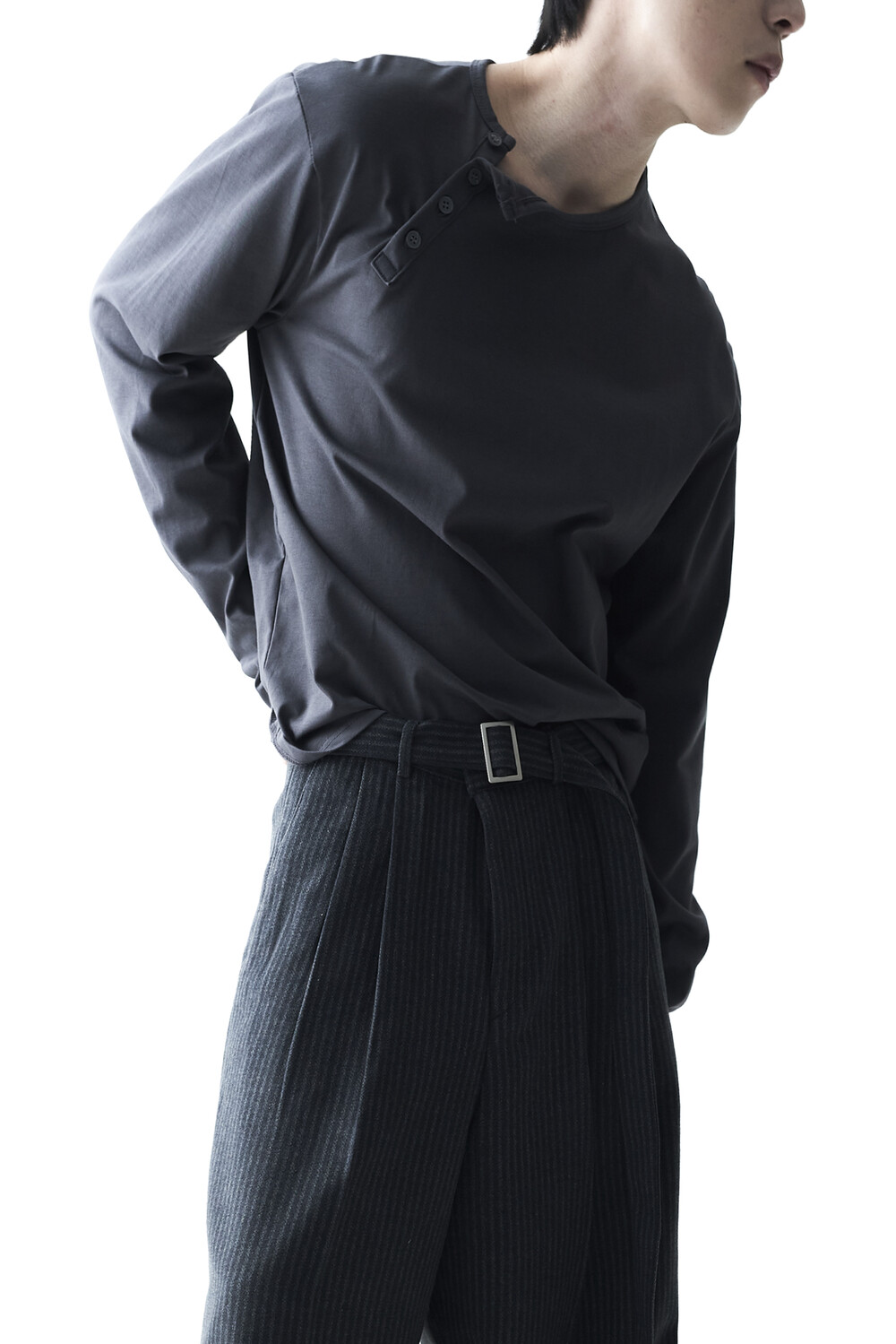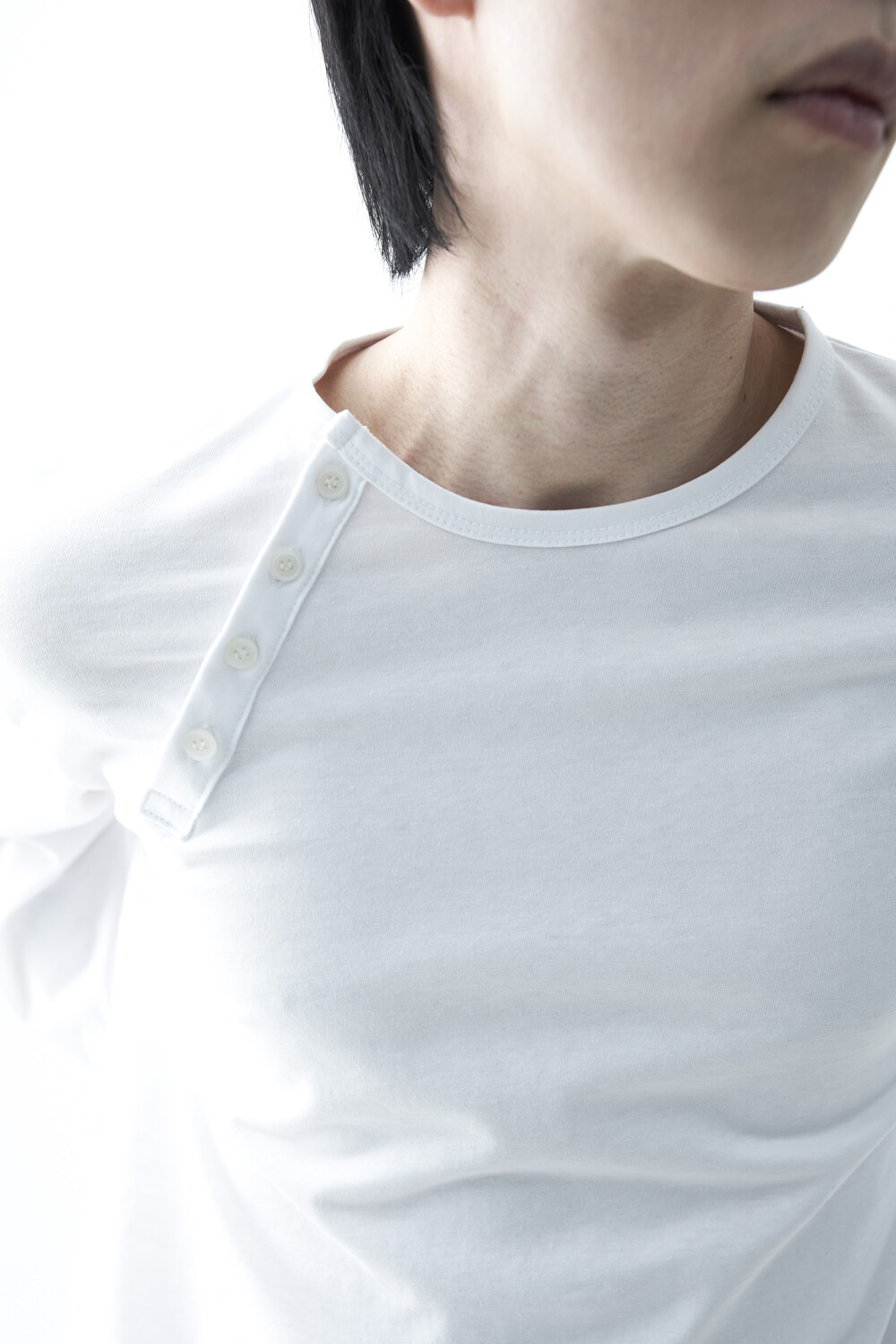 - 기존의 헨리넥 스타일이 아닌 사선 헨리넥 스타일이 적용된 롱슬리브 헨리넥 티셔츠 제품입니다. 크롭한 기장감과 가벼운 착용감으로 미니멀하면서도 캐쥬얼한 착용이 가능합니다.