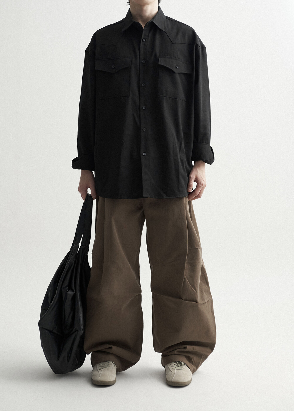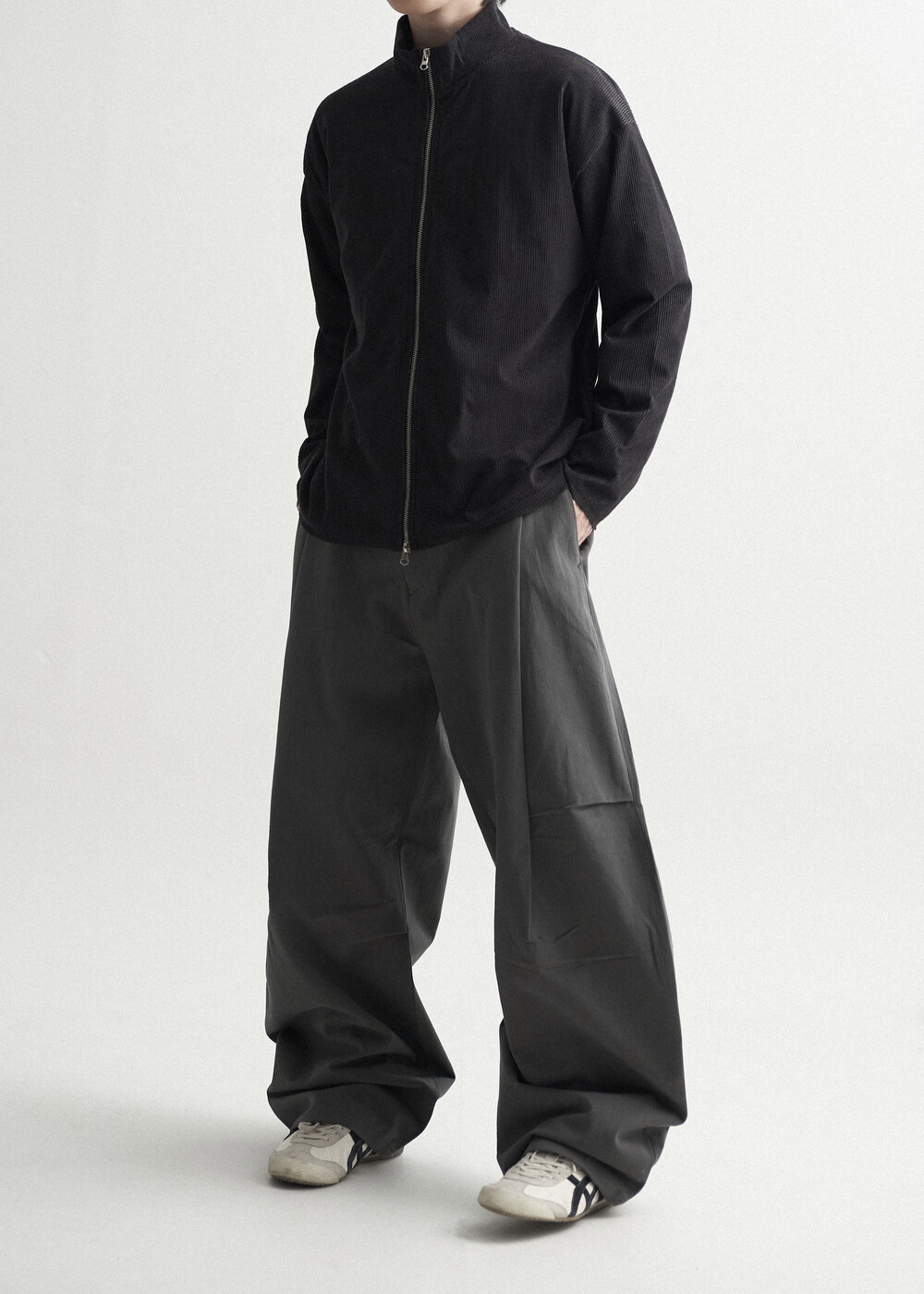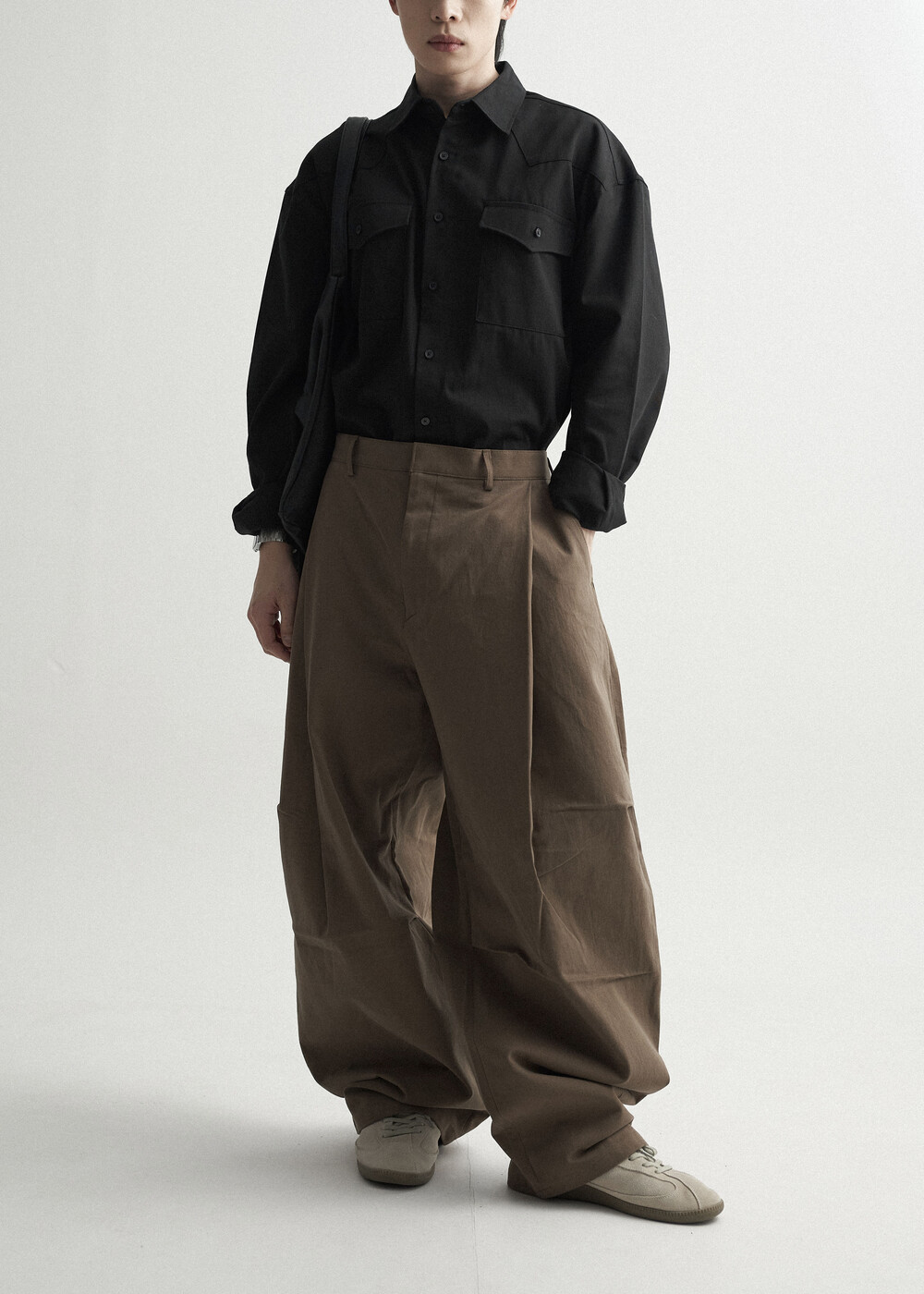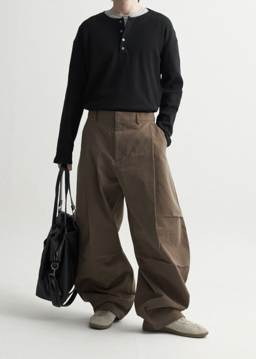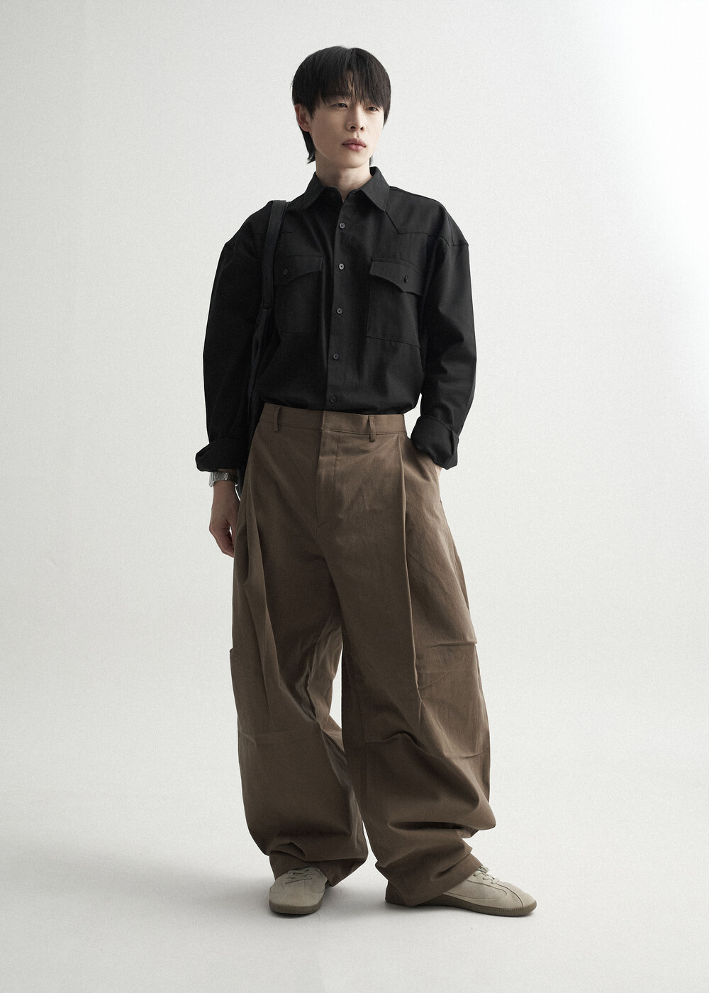 - 오버와이드 핏의 커브드 핀턱 디테일
