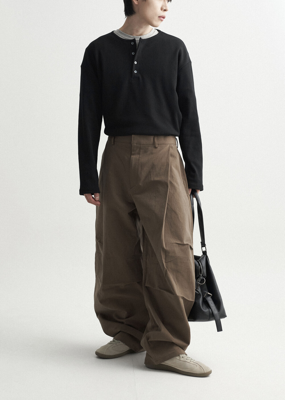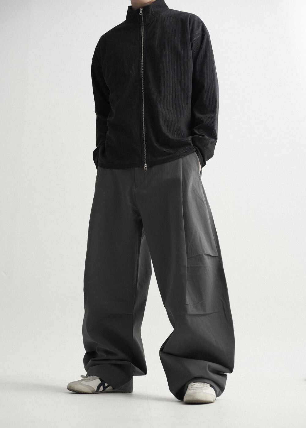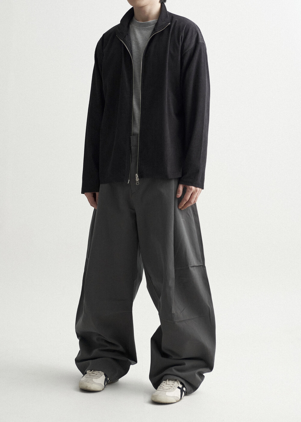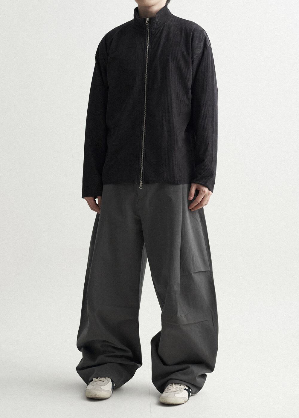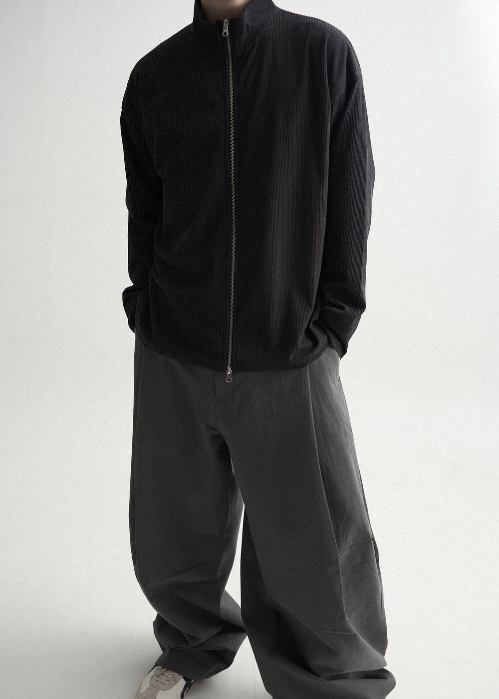 - 오버와이드 핏의 커브드 핀턱 디테일