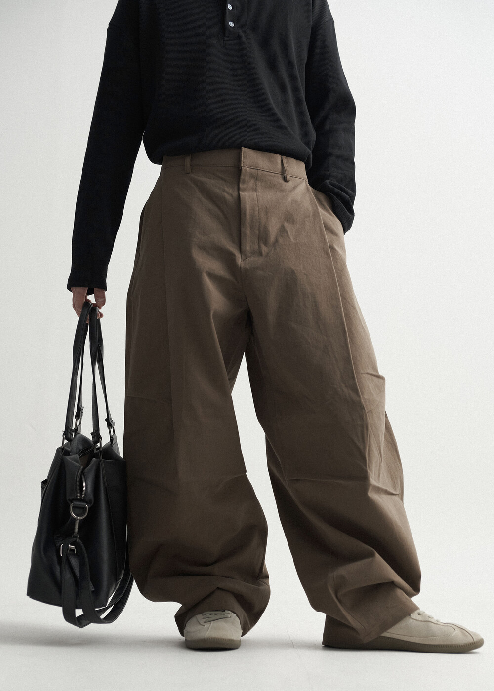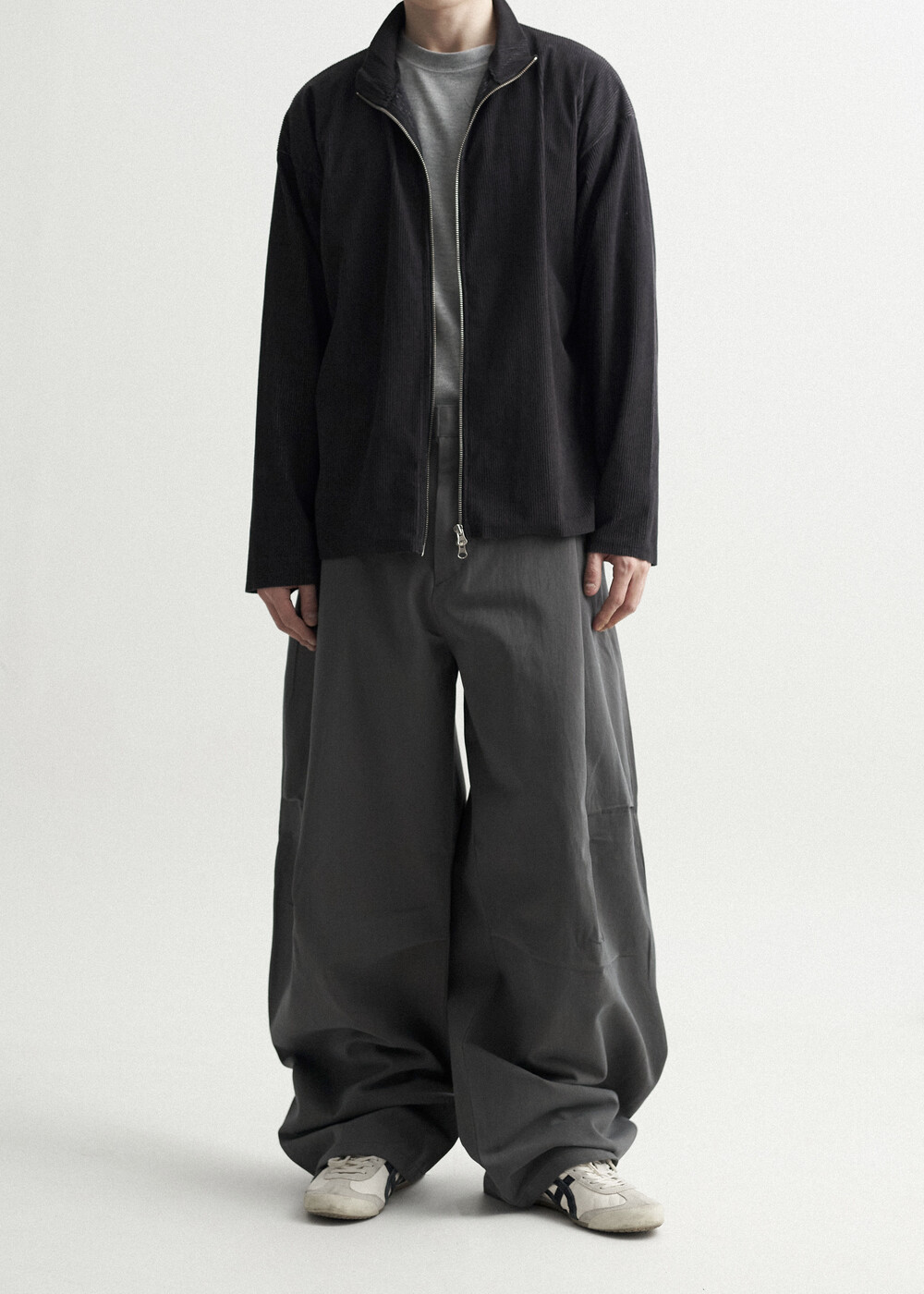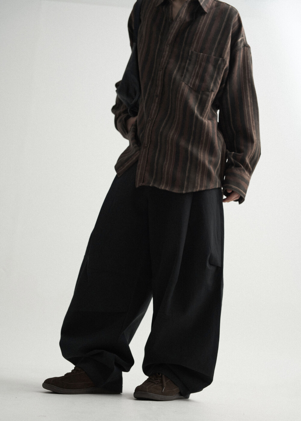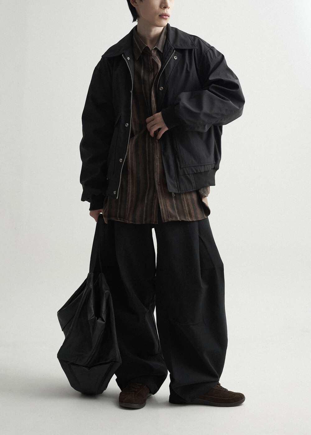 - 오버와이드 핏의 커브드 핀턱 디테일