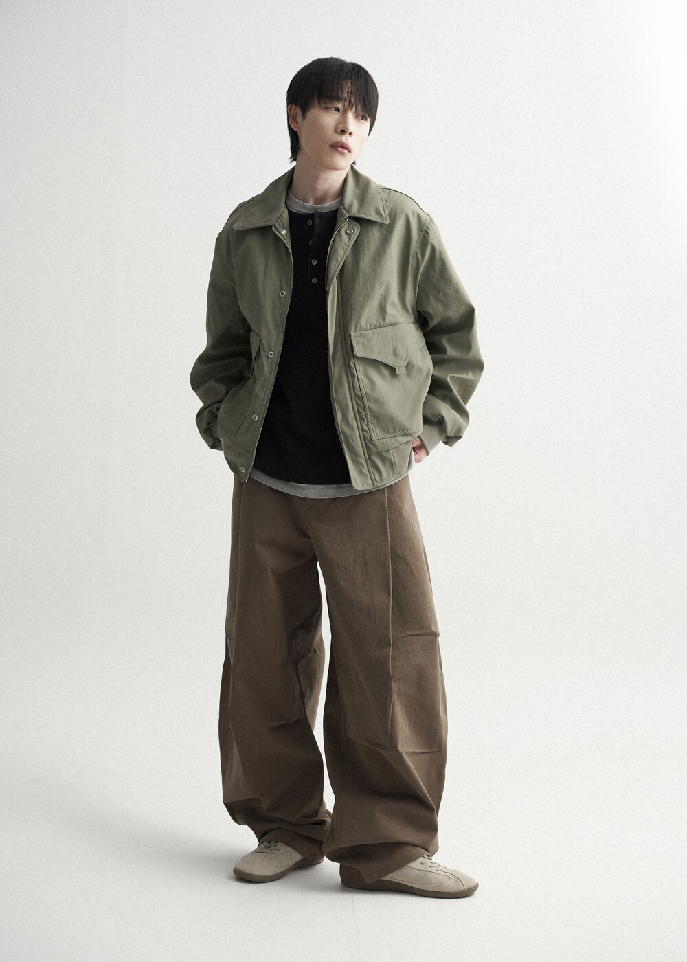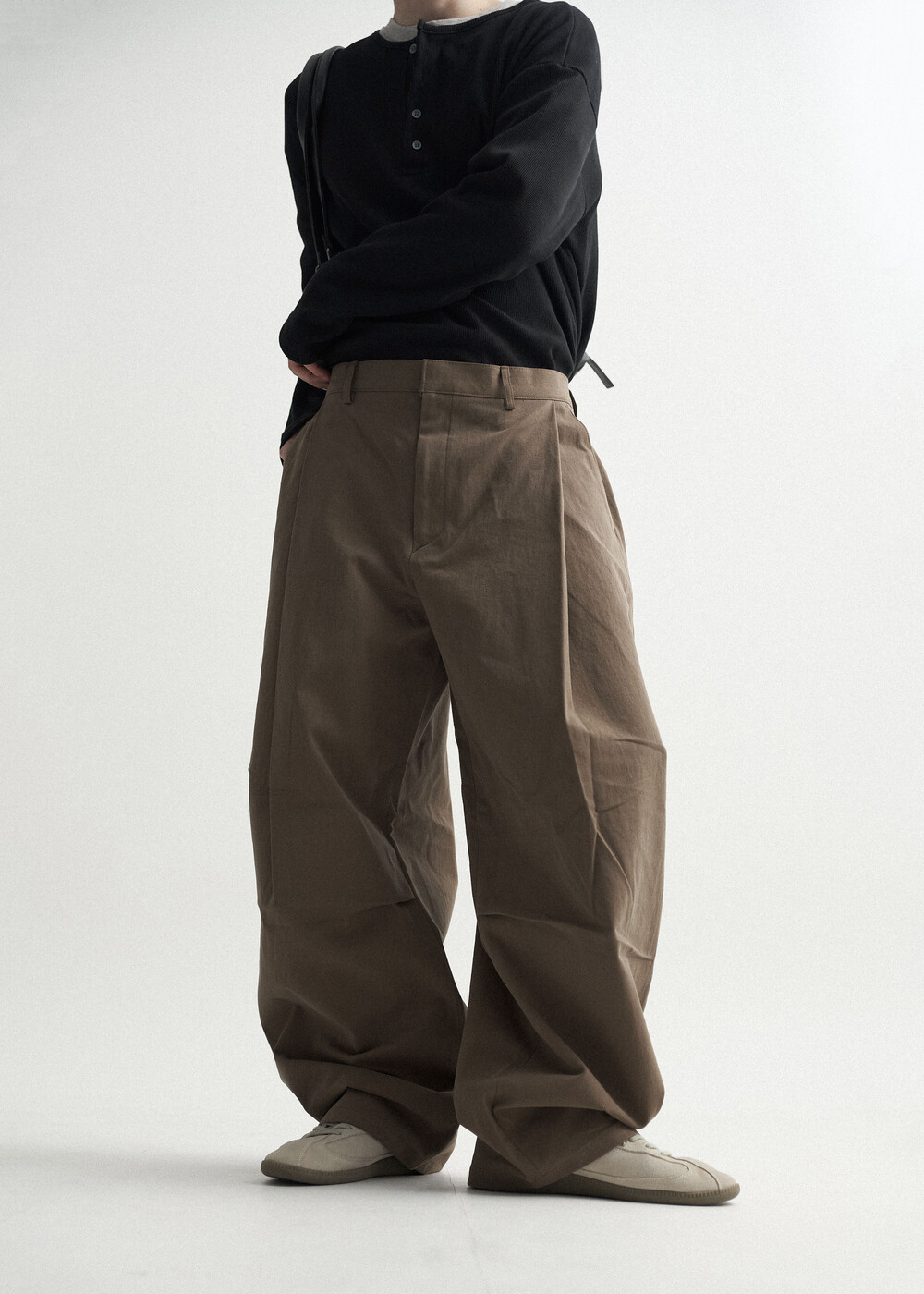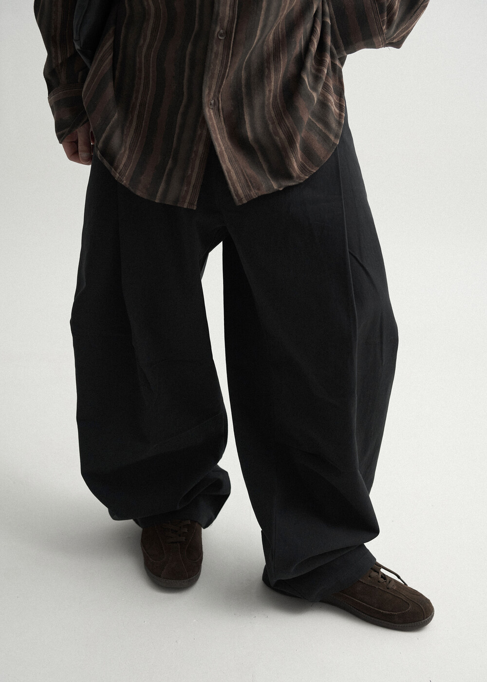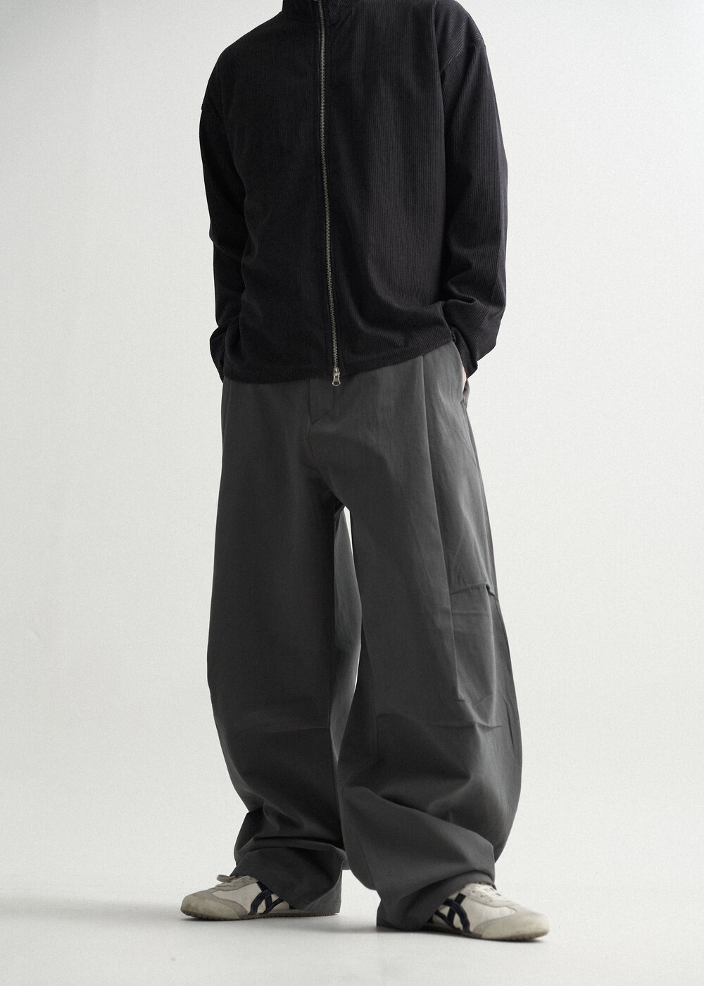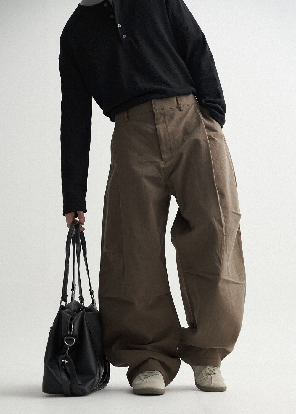 - 오버와이드 핏의 커브드 핀턱 디테일