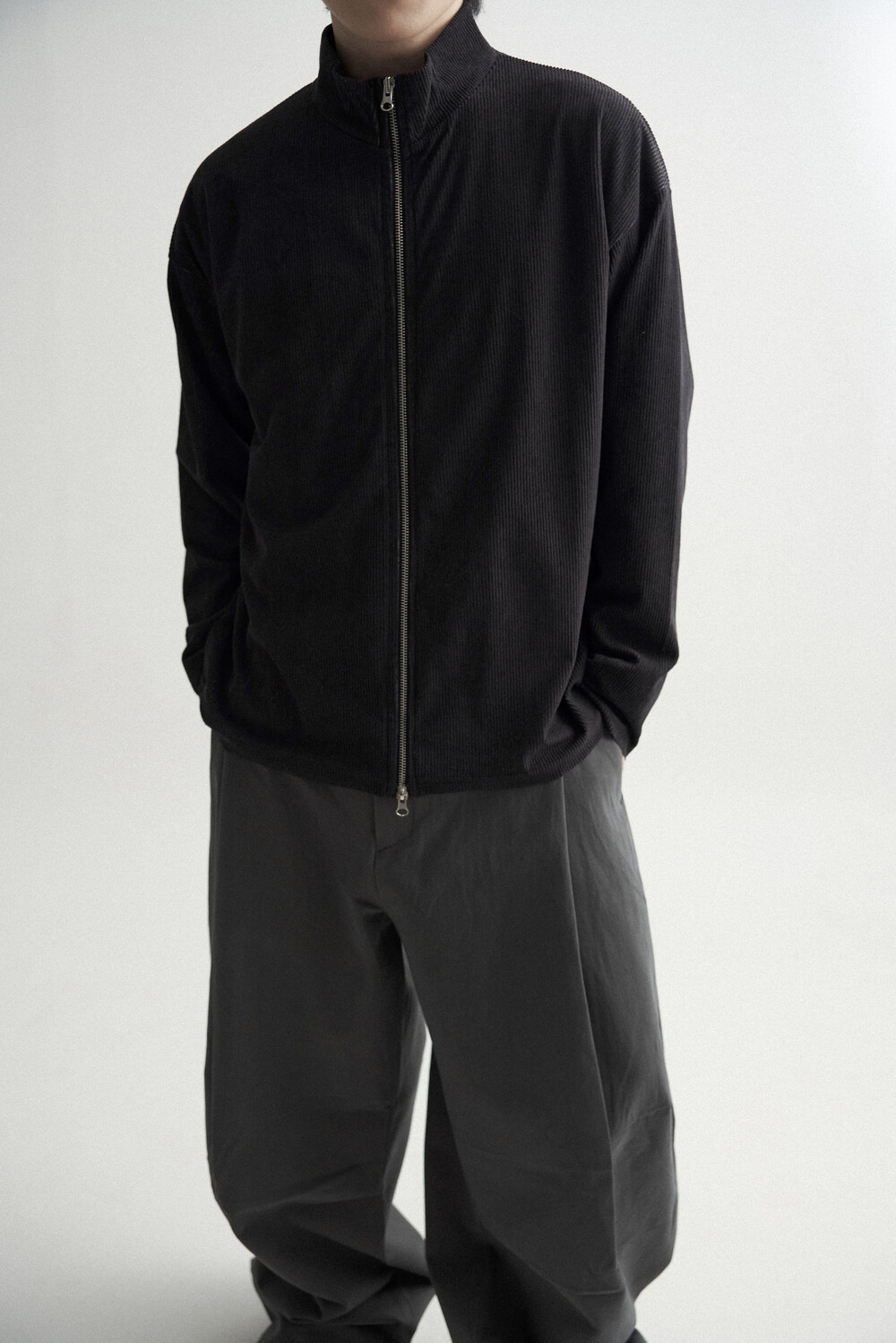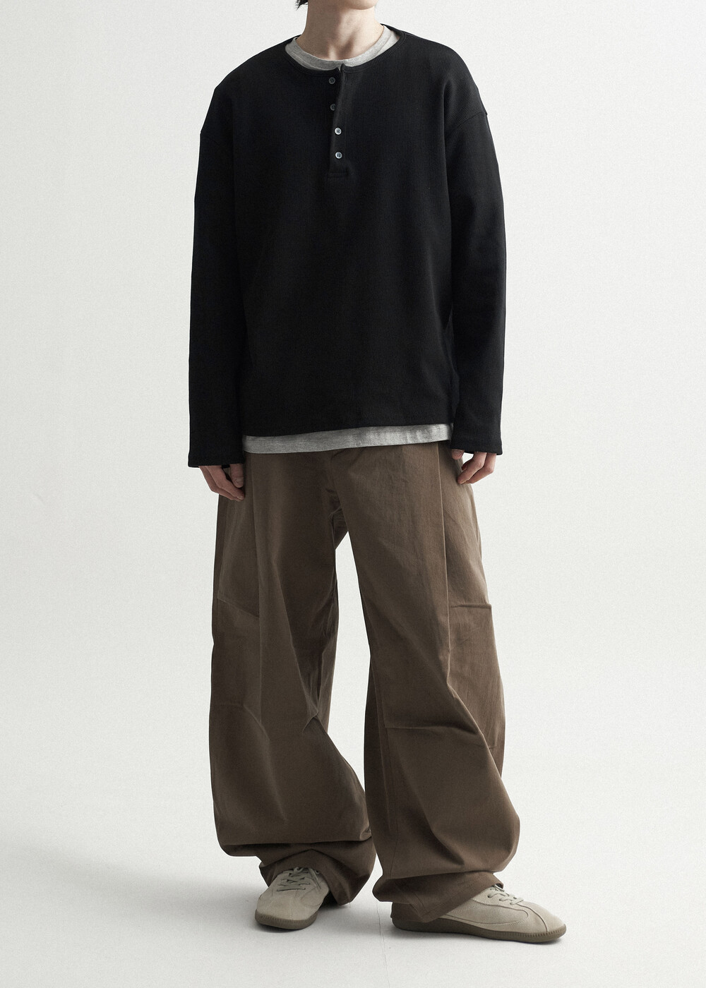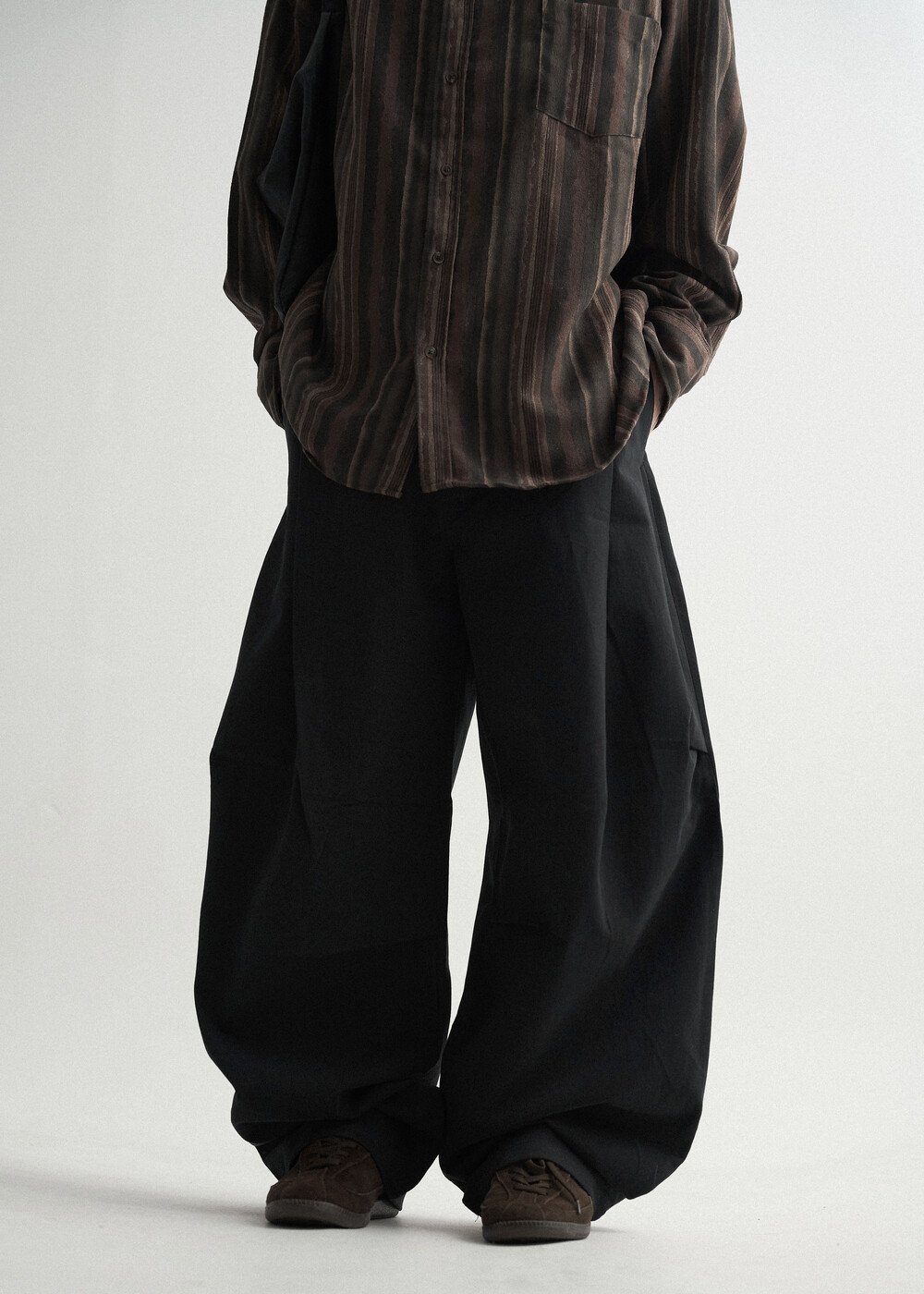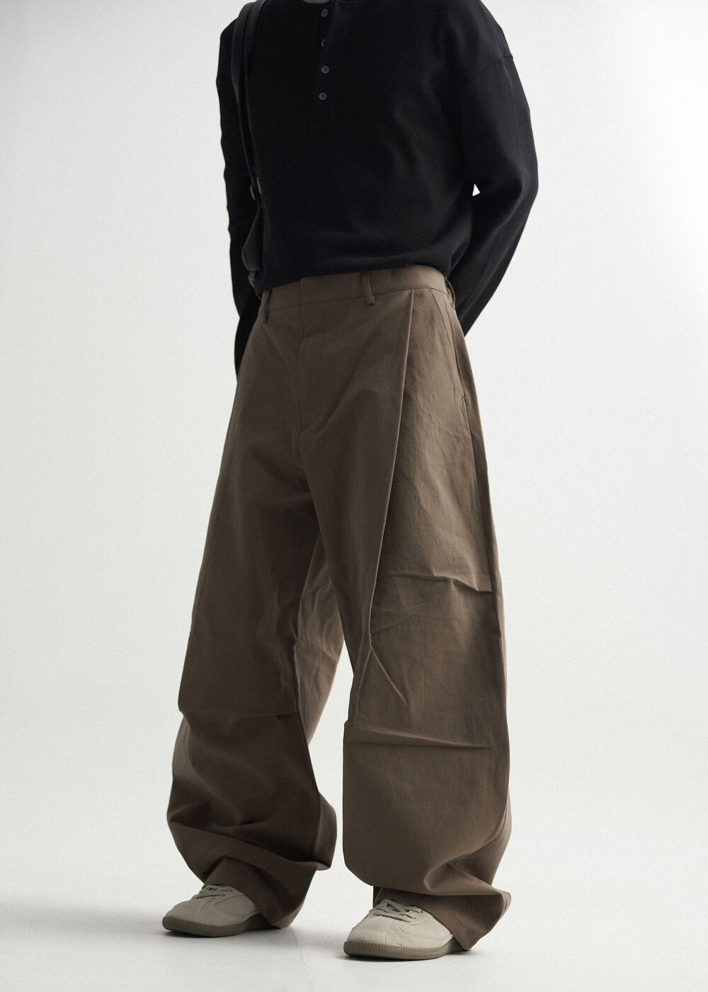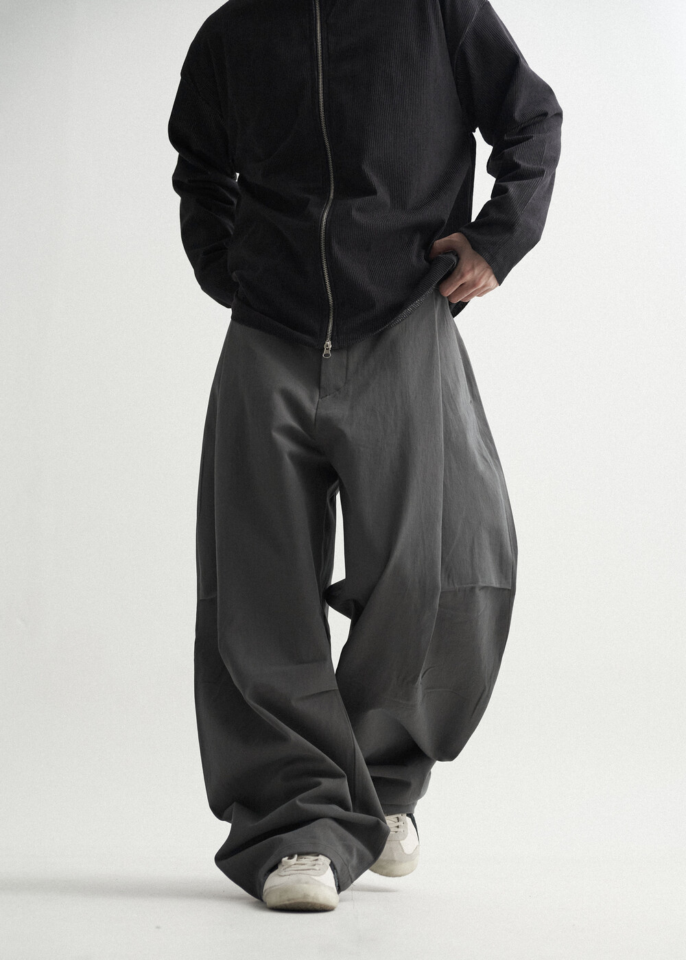 - 오버와이드 핏의 커브드 핀턱 디테일
