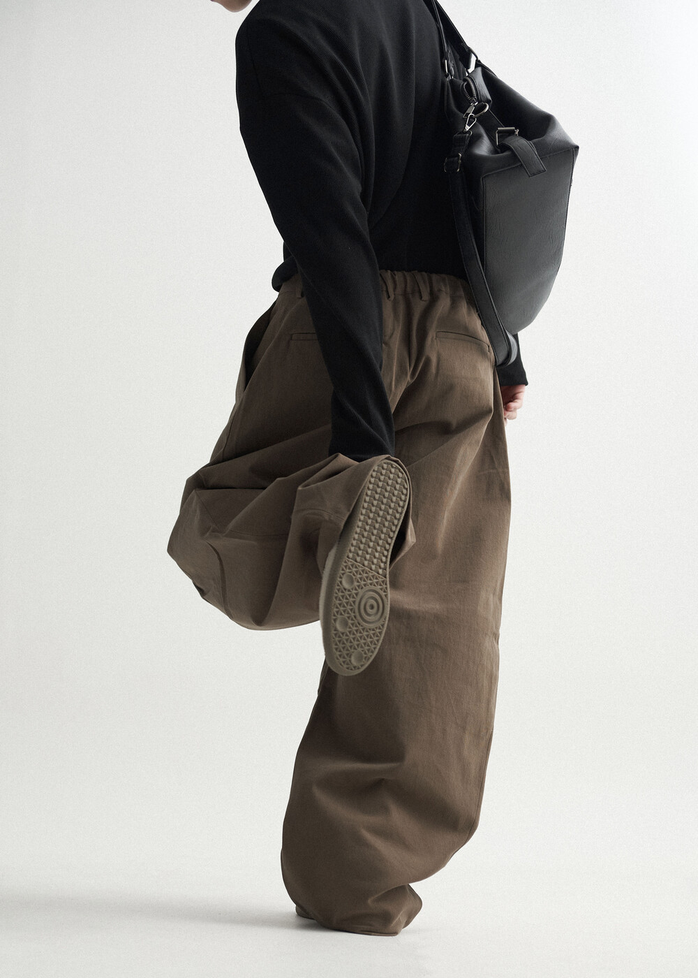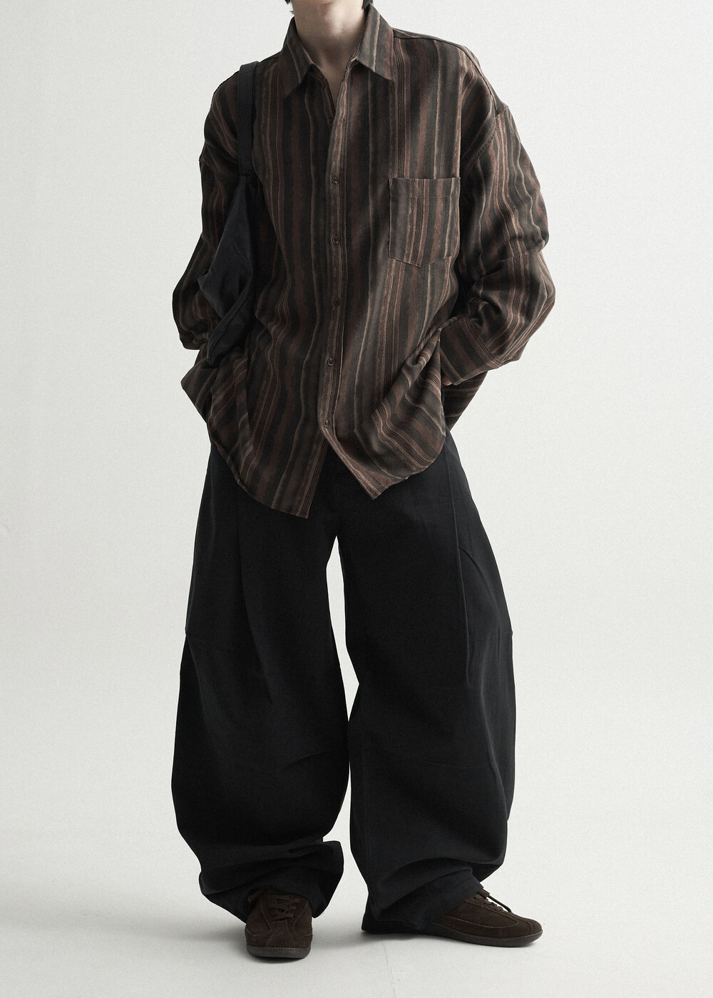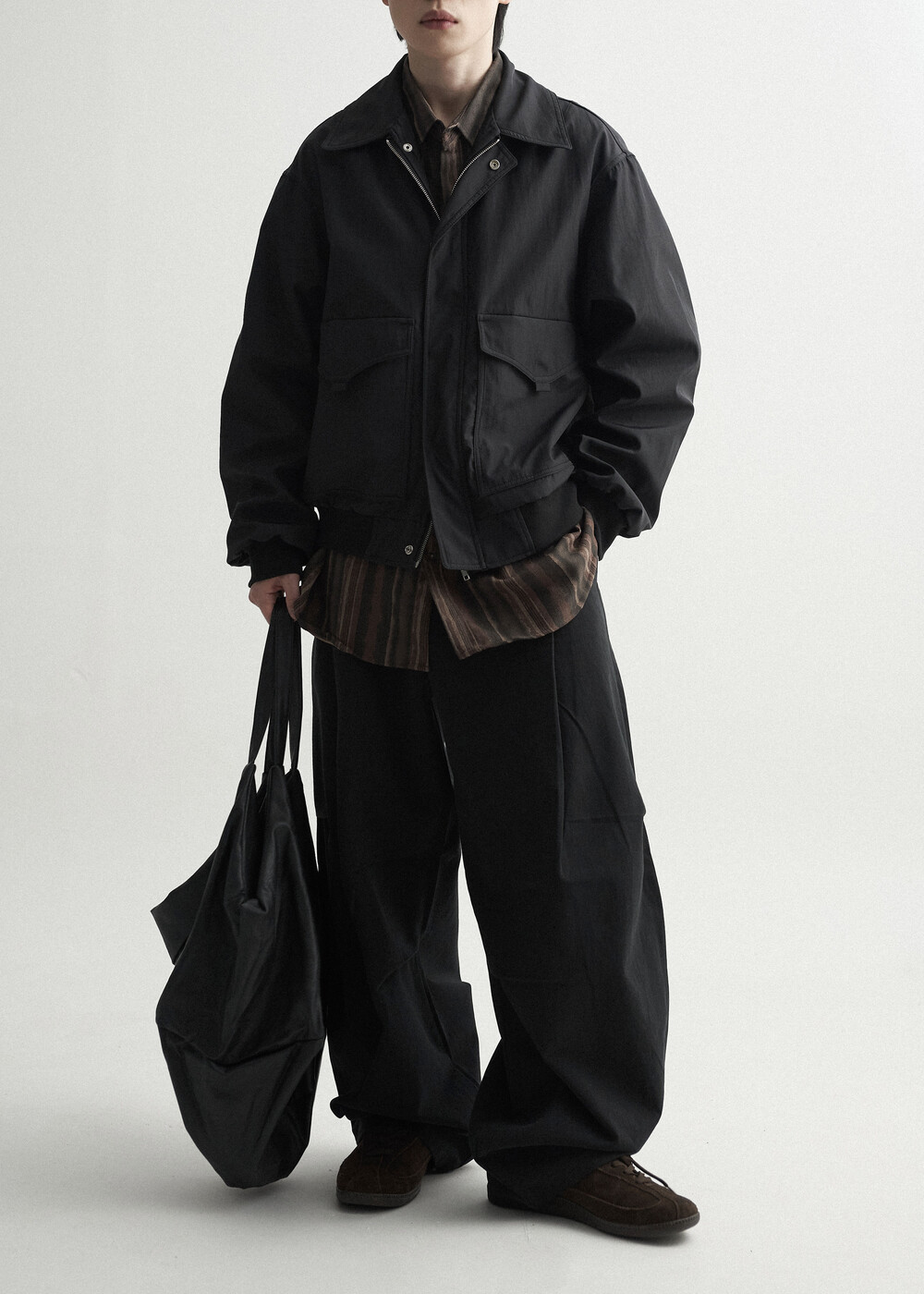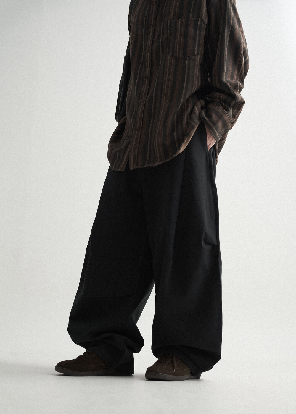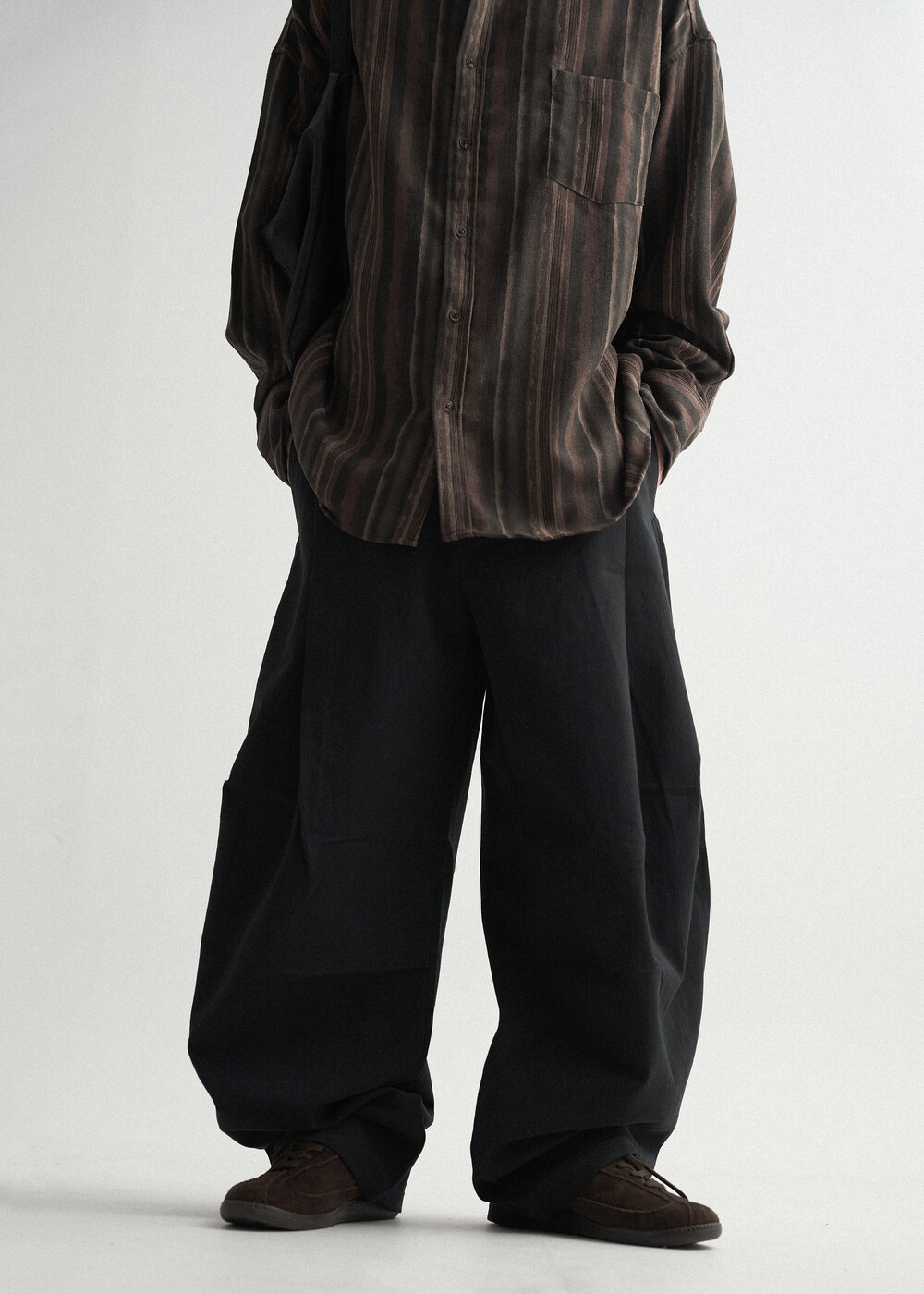 - 오버와이드 핏의 커브드 핀턱 디테일