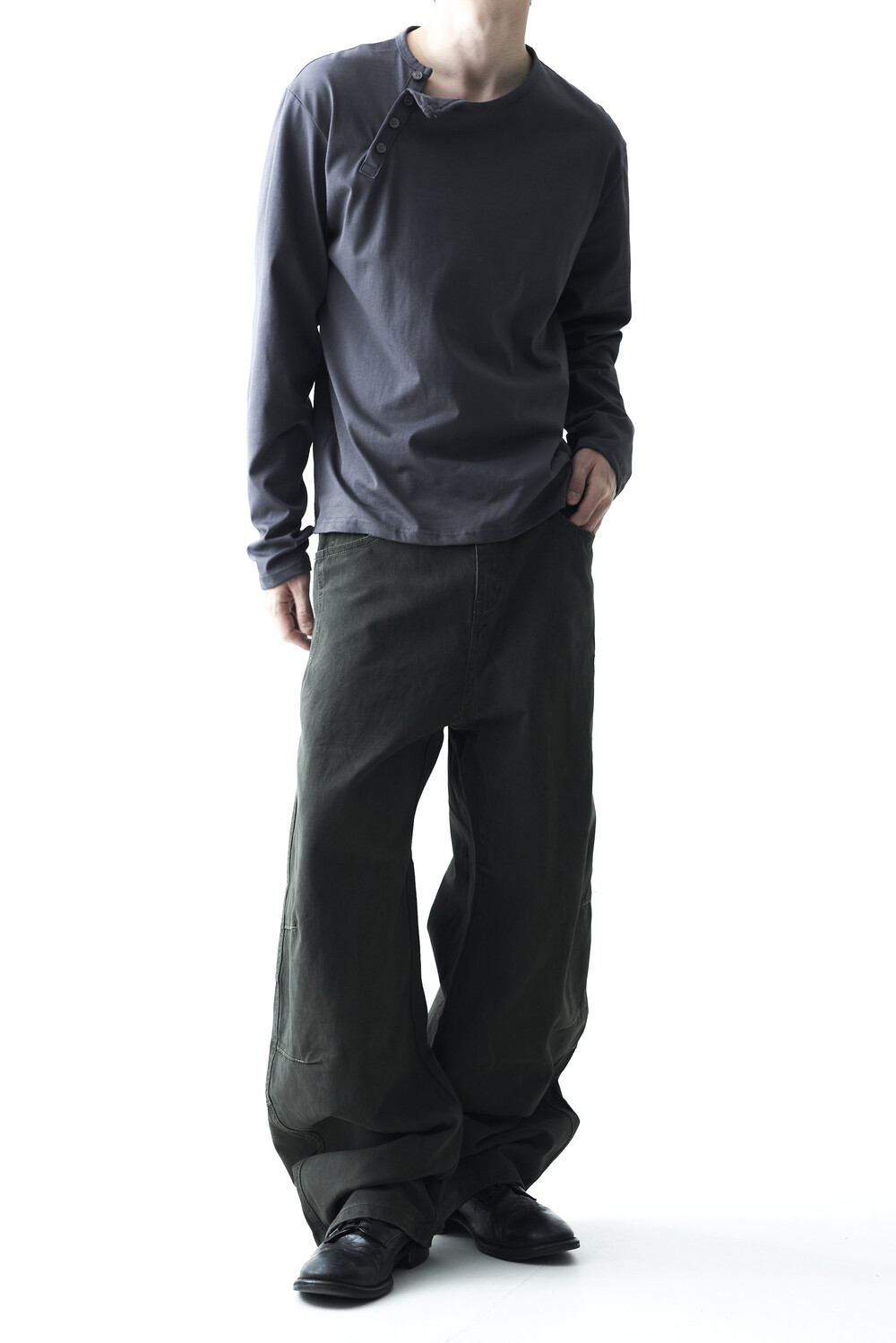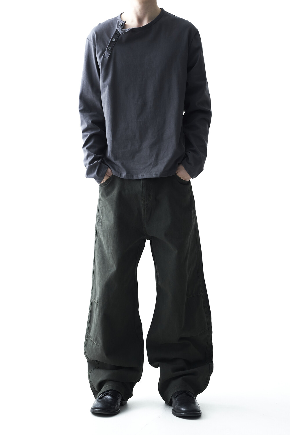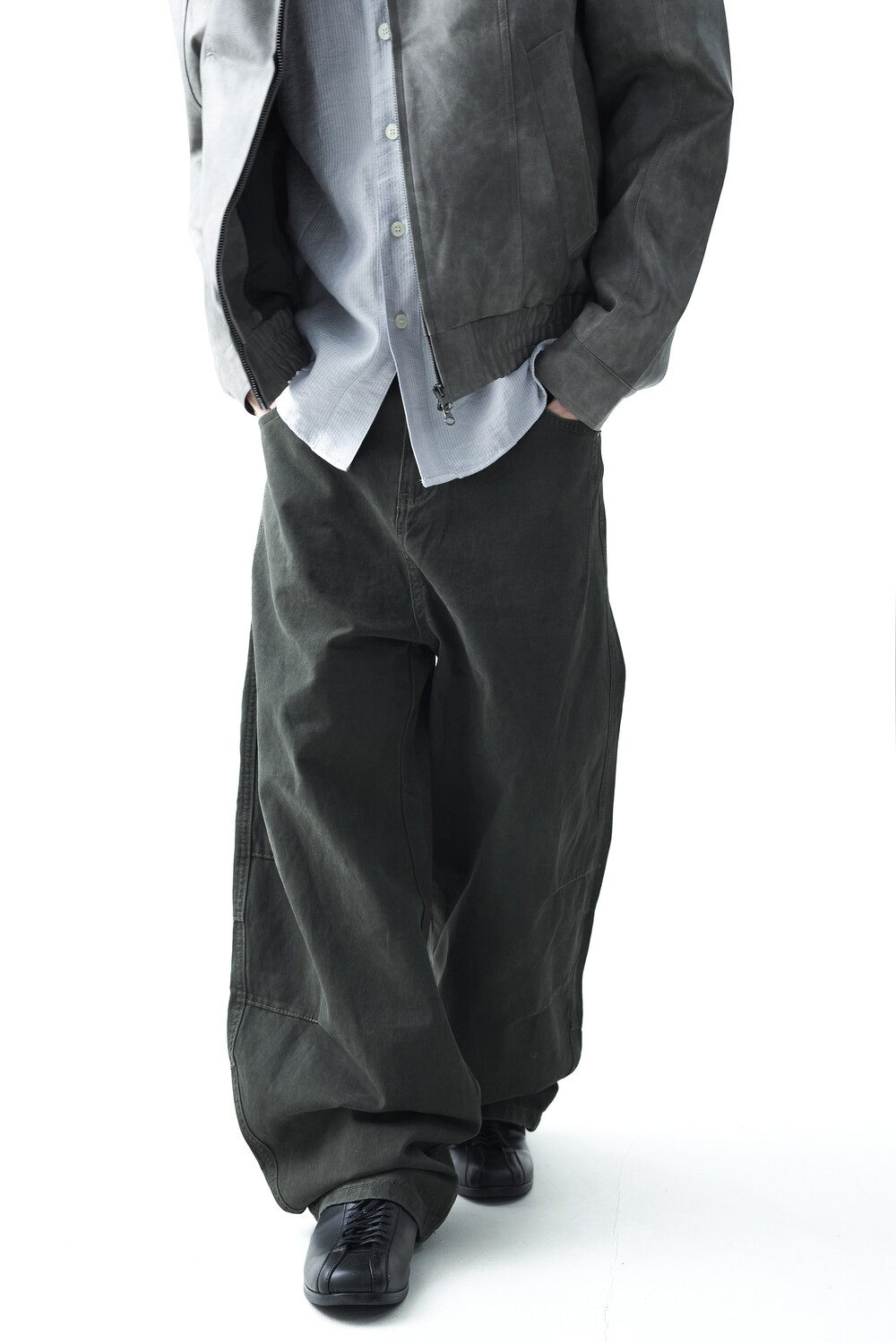 Dart washing curved wide pants