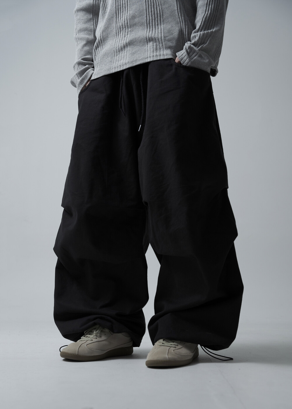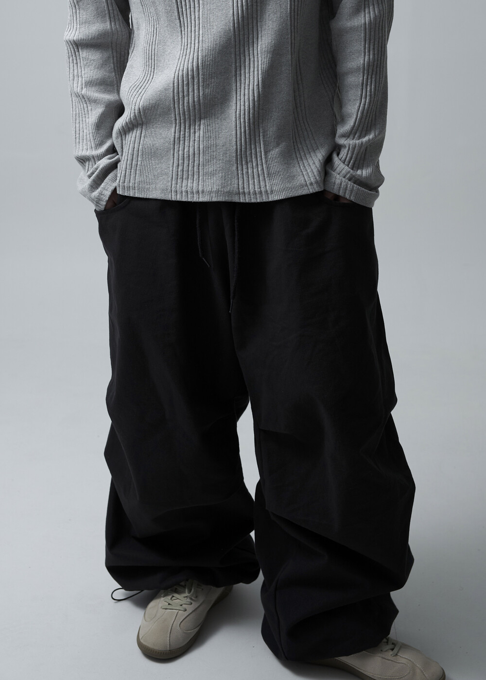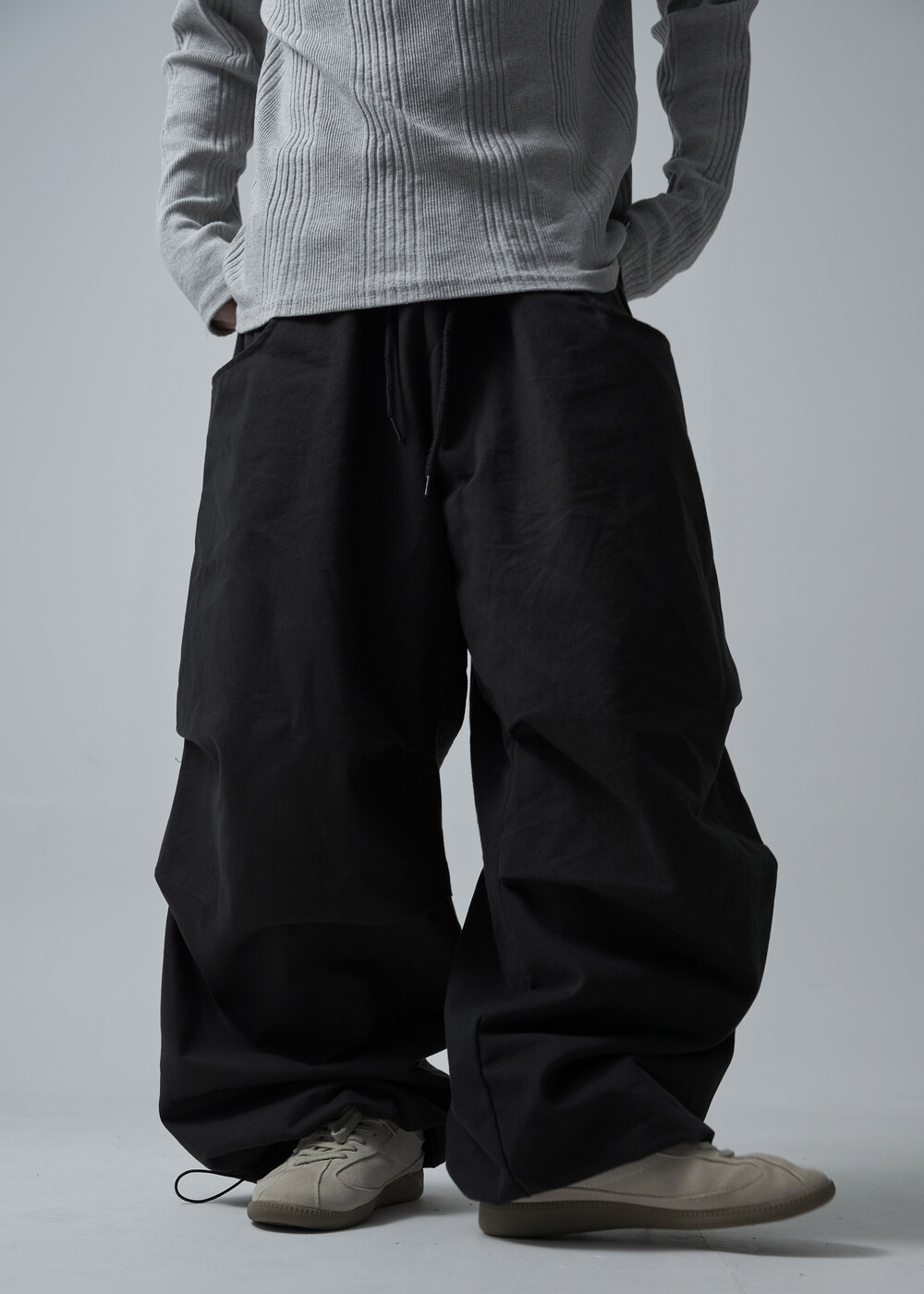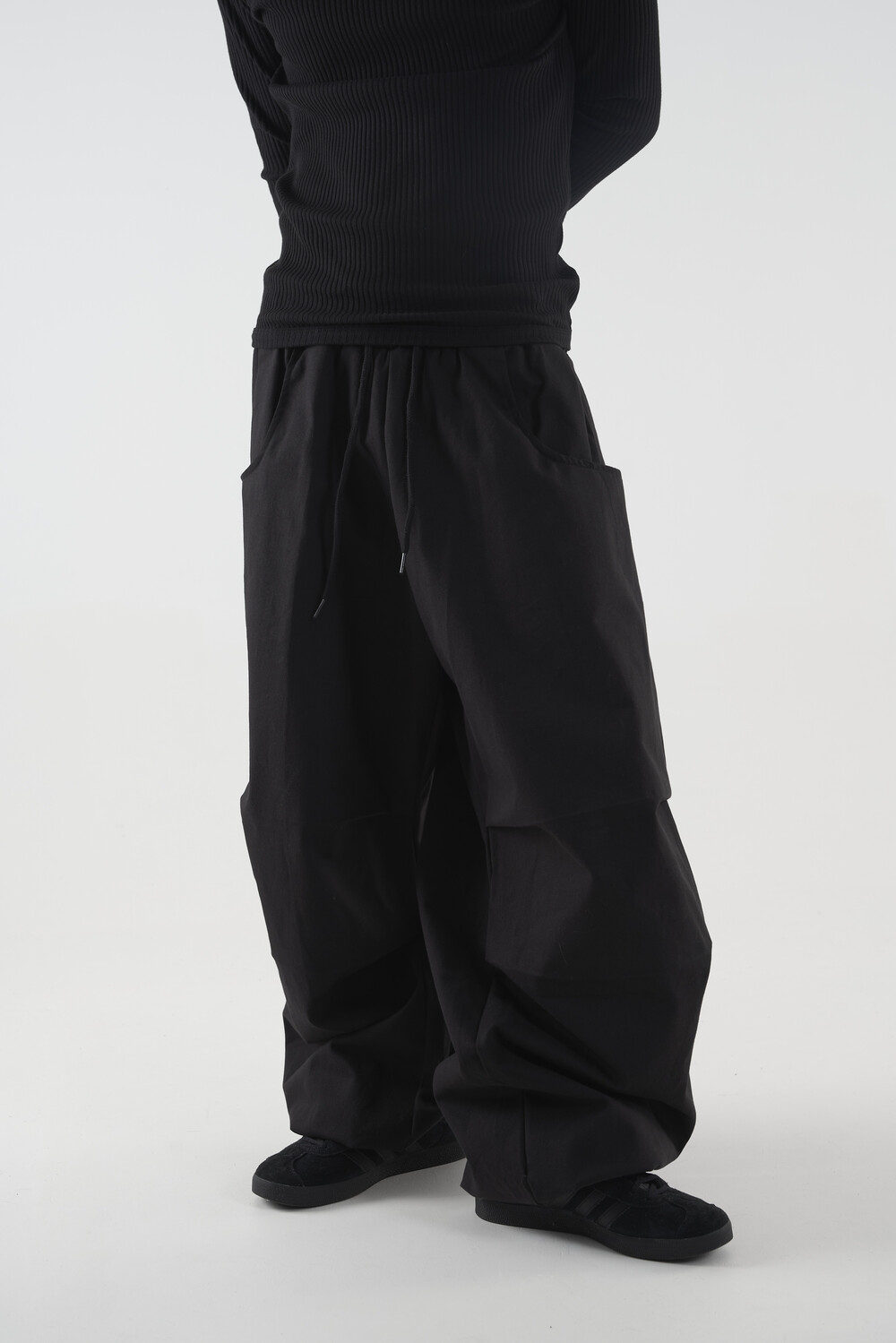 캐쥬얼한 무드를 입체적으로 연출하는 밴딩 코튼 와이드 팬츠 제품