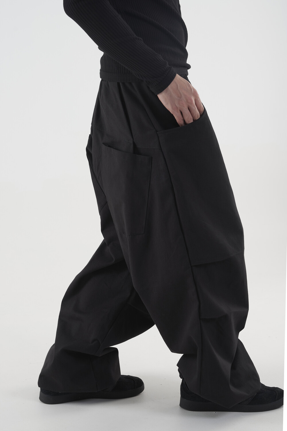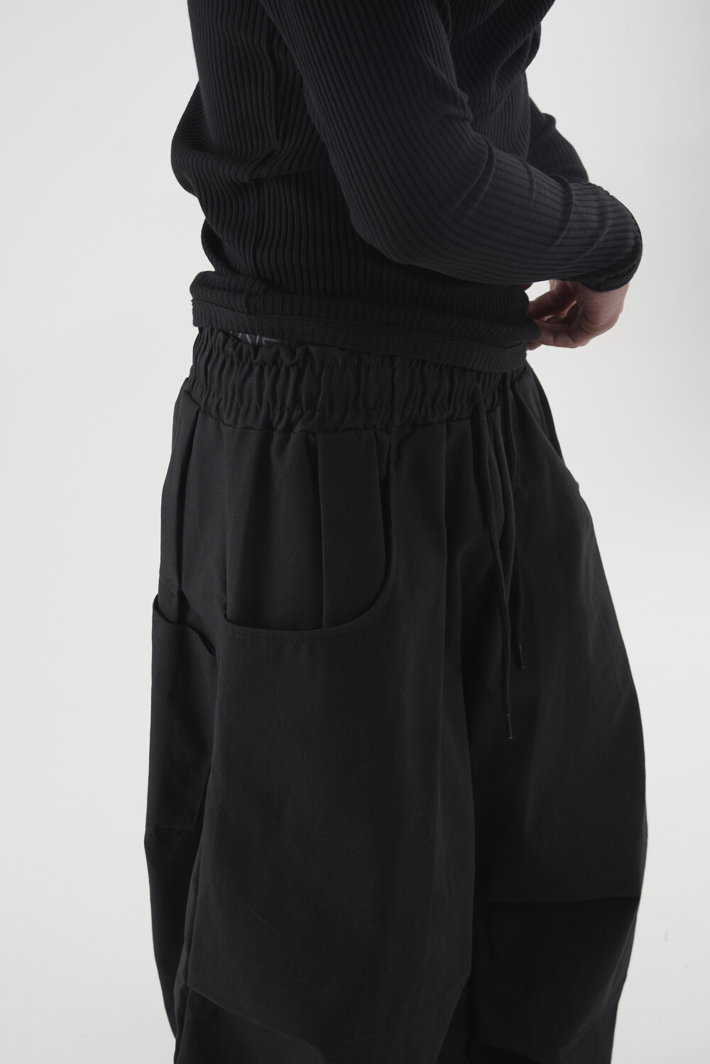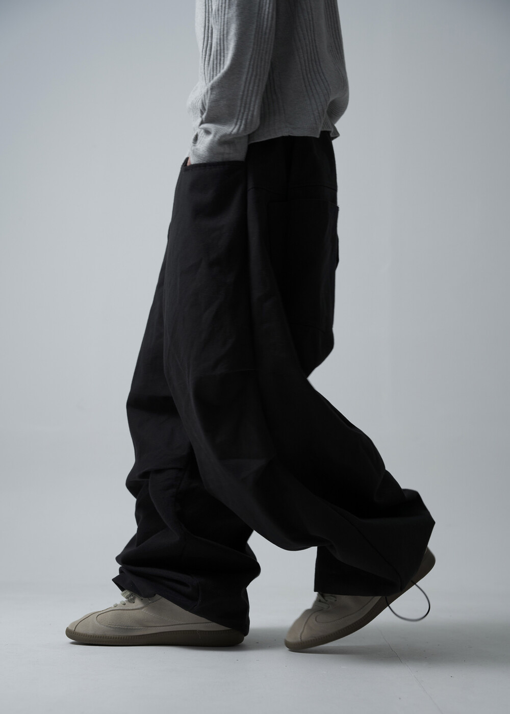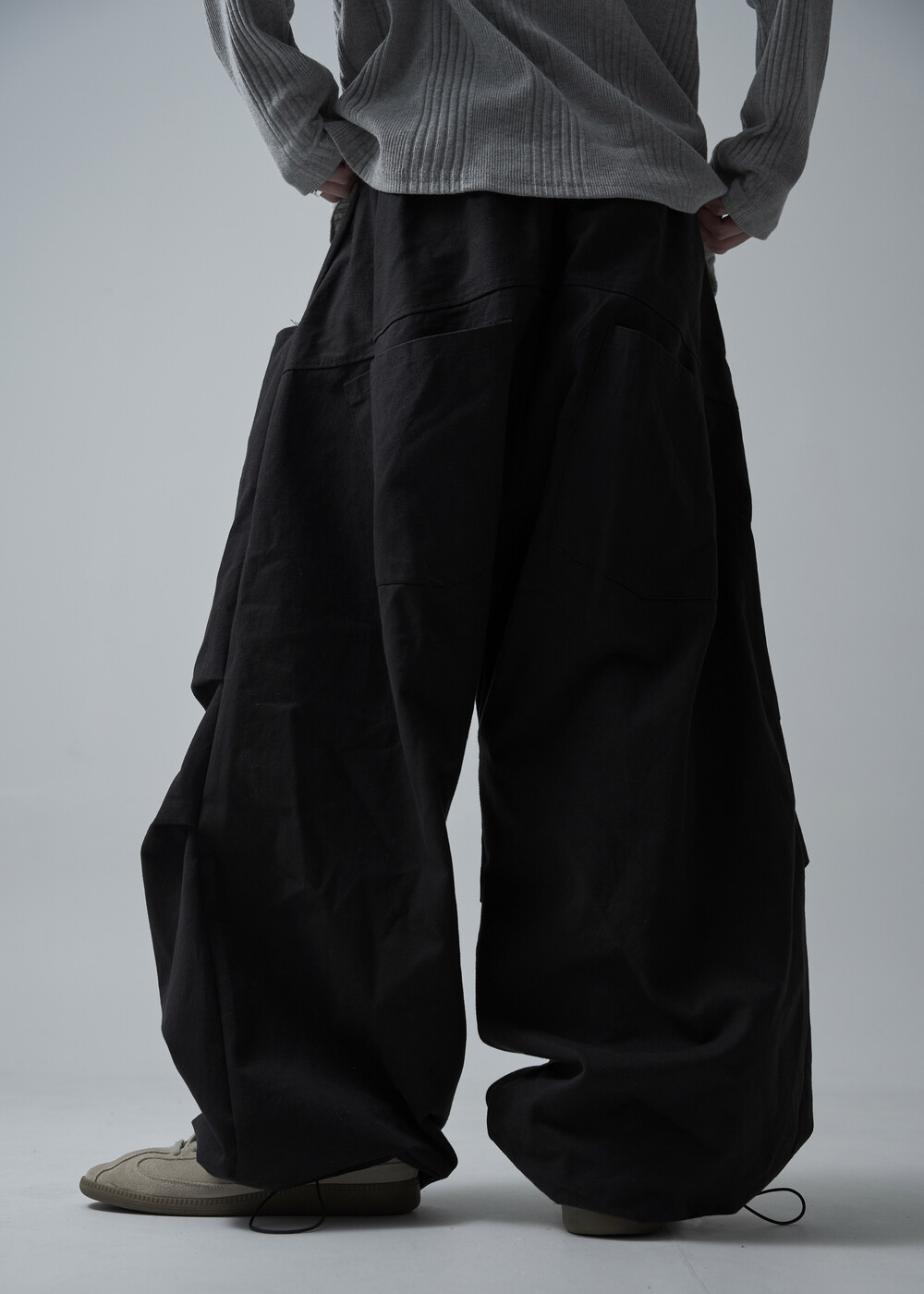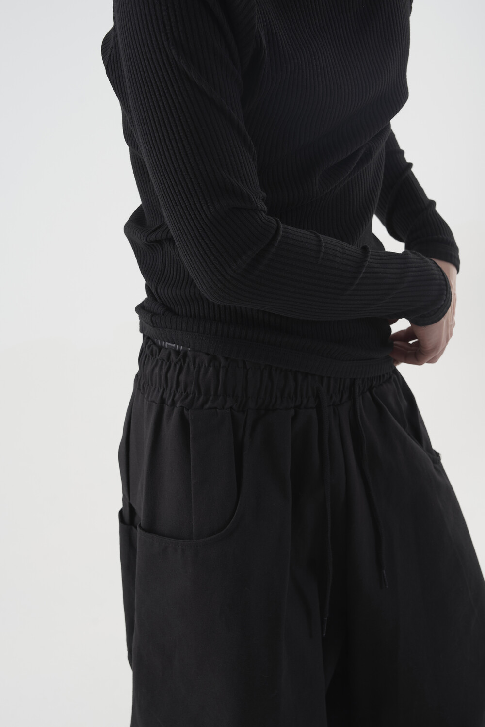 캐쥬얼한 무드를 입체적으로 연출하는 밴딩 코튼 와이드 팬츠 제품