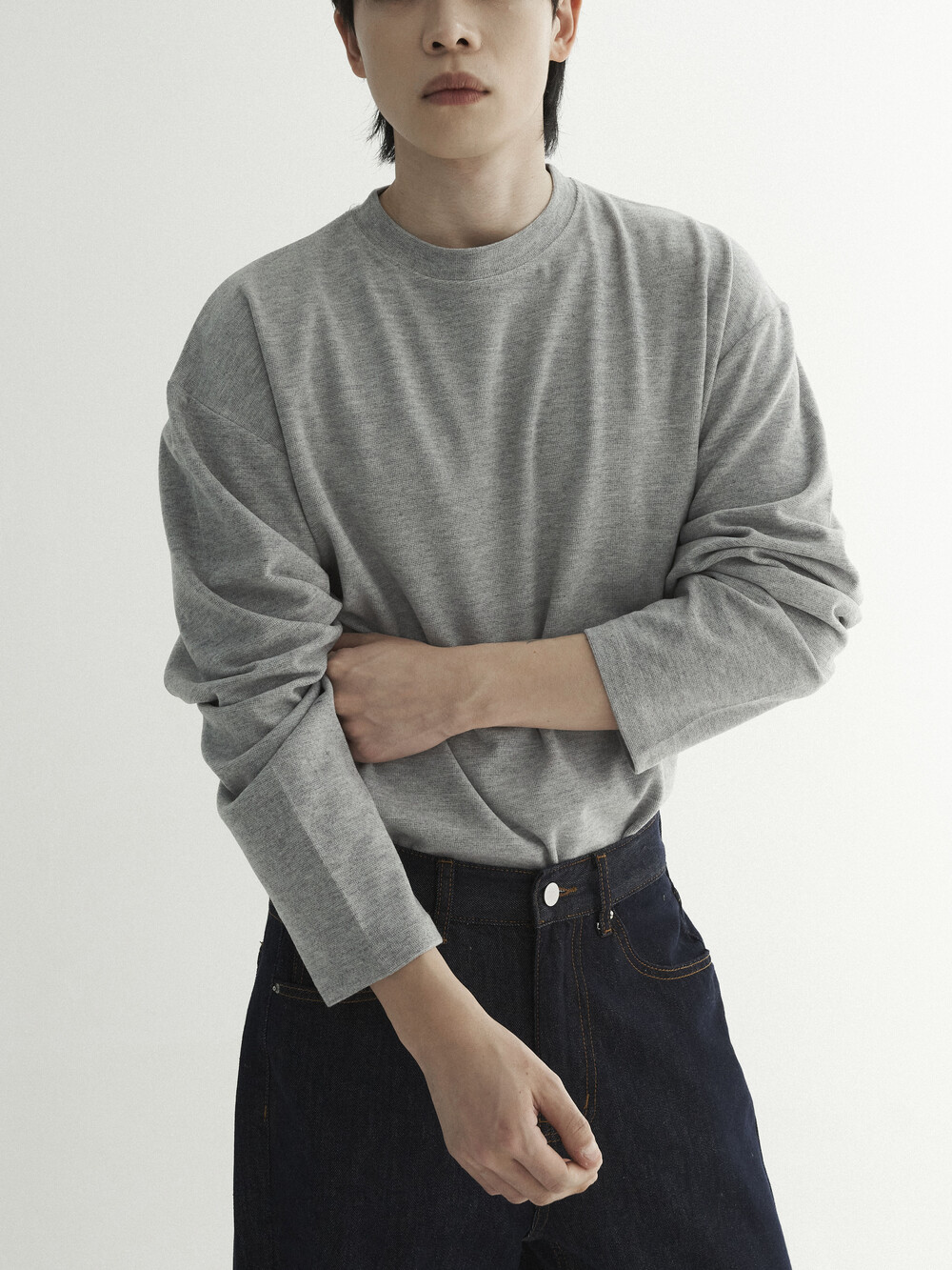 도톰한 두께감의 이너 슬리브 니트 티셔츠 제품으로 겨울철 이너 코디에 높은 활용도를 보입니다. 폴리-코튼, 스판 소재의 혼용으로 뛰어난 착용감을 느끼실 수 있으며, 세밀한 와플 패턴의 텍스쳐가 미니멀한 무드를 더욱 잘 표현합니다. 베이직한 롱 슬리브의 특성을 잘 담아내 전체적으로 루즈한 핏감에서 흘러내리는 듯한 실루엣을 연출합니다.
