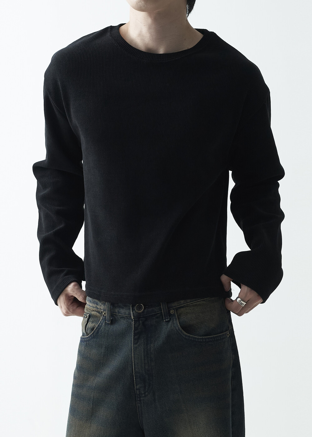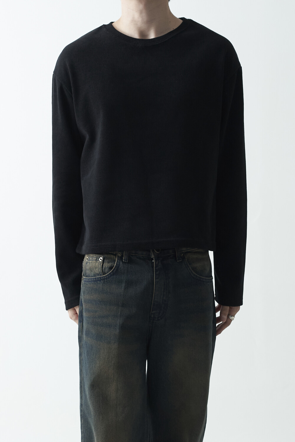 미니멀한 와플 패턴의 크롭 롱슬리브 티 제품입니다. 기본 티셔츠보다는 두꺼운 두께감으로 FW시즌 모두 착용하실 수 있으며, 간결한 무드 연출에 탁월한 슬리브 제품입니다.