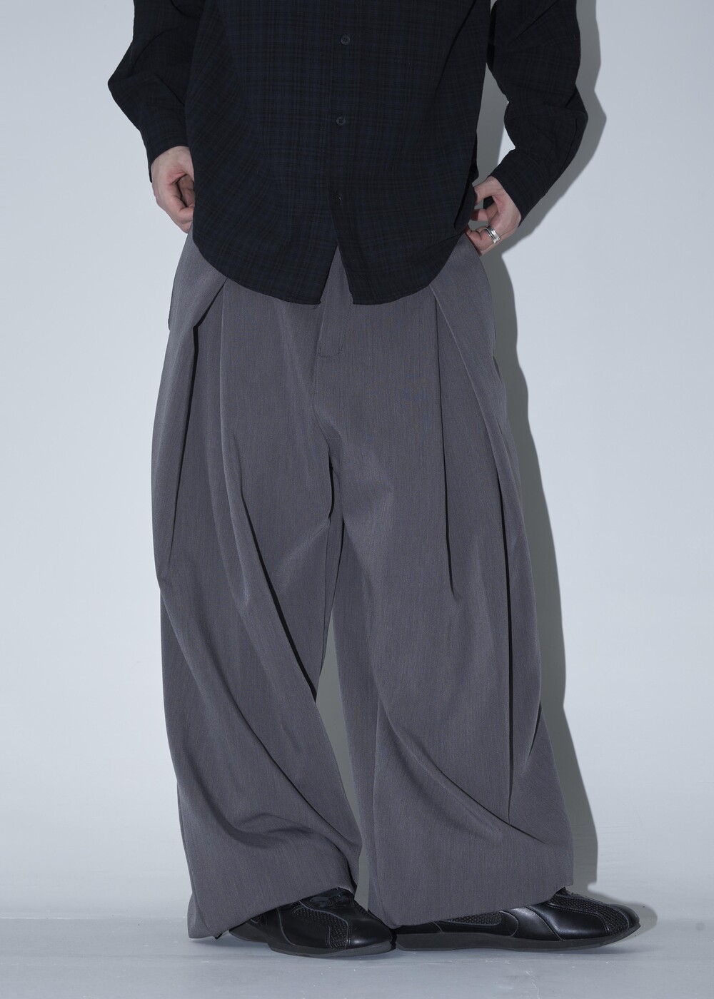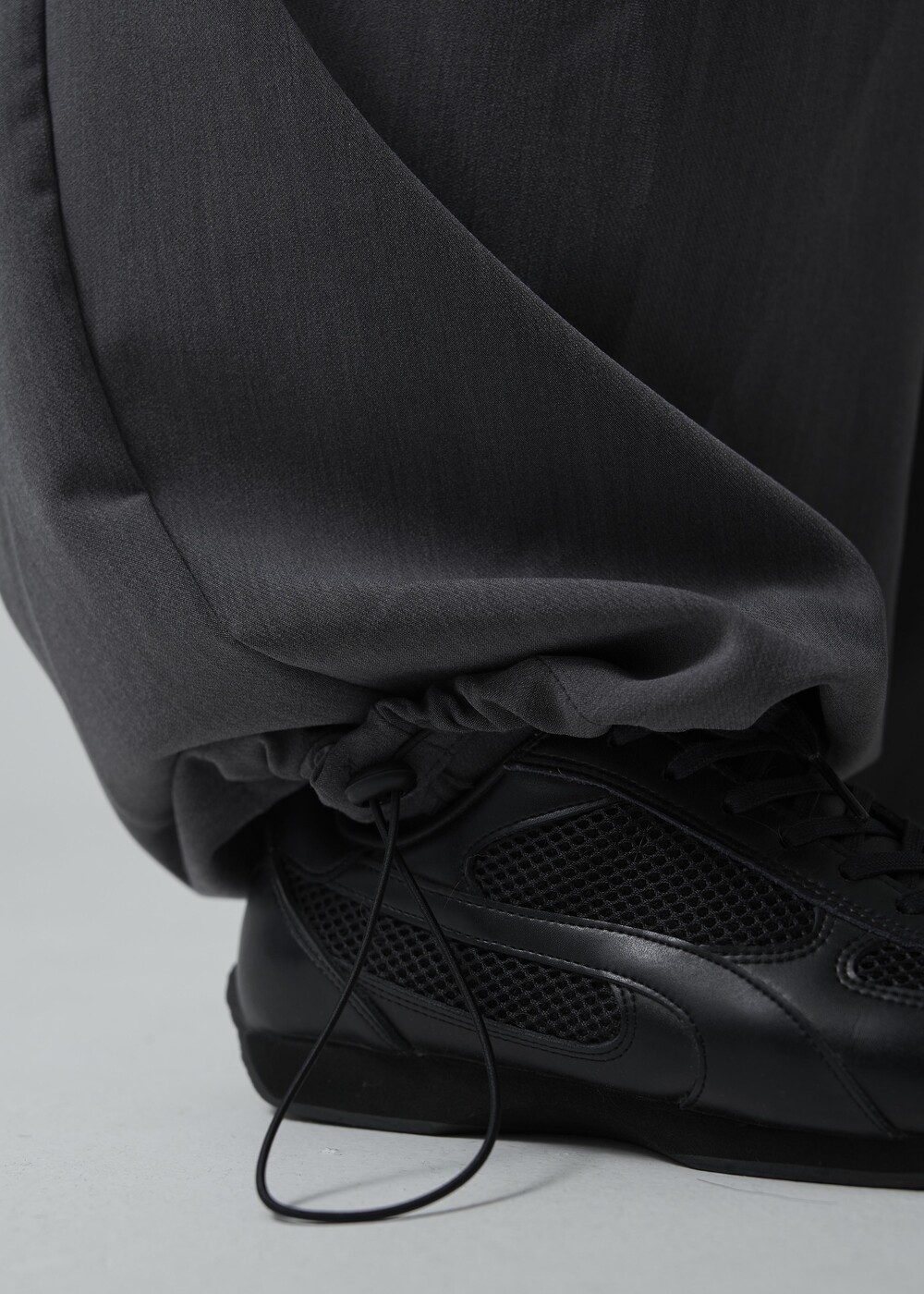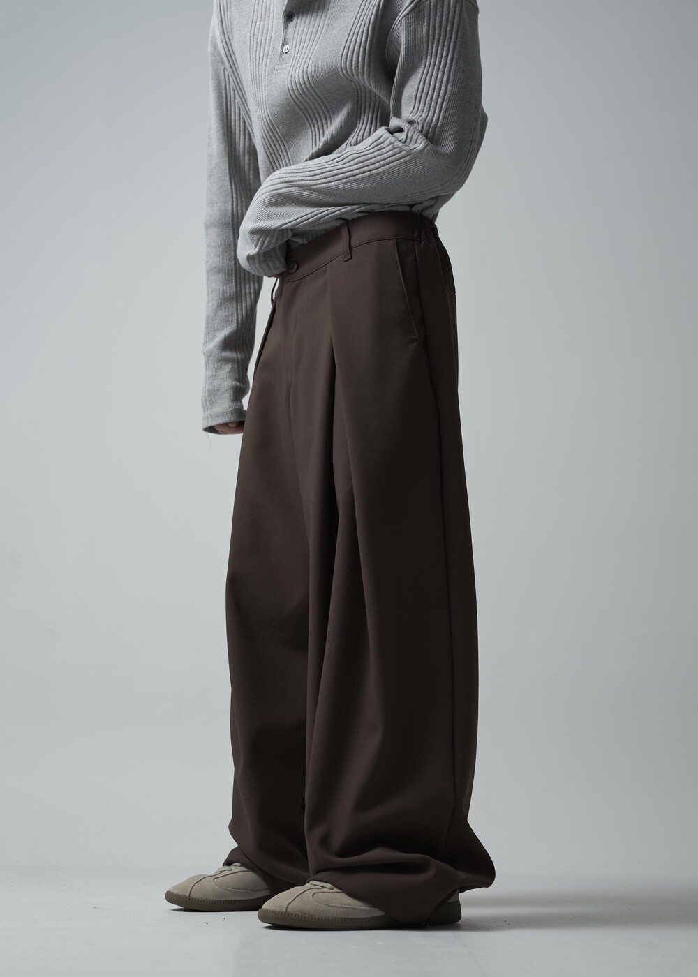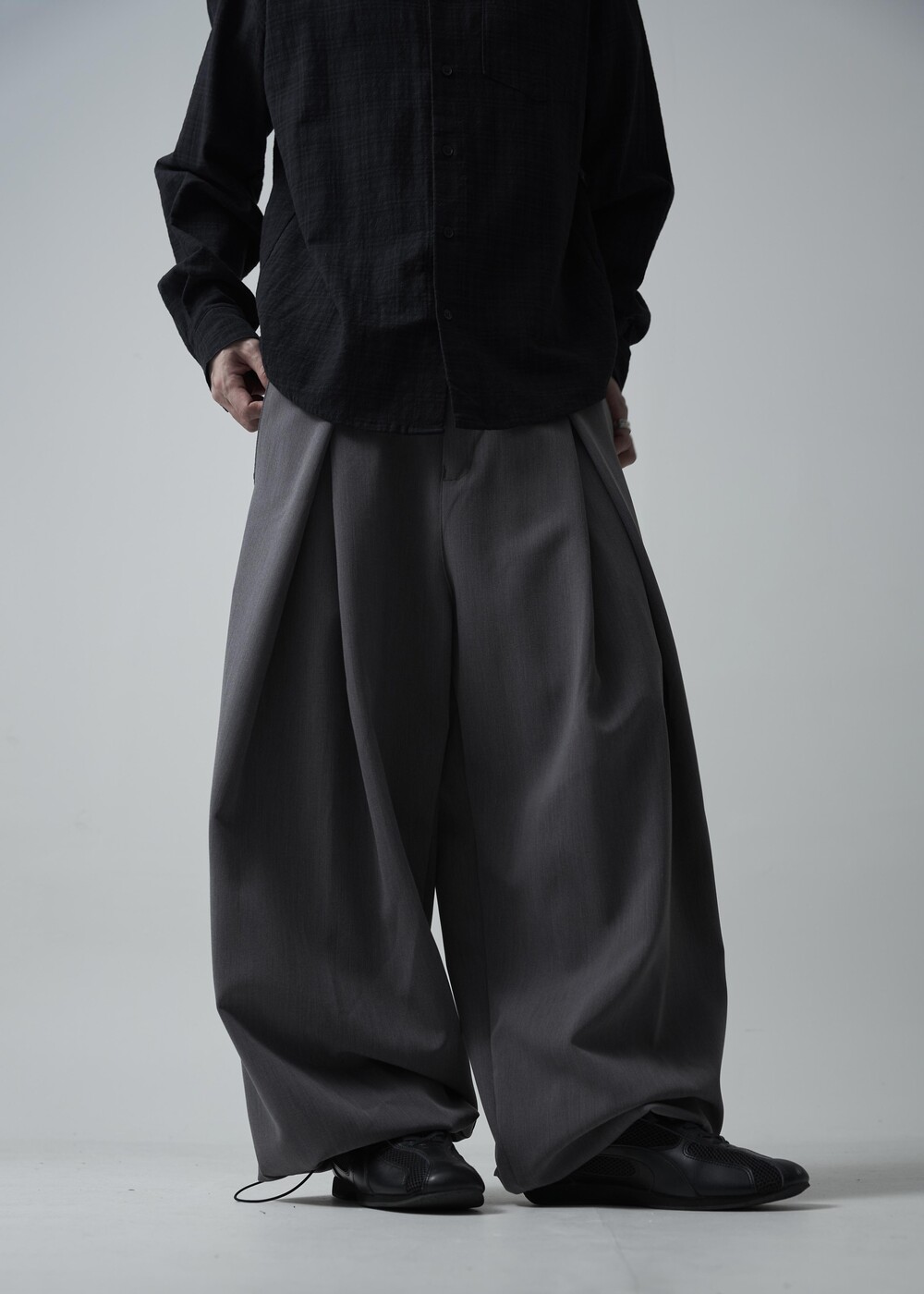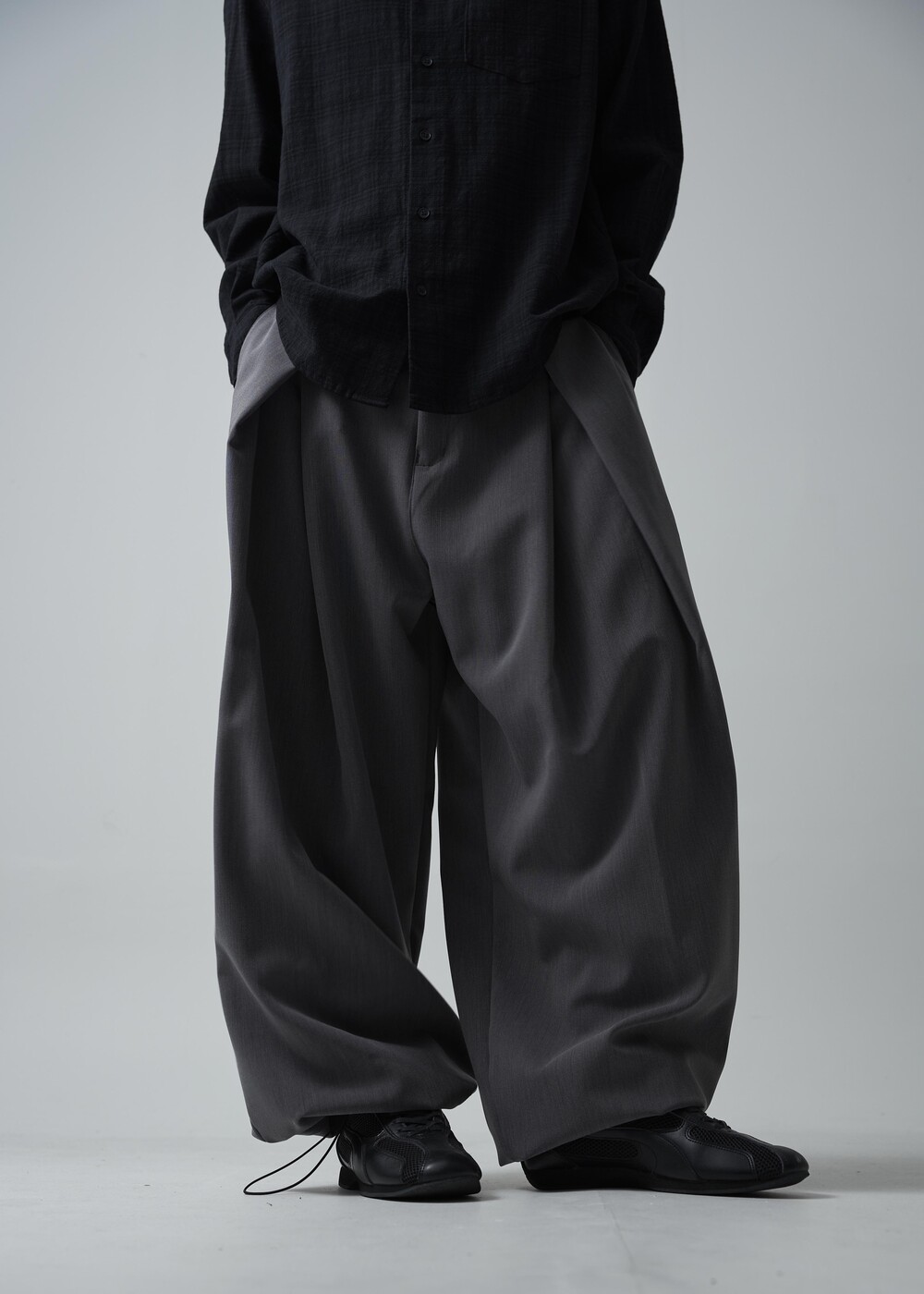 딥한 리버스 핀턱을 포인트로 구성되어 오버와이드한 실루엣이 매력적이며, 밑단 스트링을 통해 캐쥬얼함을 동시에 나타내주는 와이드 슬랙스 제품입니다.