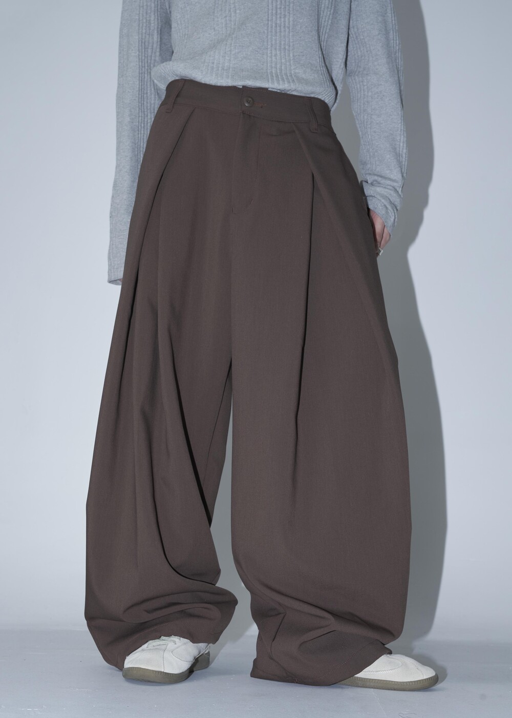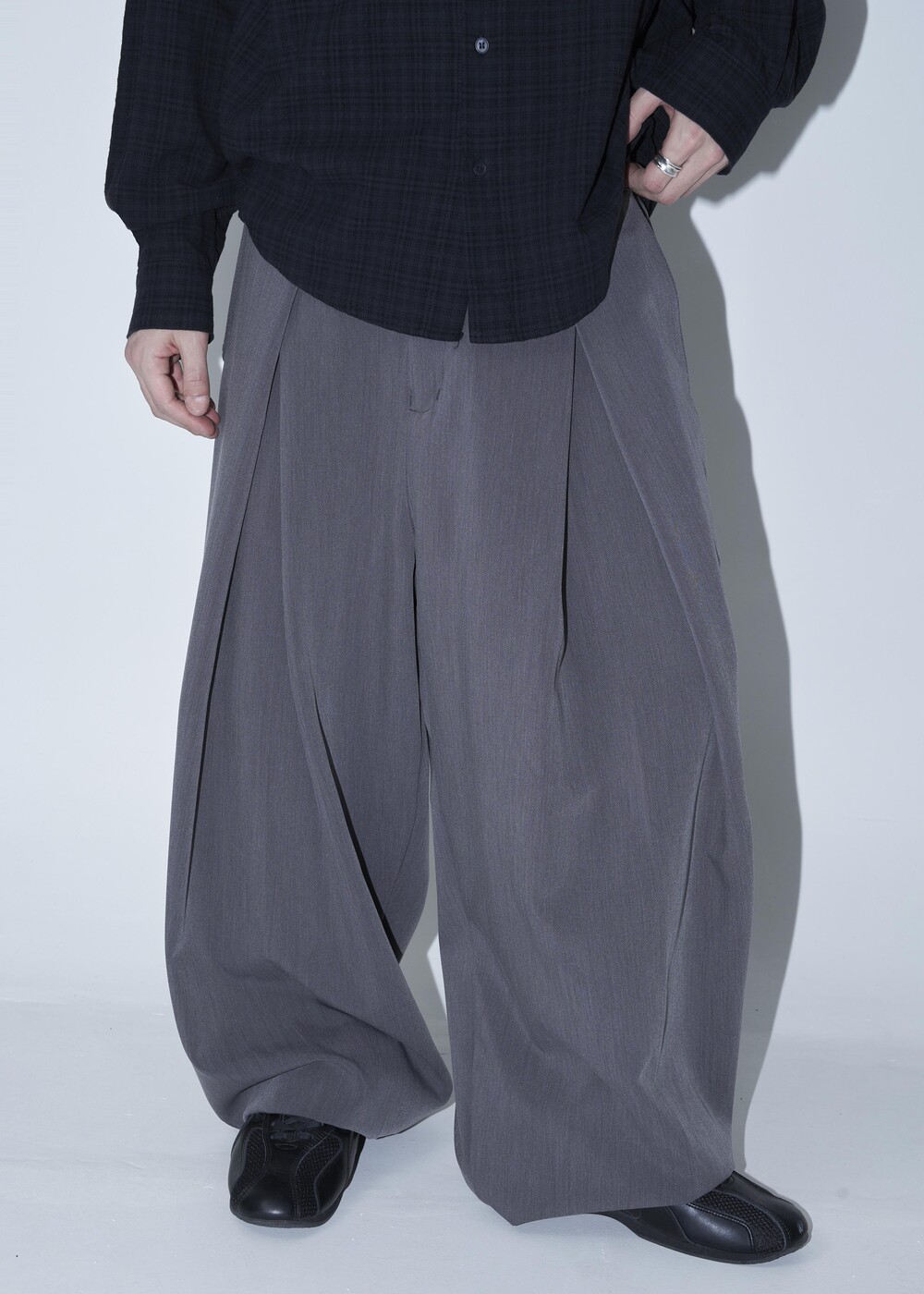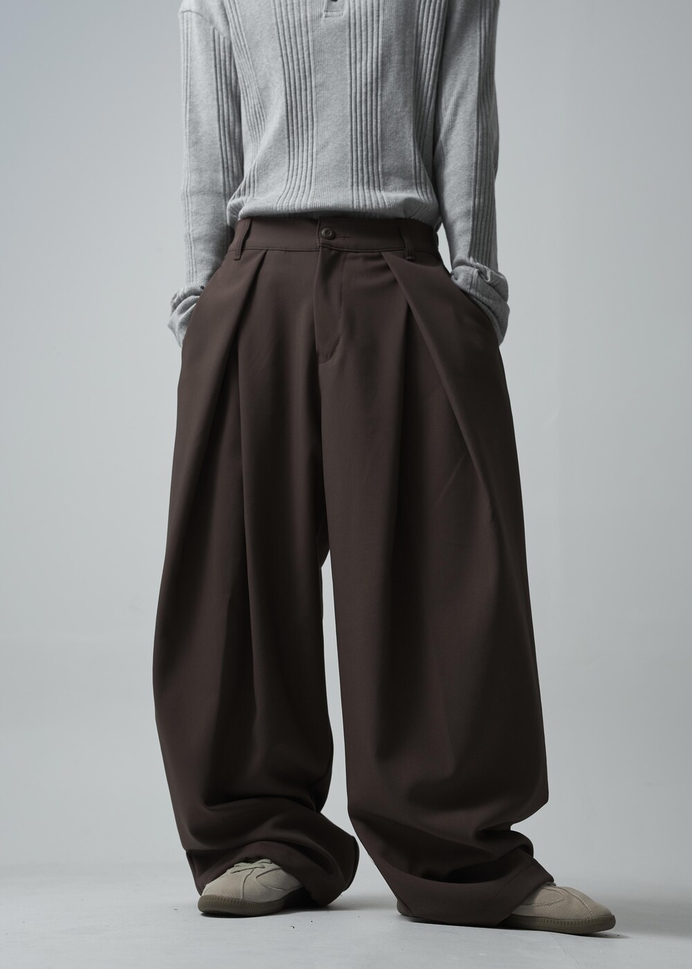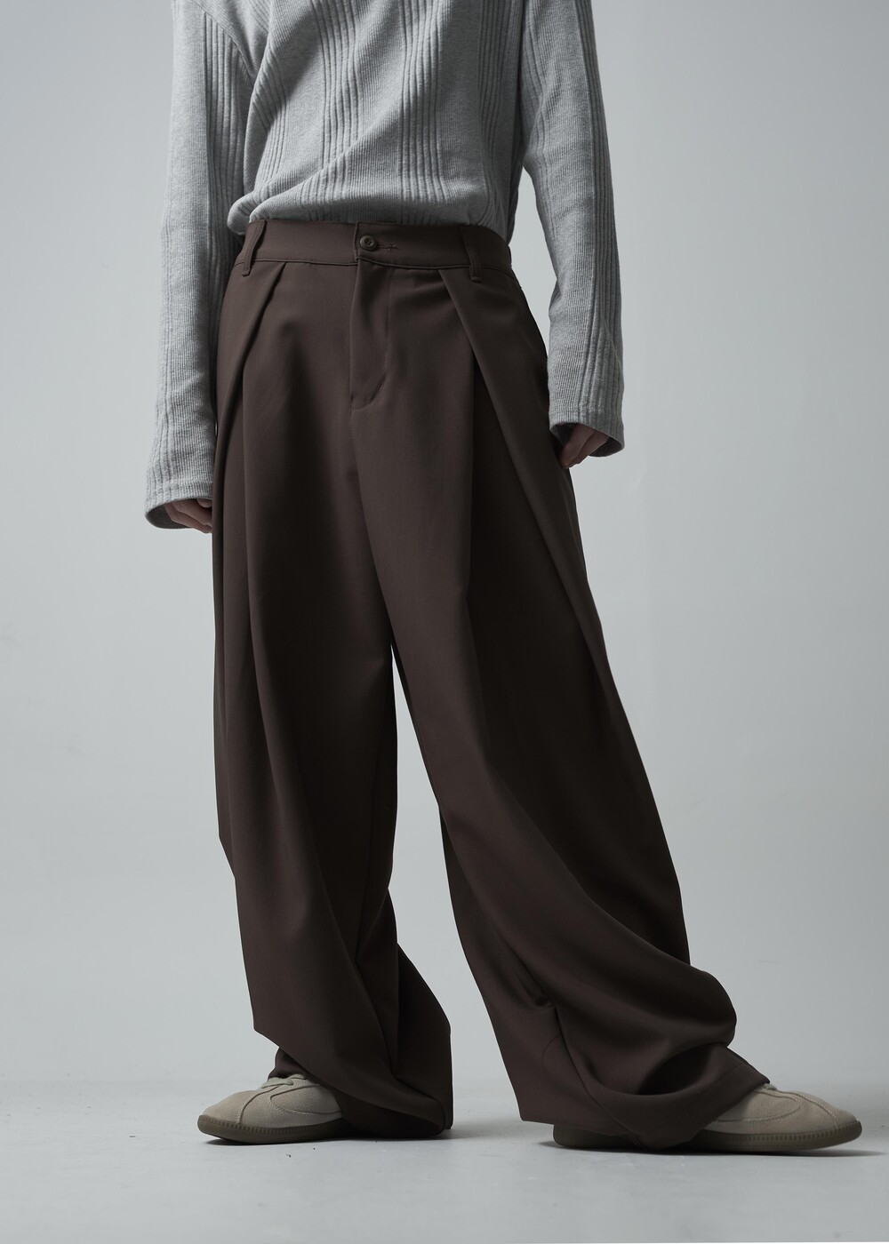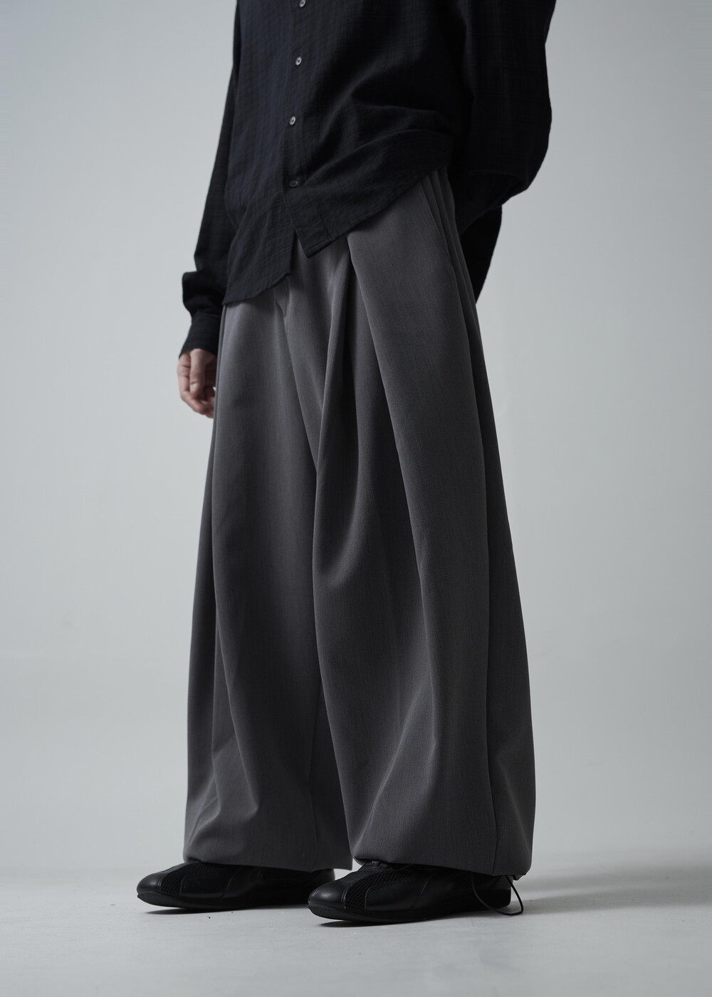 딥한 리버스 핀턱을 포인트로 구성되어 오버와이드한 실루엣이 매력적이며, 밑단 스트링을 통해 캐쥬얼함을 동시에 나타내주는 와이드 슬랙스 제품입니다.