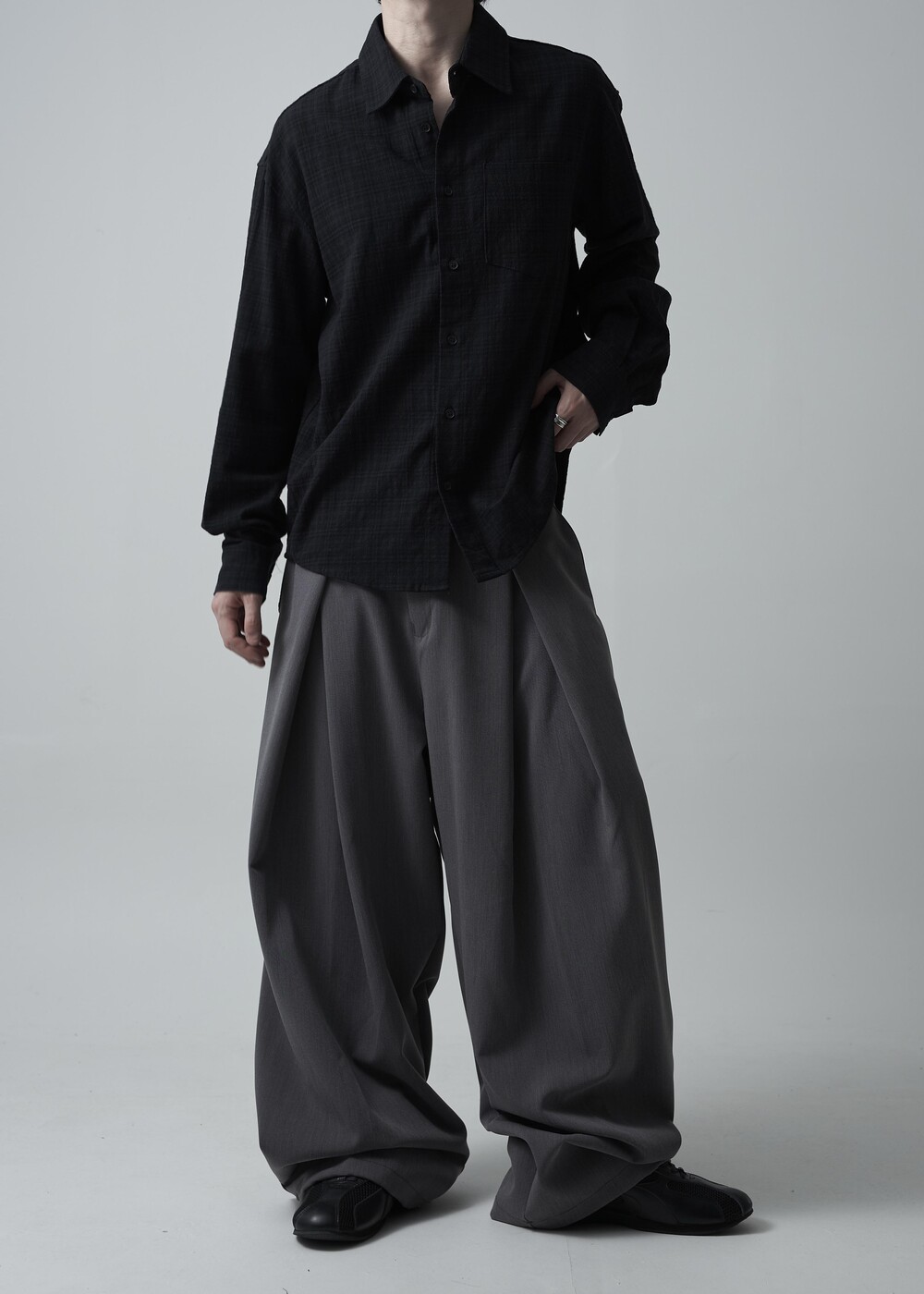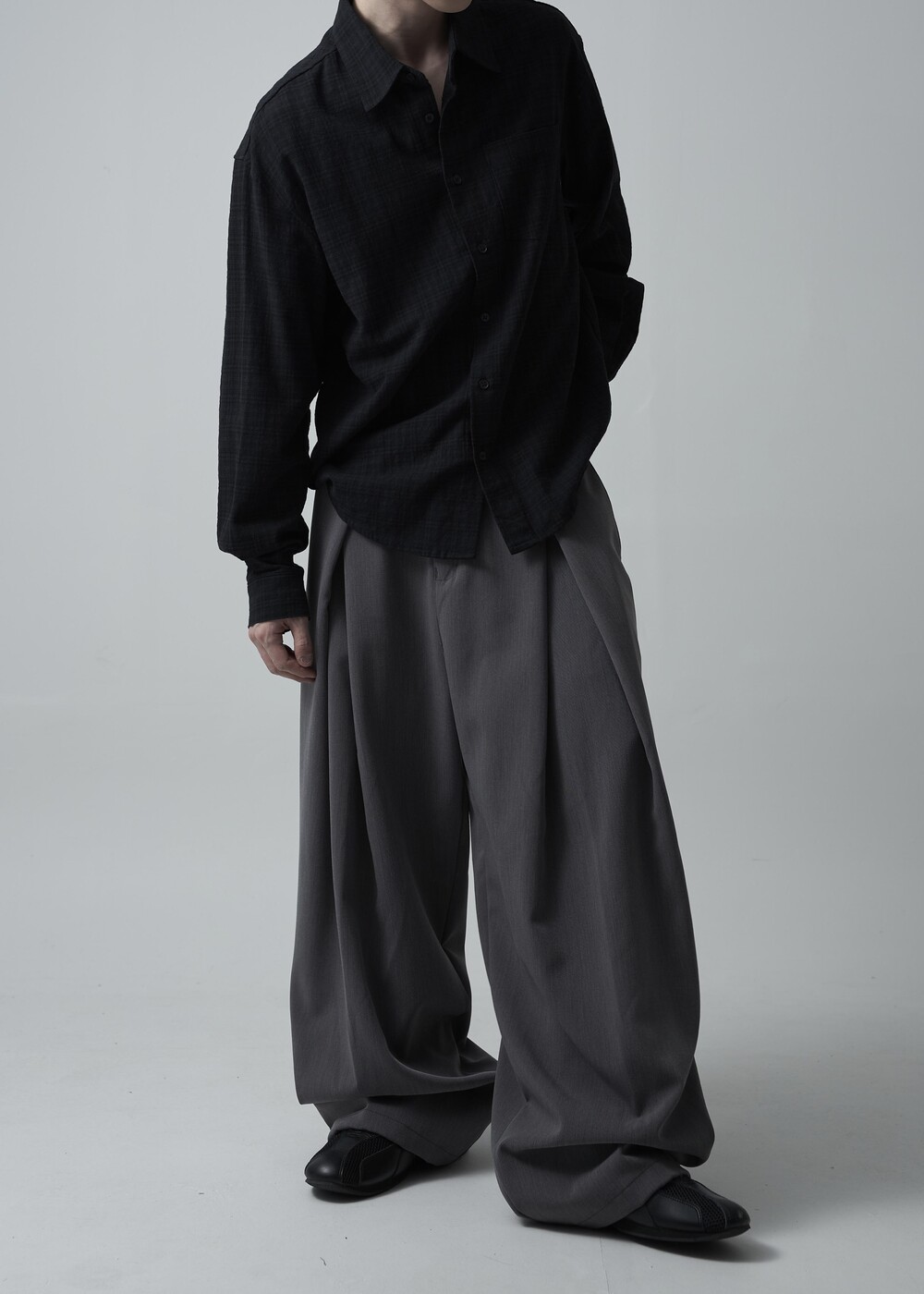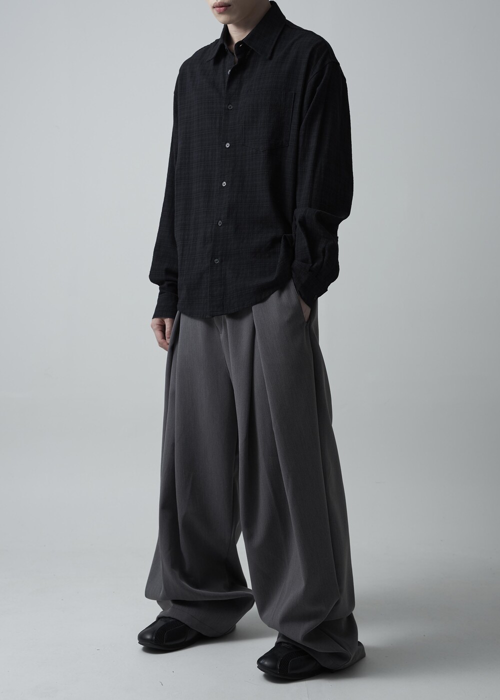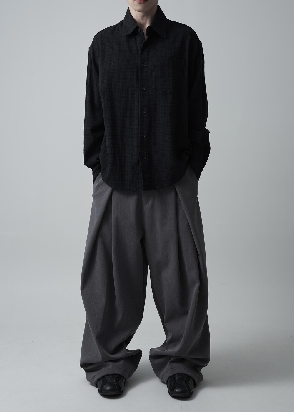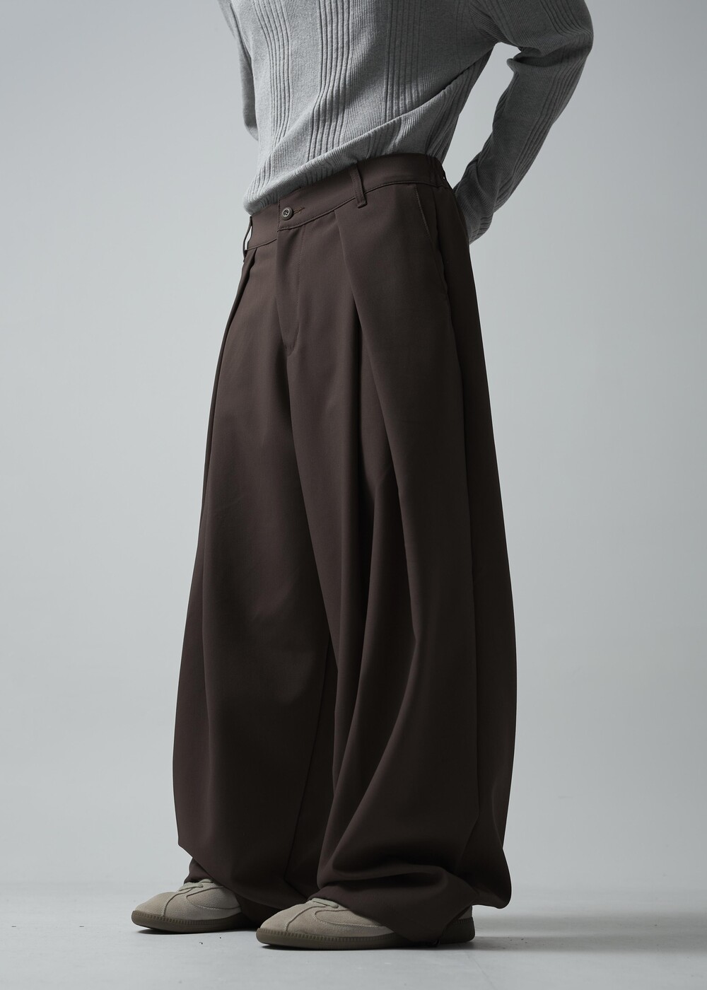 딥한 리버스 핀턱을 포인트로 구성되어 오버와이드한 실루엣이 매력적이며, 밑단 스트링을 통해 캐쥬얼함을 동시에 나타내주는 와이드 슬랙스 제품입니다.