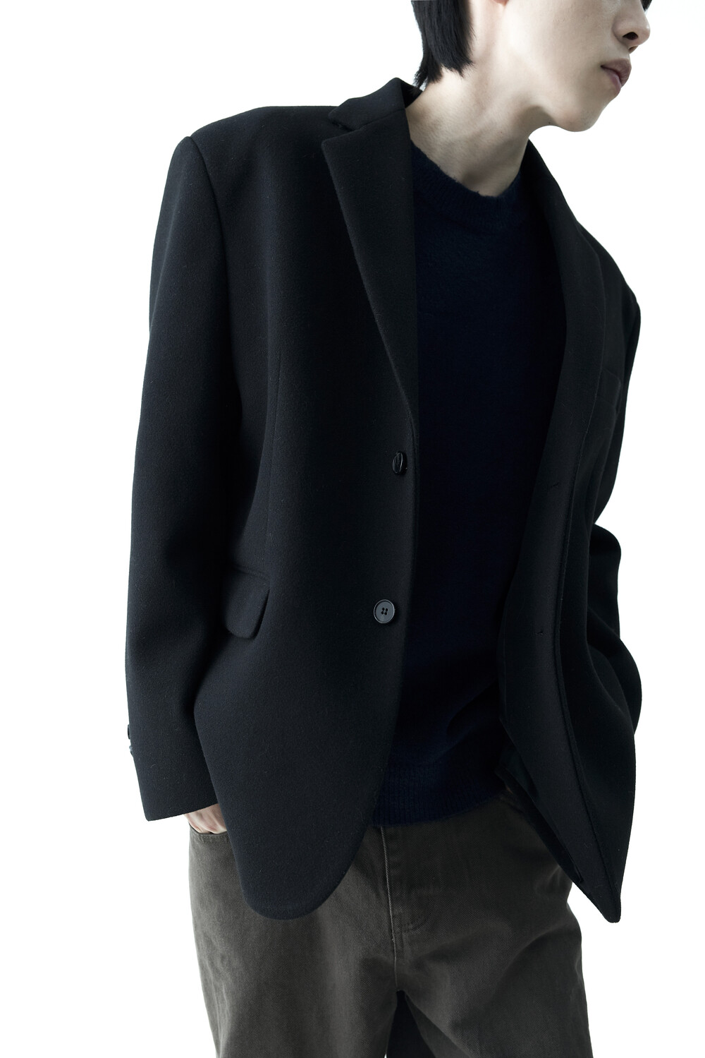 Single two button heavy wool jacket