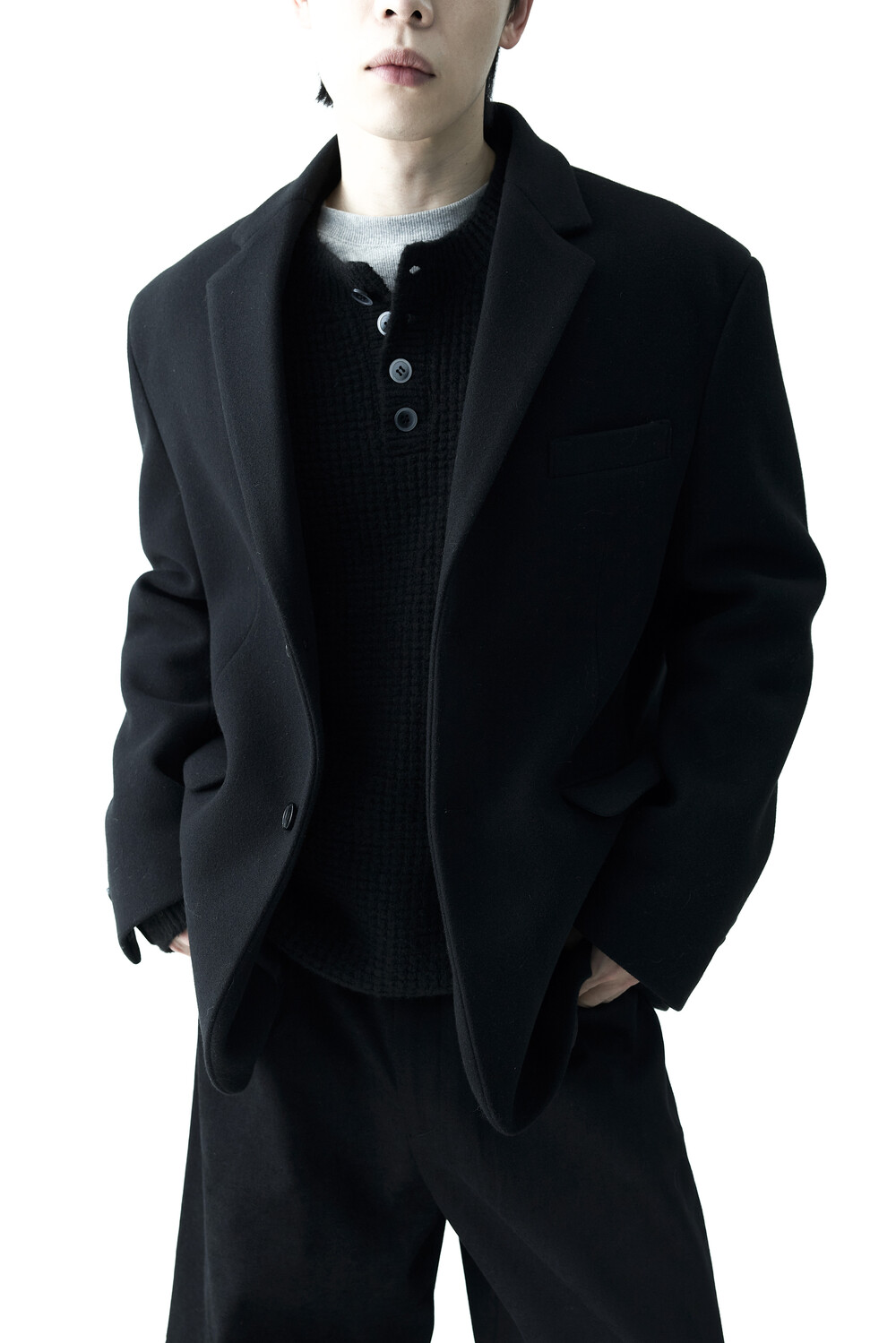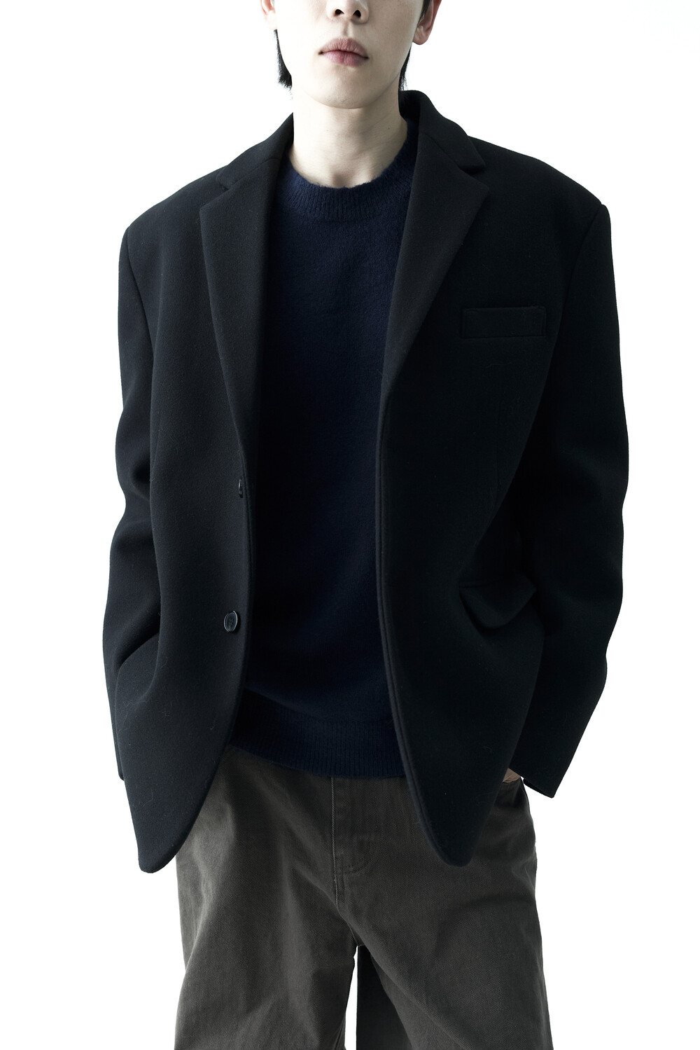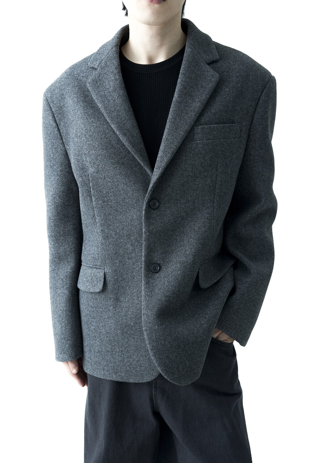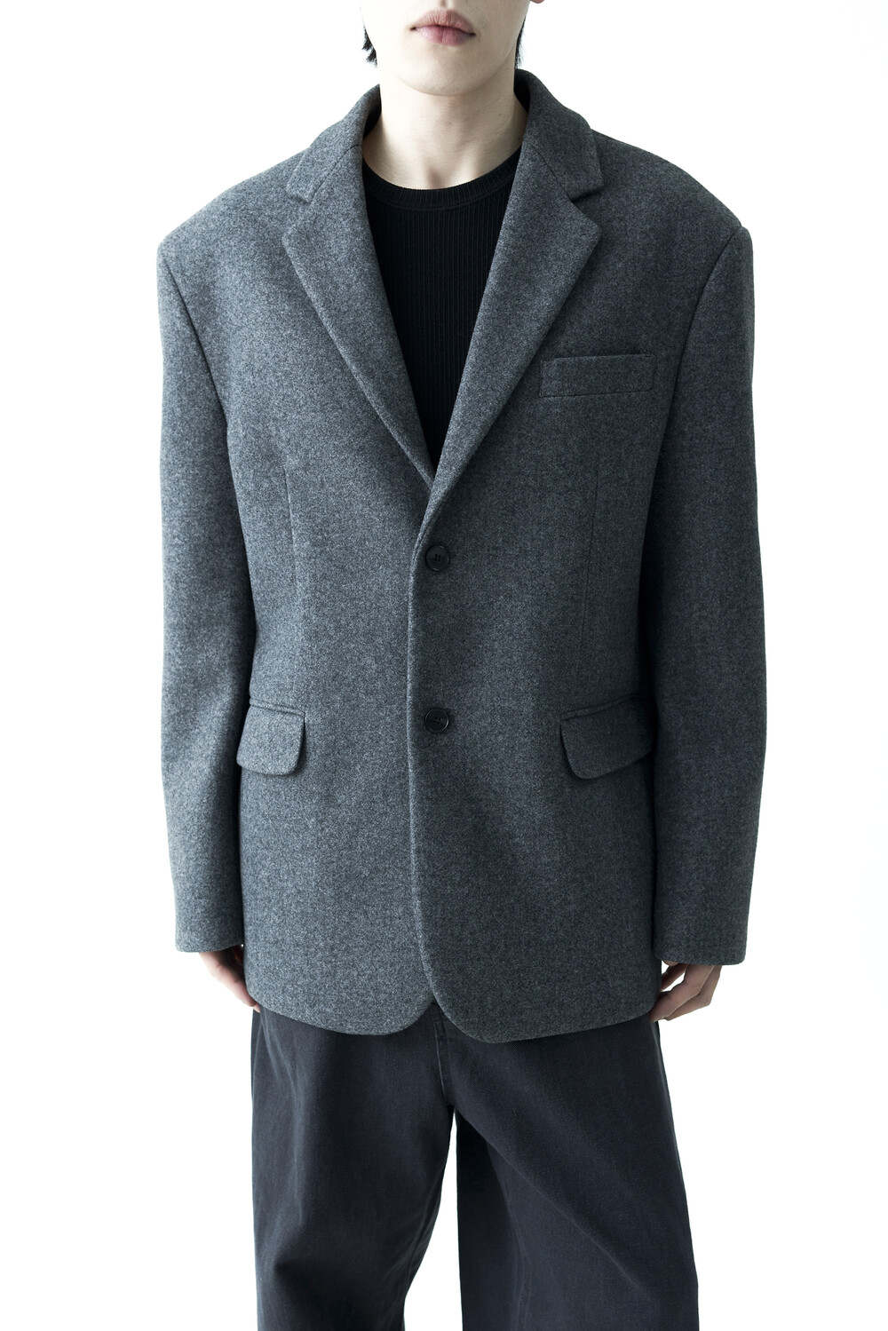 - 헤비한 울 소재감으로 구성되어 한겨울까지 착용하실 수 있는 싱글 울 자켓 제품입니다. 볼드한 터치감과 균형잡힌 오버핏감으로 더욱 깔끔한 아웃핏을 연출합니다. 클래식한 무드로 어느 코디에도 수월한 코디가 가능하며, 탄탄한 소재감으로 무너지지 않는 실루엣을 나타냅니다.