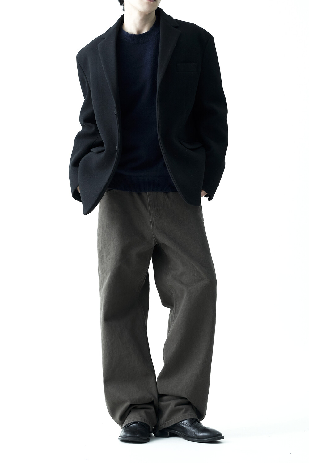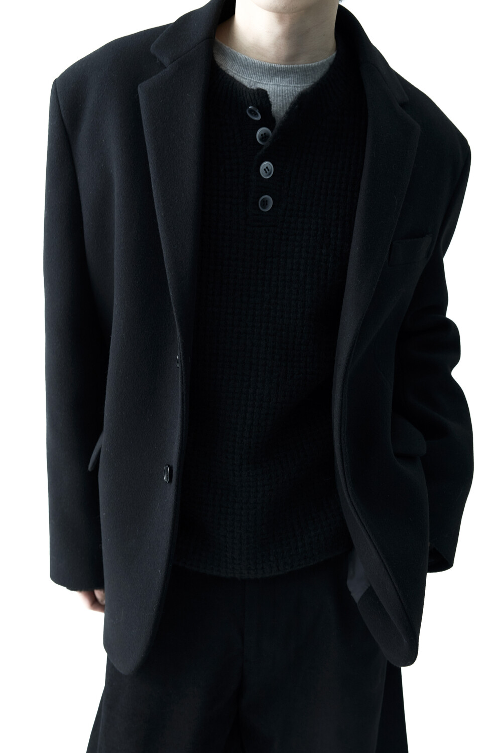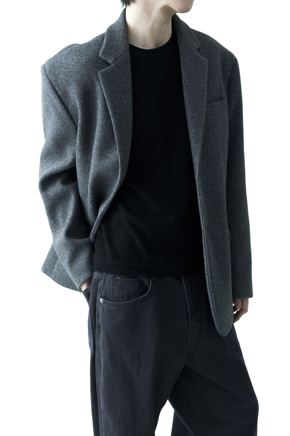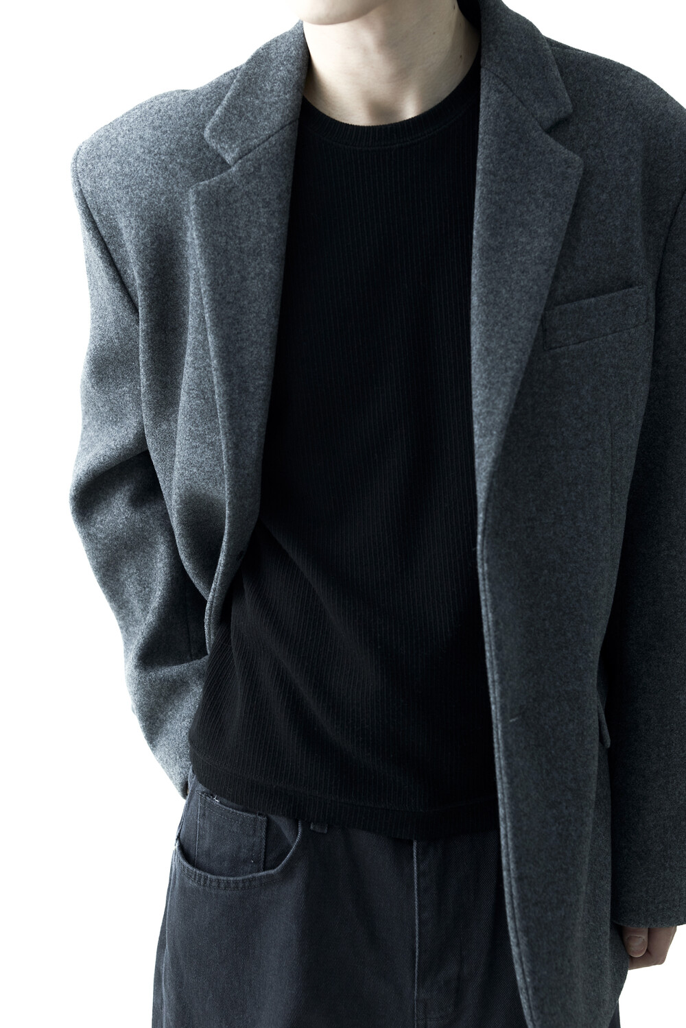 - 헤비한 울 소재감으로 구성되어 한겨울까지 착용하실 수 있는 싱글 울 자켓 제품입니다. 볼드한 터치감과 균형잡힌 오버핏감으로 더욱 깔끔한 아웃핏을 연출합니다. 클래식한 무드로 어느 코디에도 수월한 코디가 가능하며, 탄탄한 소재감으로 무너지지 않는 실루엣을 나타냅니다.