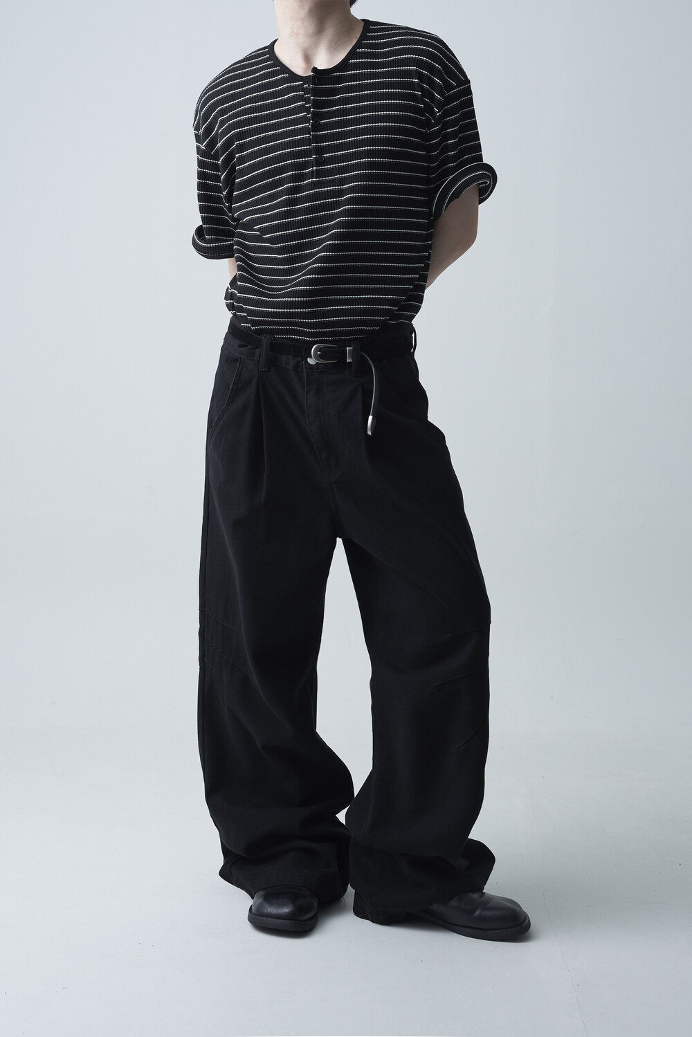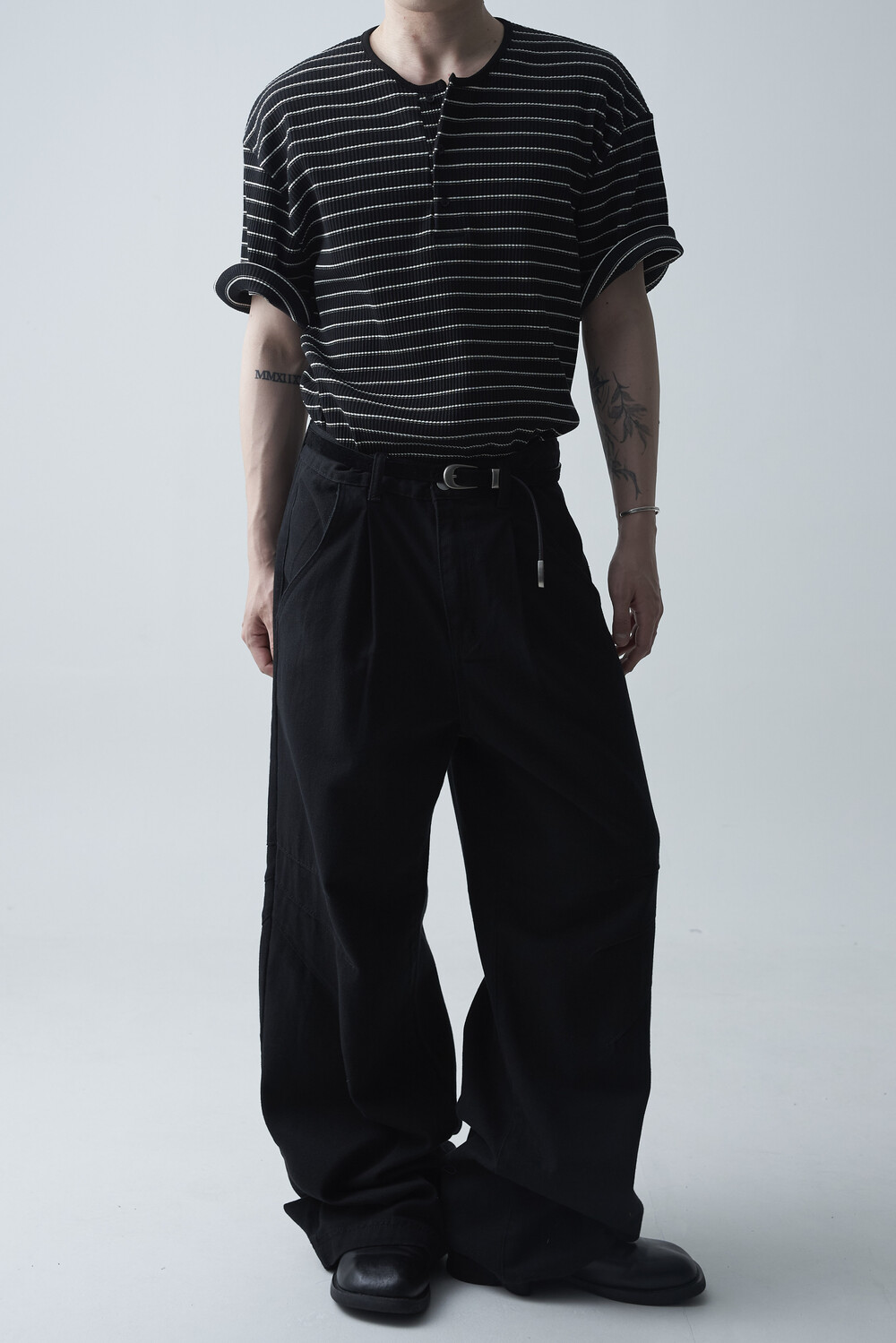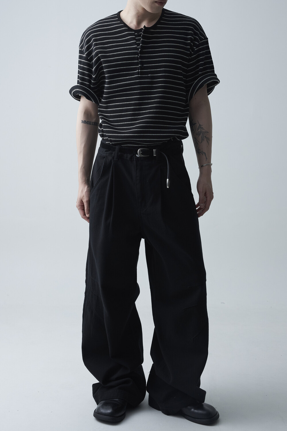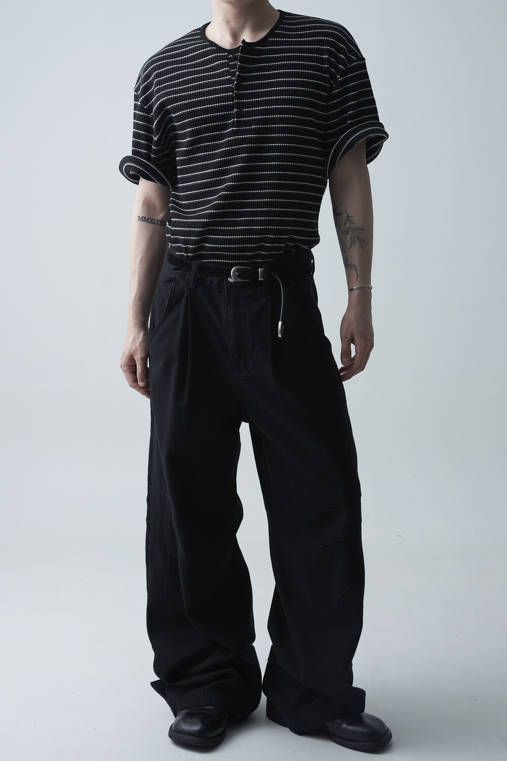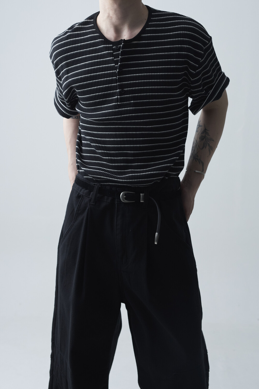 미니멀한 하프 헨리넥 티셔츠 제품으로 편안하면서도 모던한 스트라이프 패턴으로 깔끔한 아웃핏을 연출합니다.