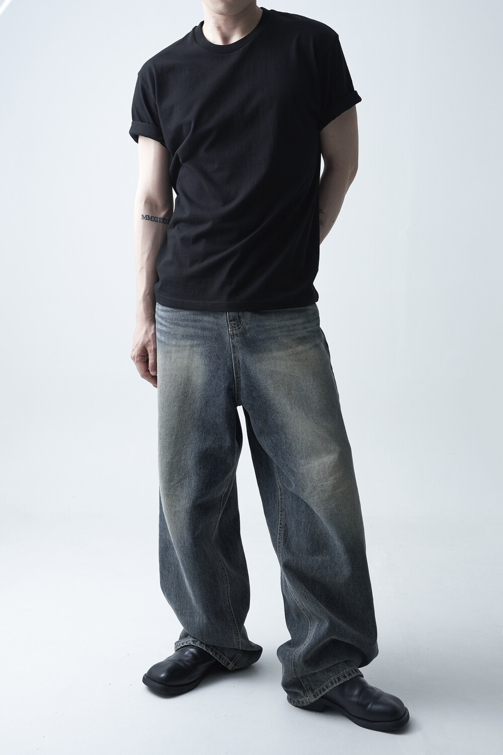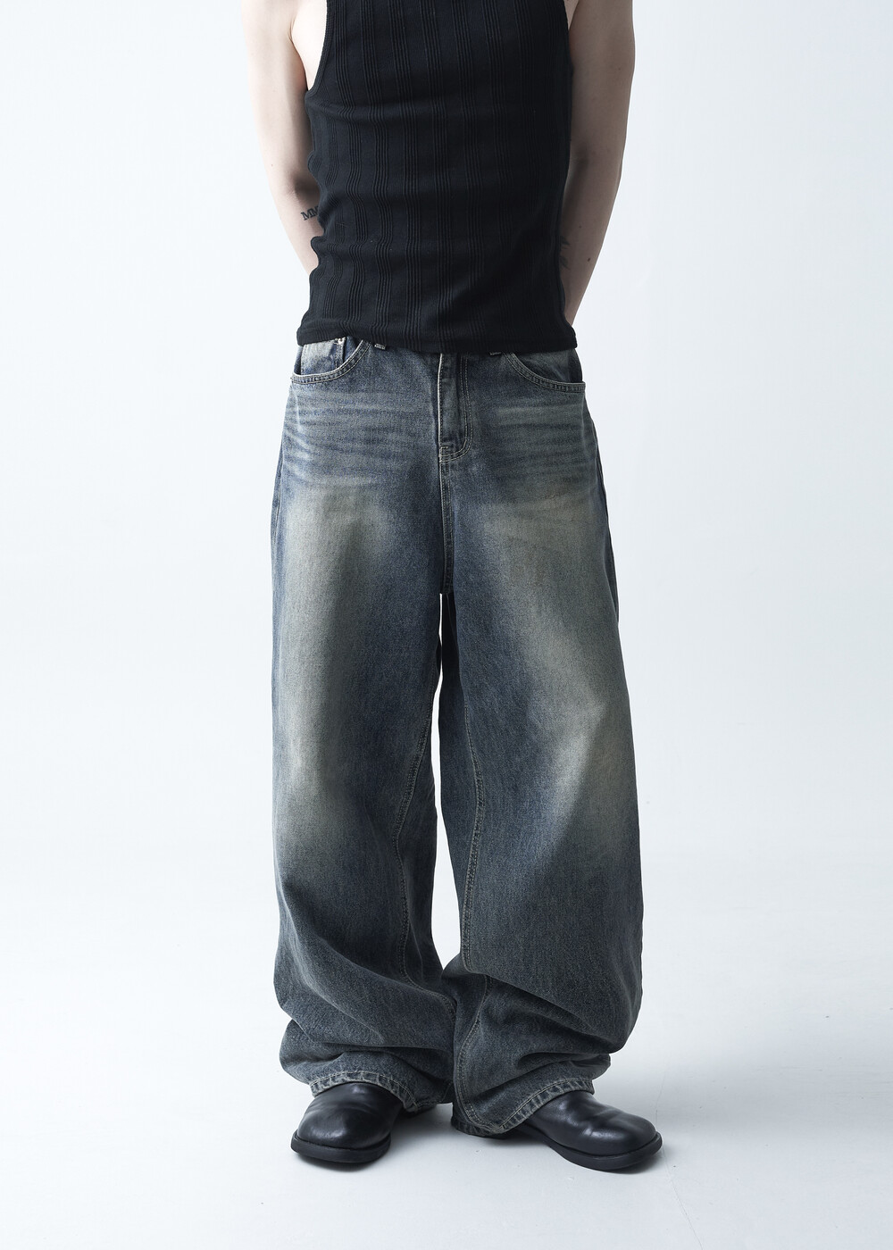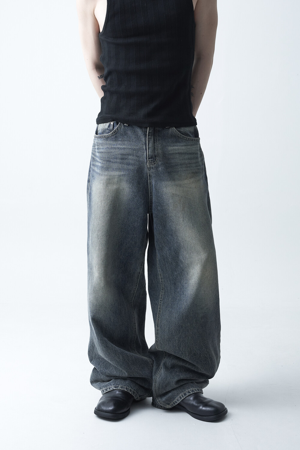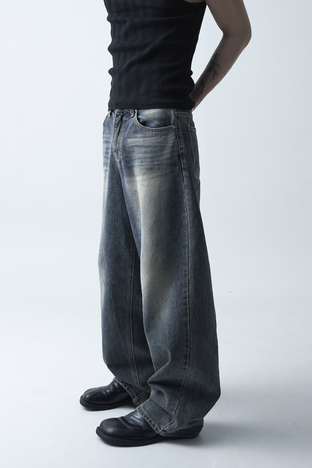 클래식한 롱와이드 핏의 정석을 보여주는 데님팬츠 적당한 데님팬츠 두께감으로 사계절 모두 착용 가능한 데일리 팬츠 제품입니다.
