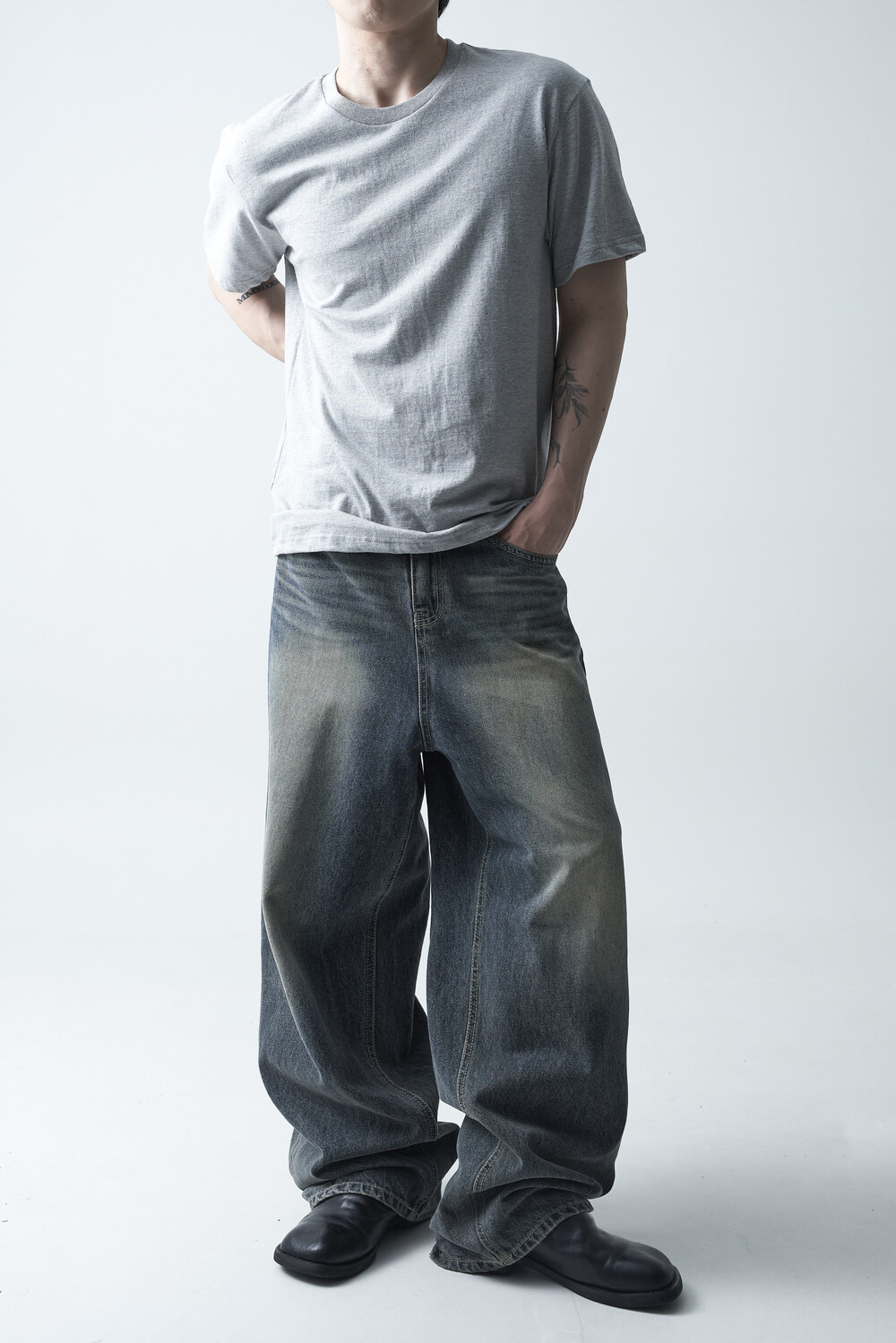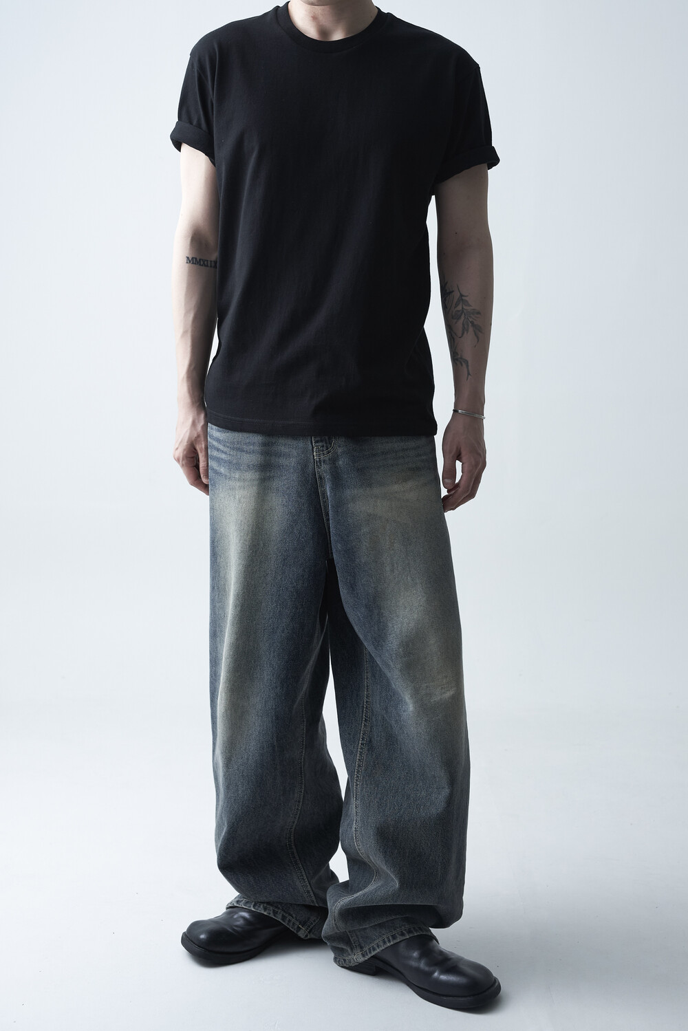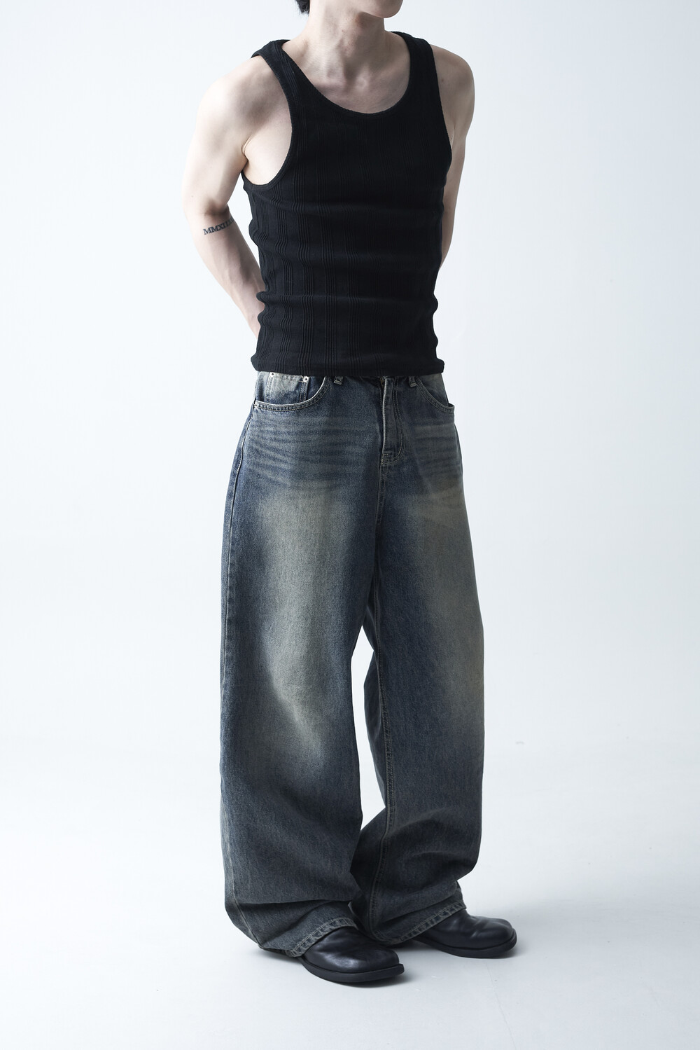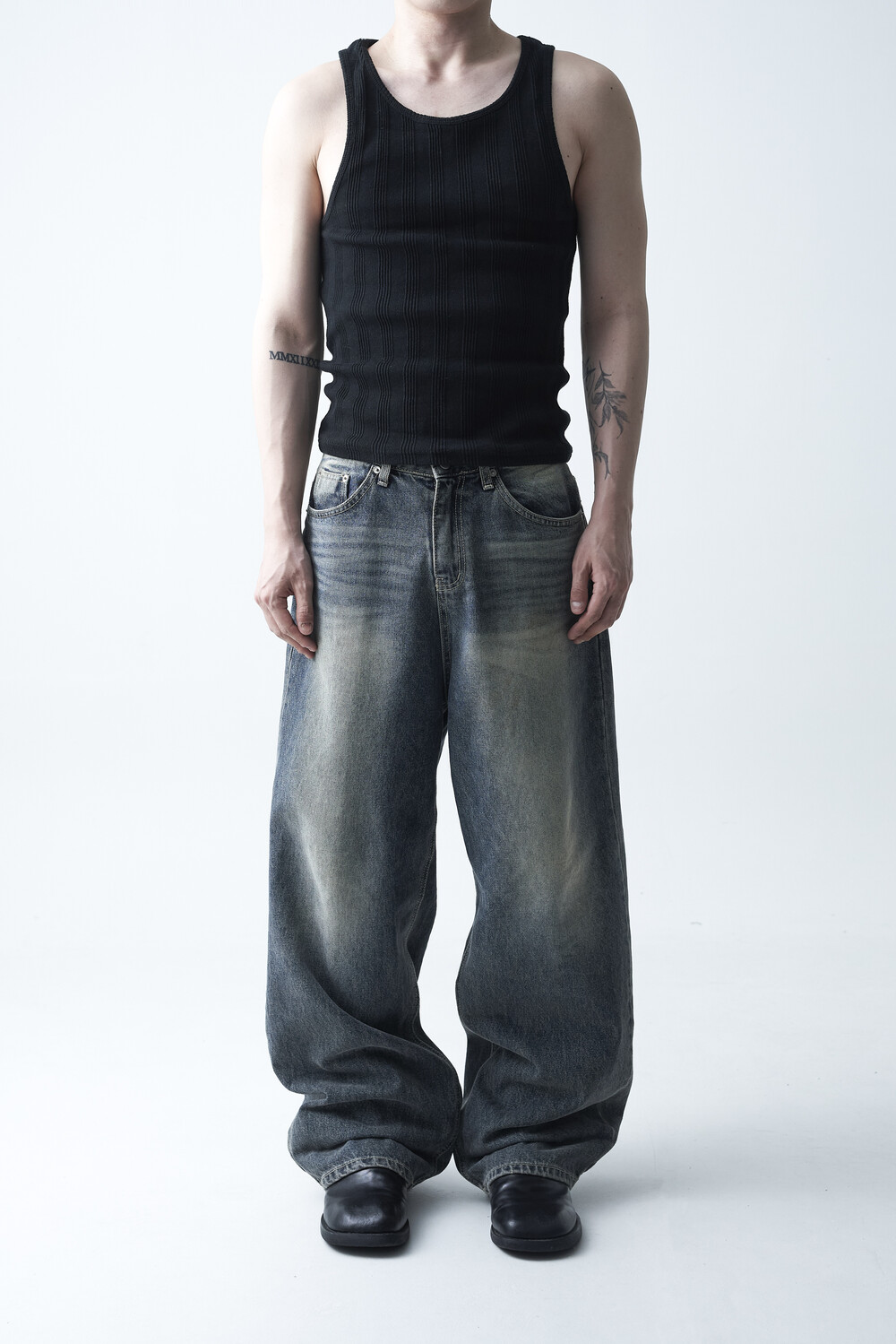 클래식한 롱와이드 핏의 정석을 보여주는 데님팬츠 적당한 데님팬츠 두께감으로 사계절 모두 착용 가능한 데일리 팬츠 제품입니다.