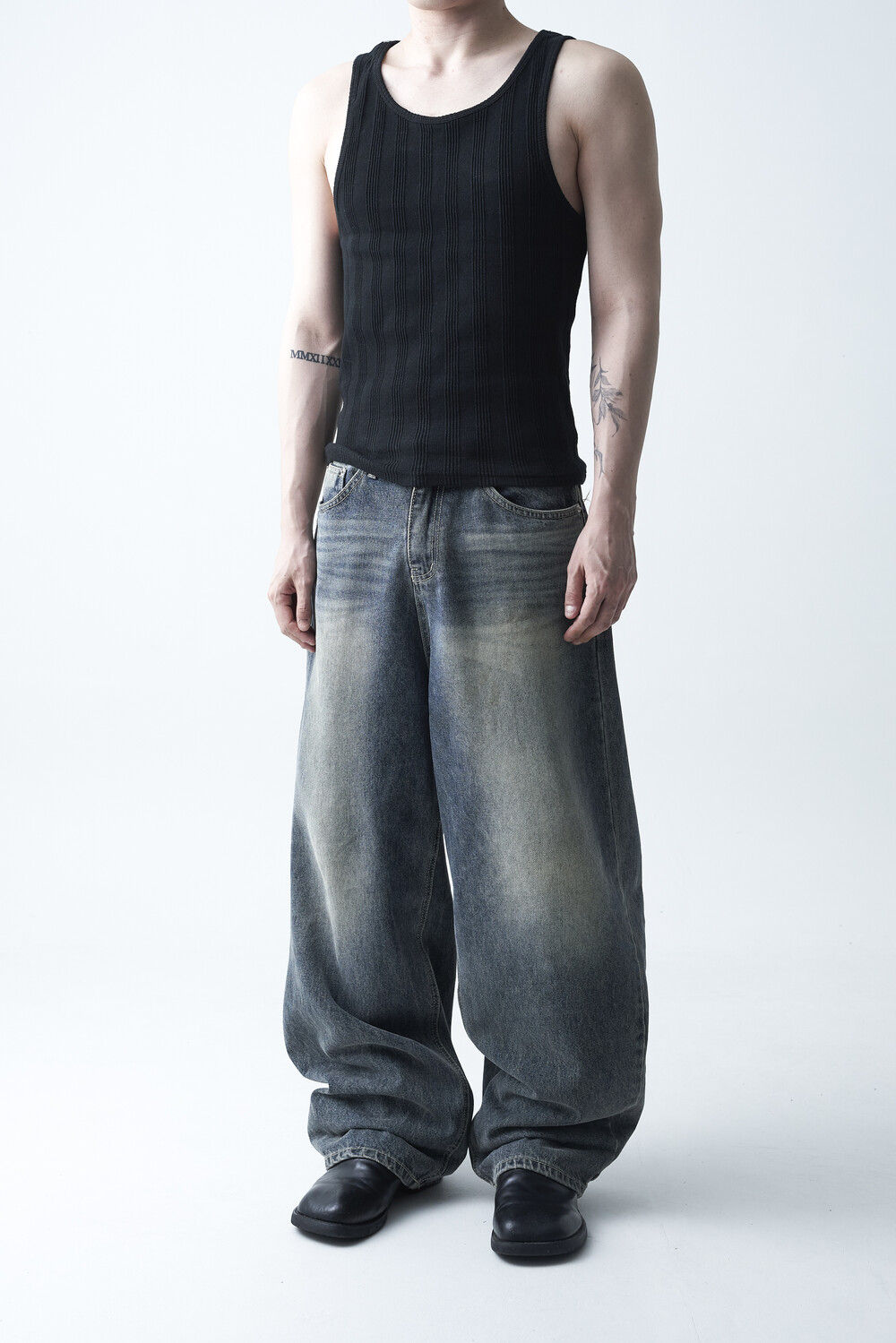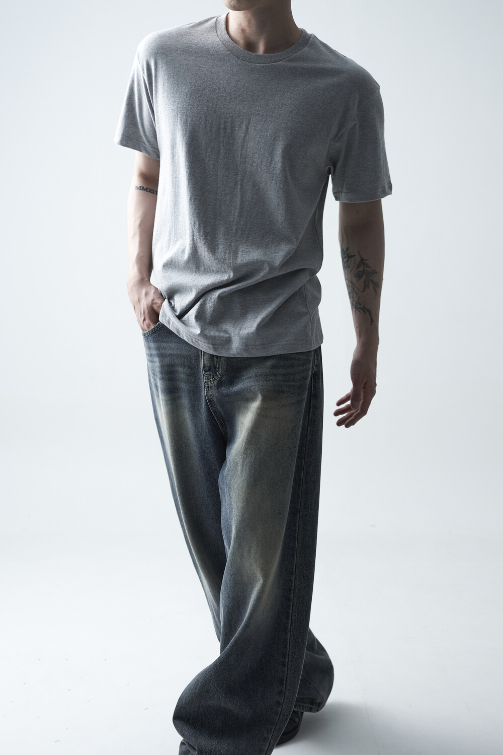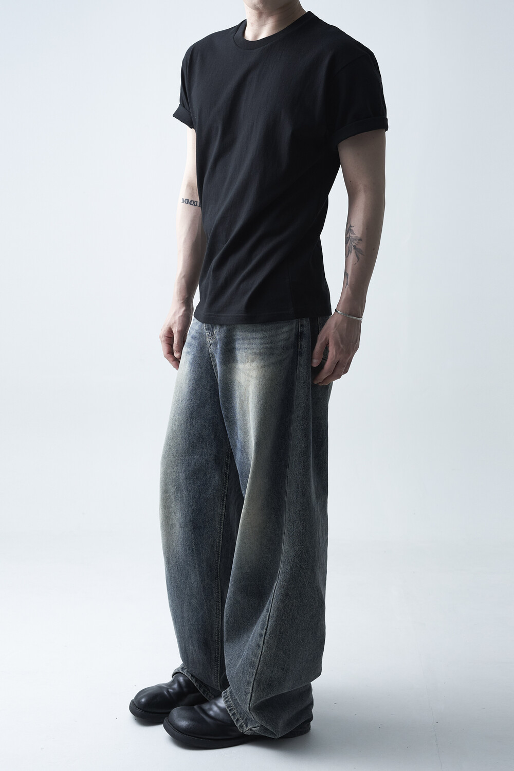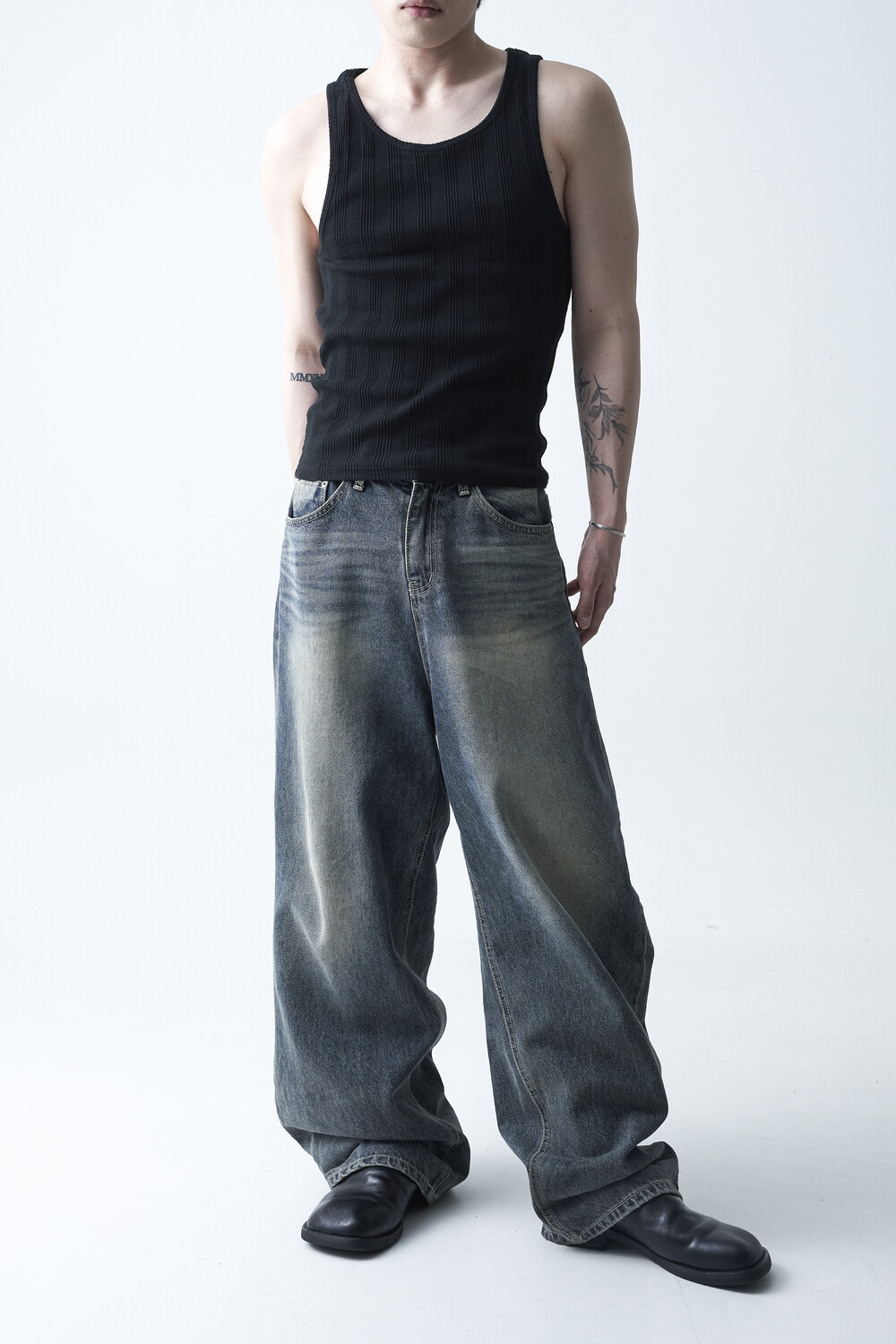 클래식한 롱와이드 핏의 정석을 보여주는 데님팬츠 적당한 데님팬츠 두께감으로 사계절 모두 착용 가능한 데일리 팬츠 제품입니다.