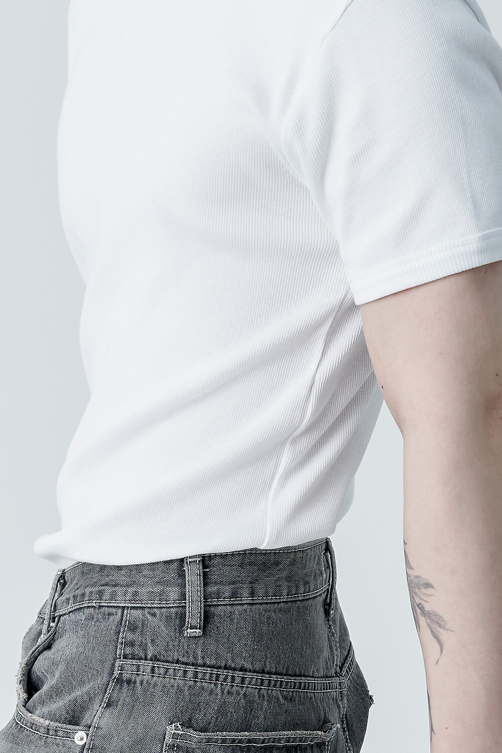 - 체형에 알맞게 슬림머슬핏으로 감싸주는 착용감