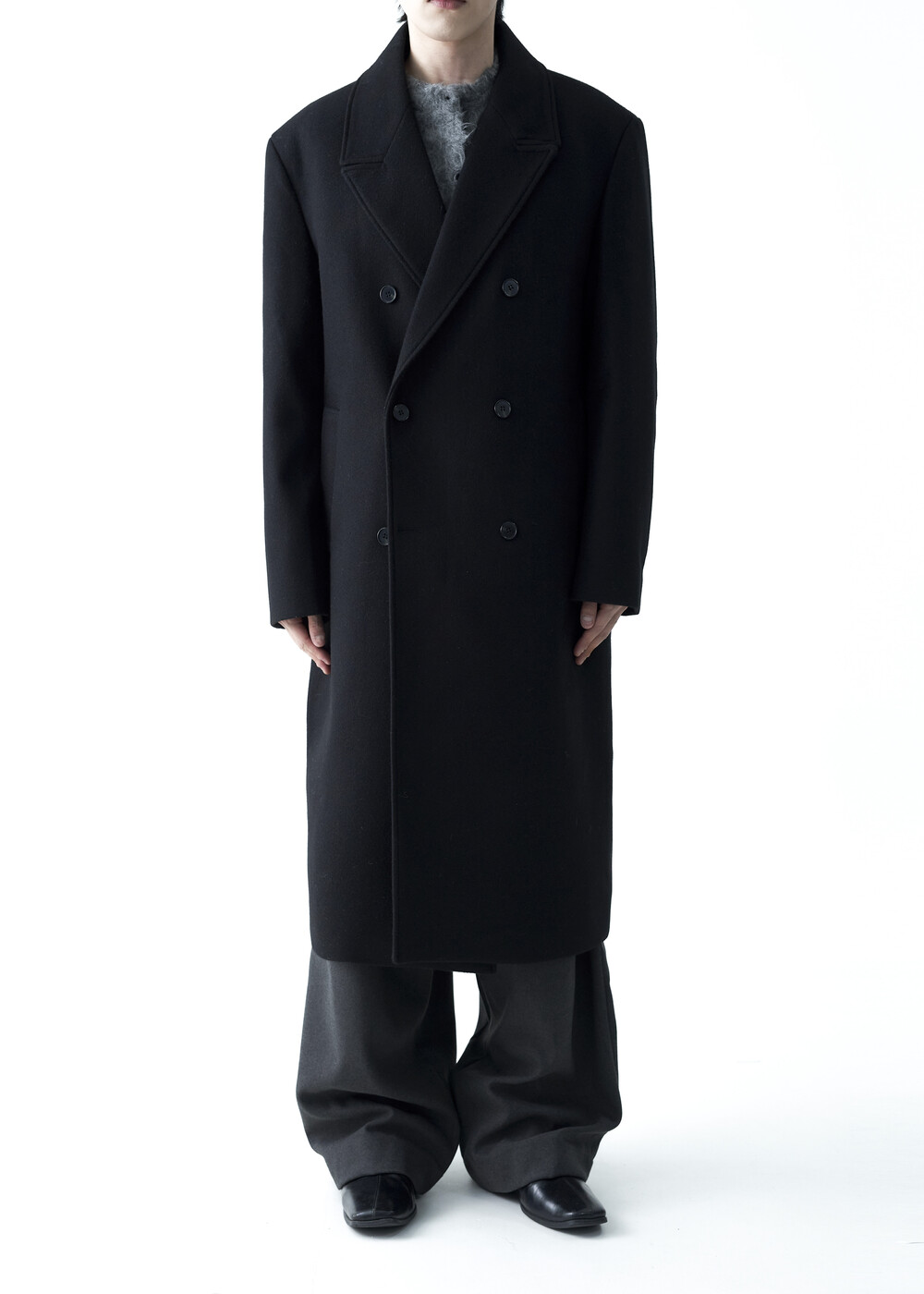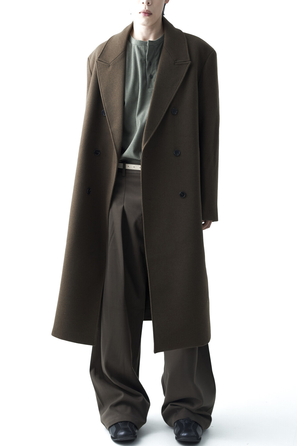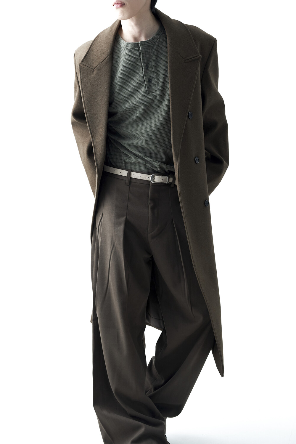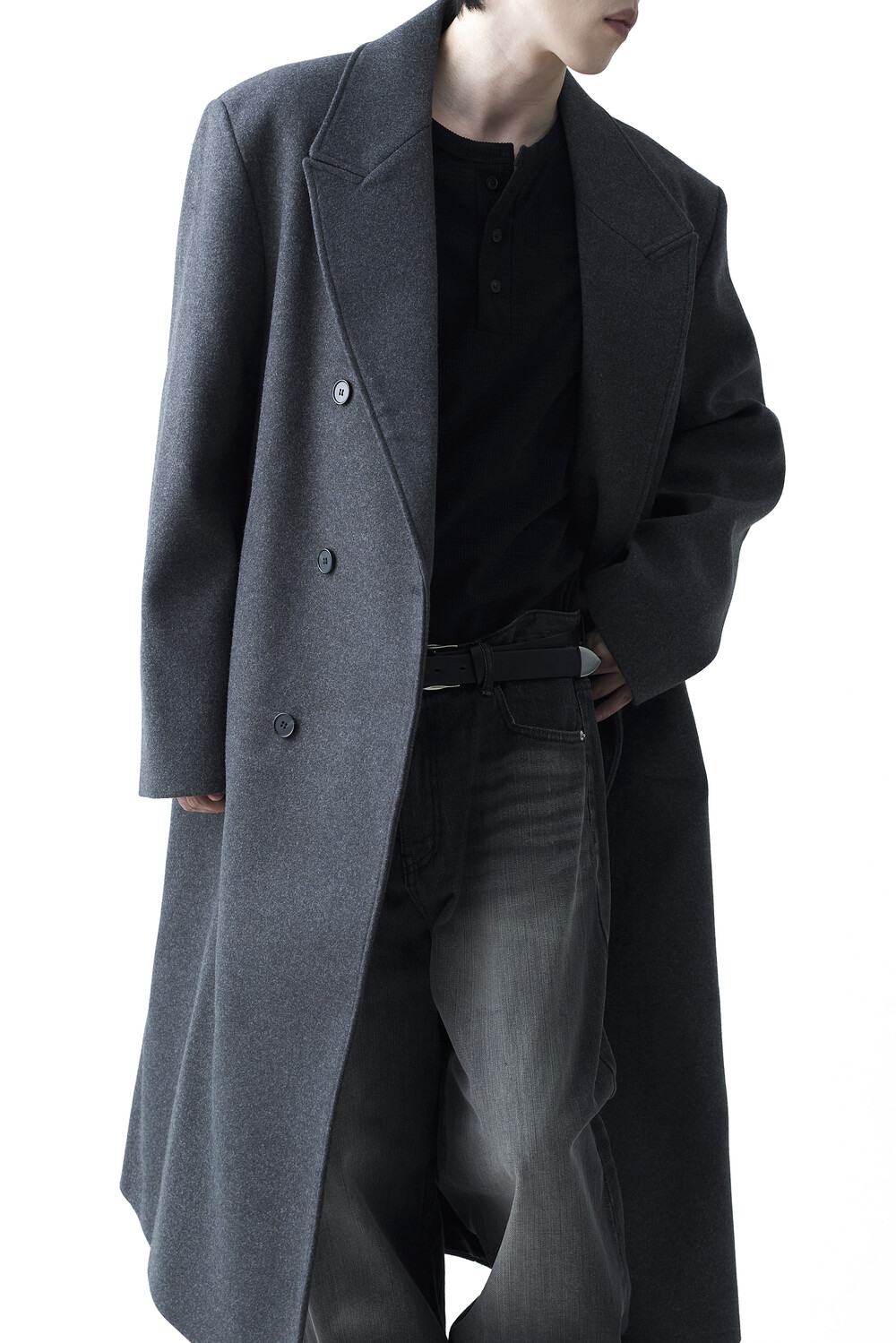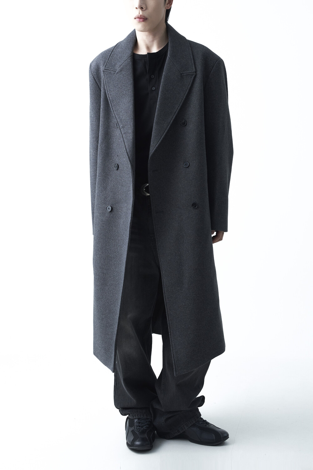 - 오버핏의 볼드한 라이닝이 가미된 울 더블 코트 제품입니다. 카라라인의 이중 라이닝이 매력적으로 접목된 디테일 코트 제품으로 와이드한 숄더라인이 매력적입니다.