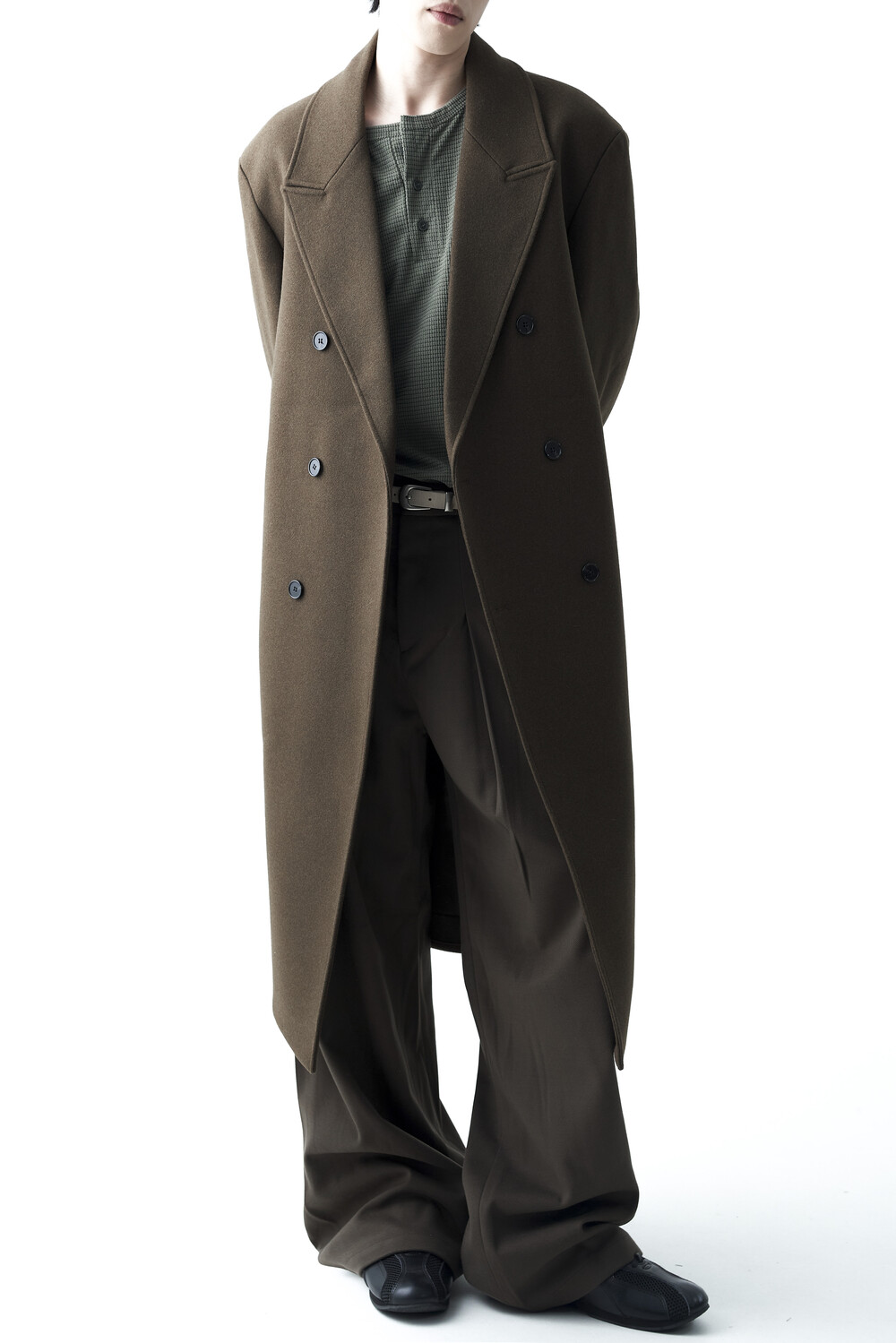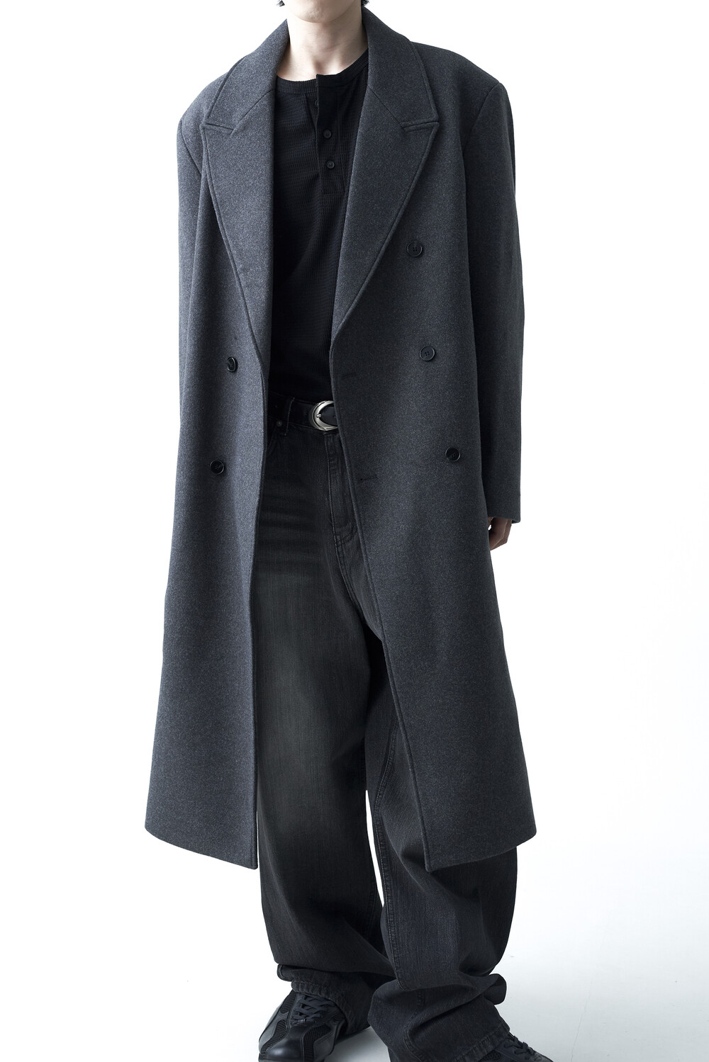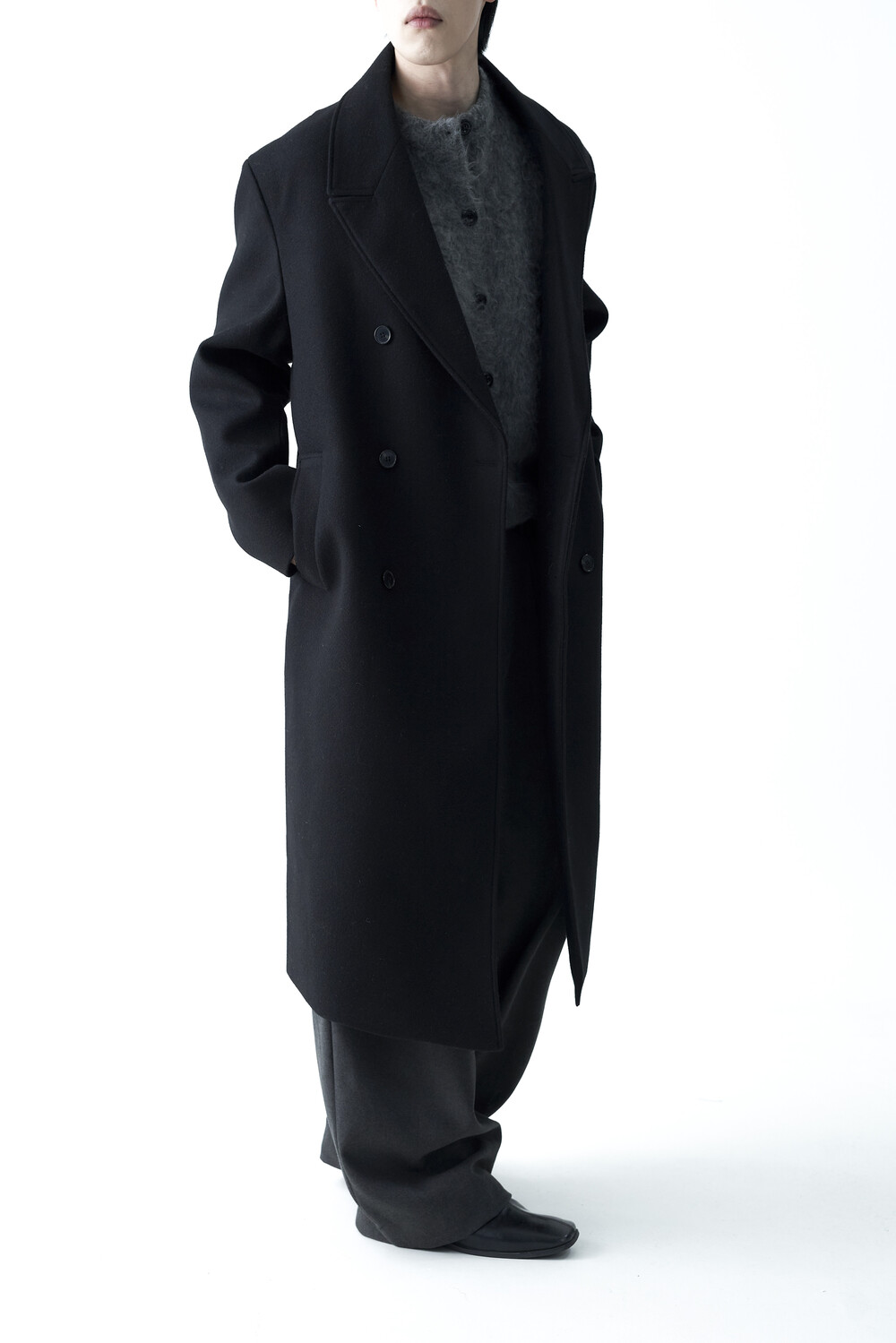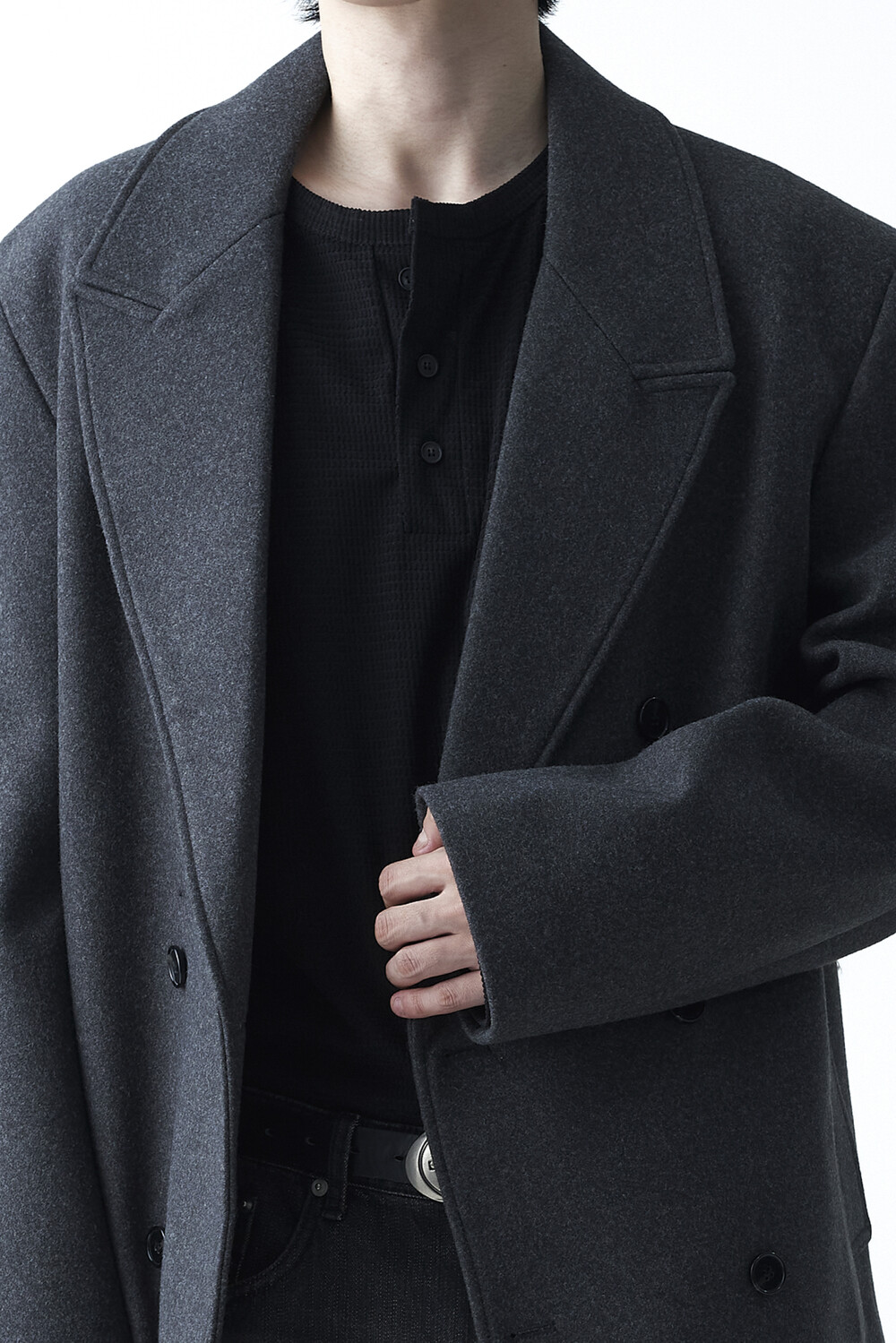 - 오버핏의 볼드한 라이닝이 가미된 울 더블 코트 제품입니다. 카라라인의 이중 라이닝이 매력적으로 접목된 디테일 코트 제품으로 와이드한 숄더라인이 매력적입니다.