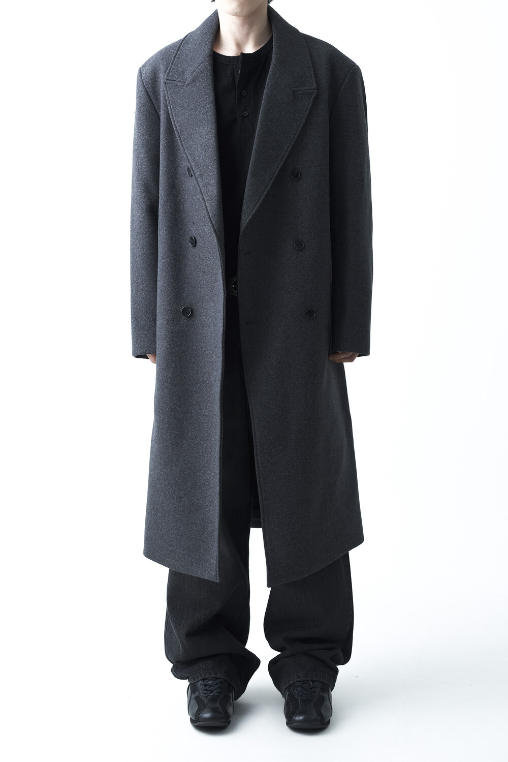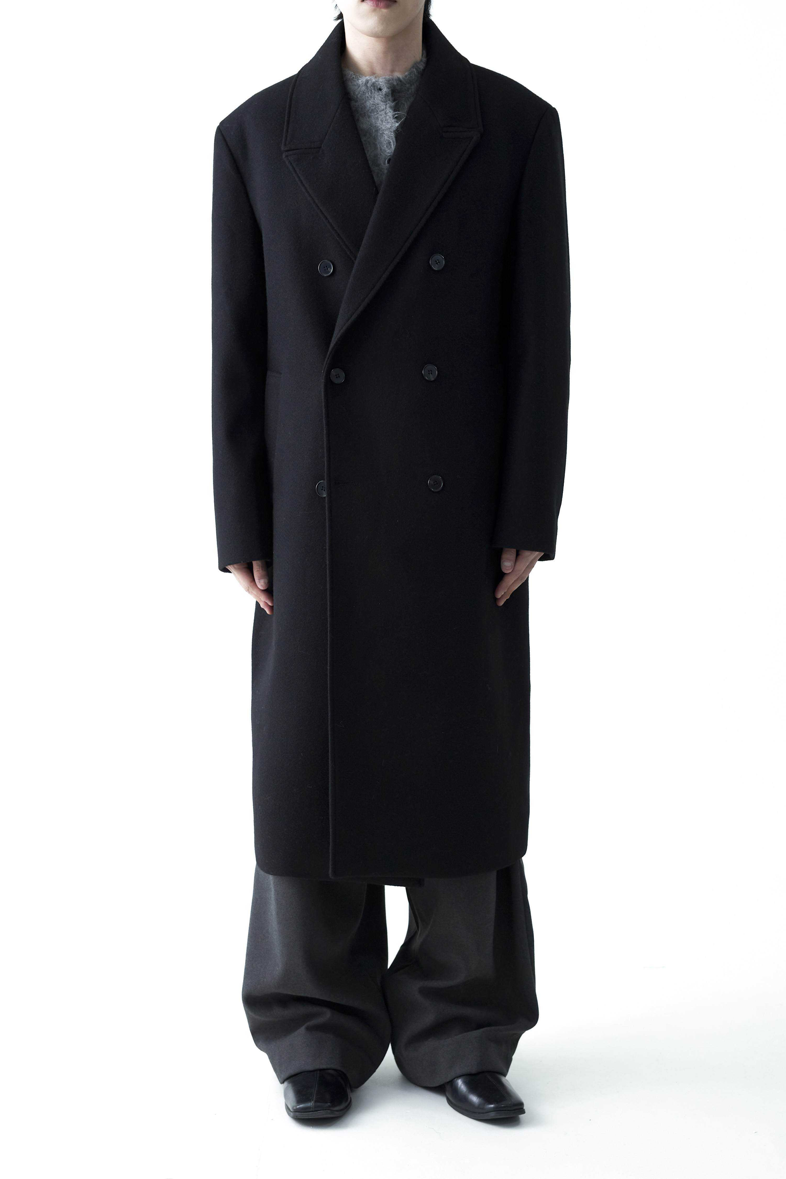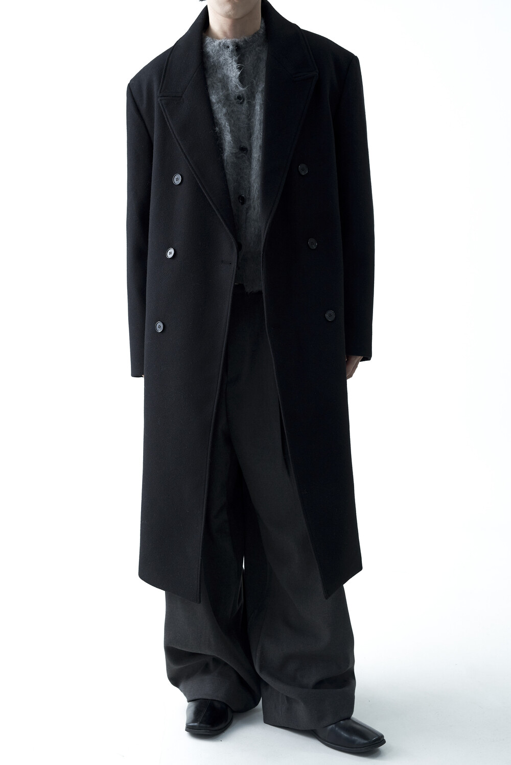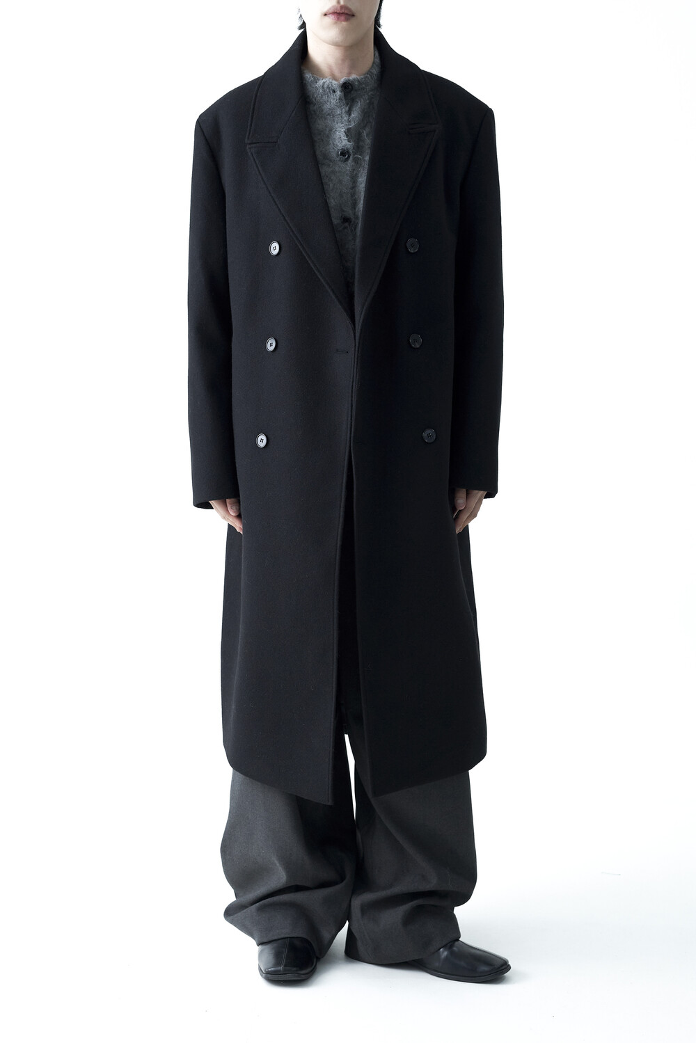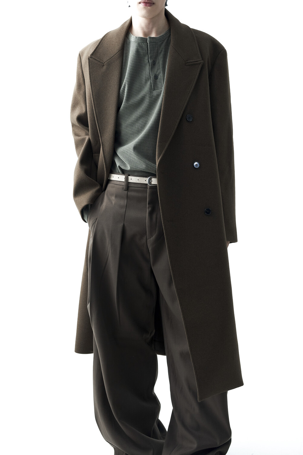 - 오버핏의 볼드한 라이닝이 가미된 울 더블 코트 제품입니다. 카라라인의 이중 라이닝이 매력적으로 접목된 디테일 코트 제품으로 와이드한 숄더라인이 매력적입니다.