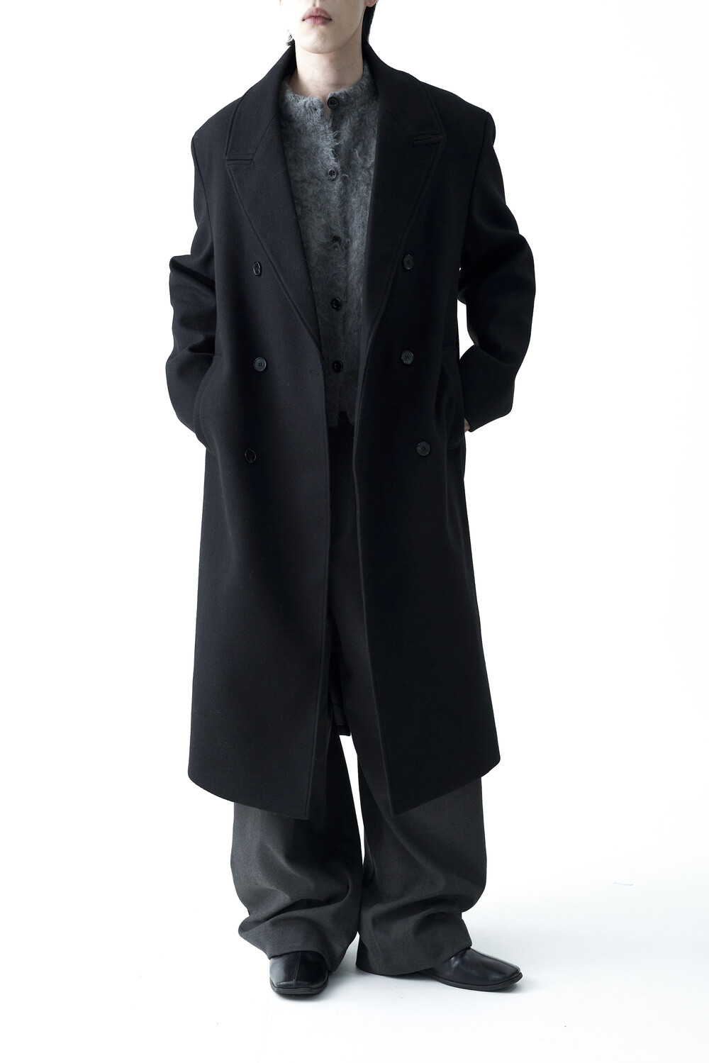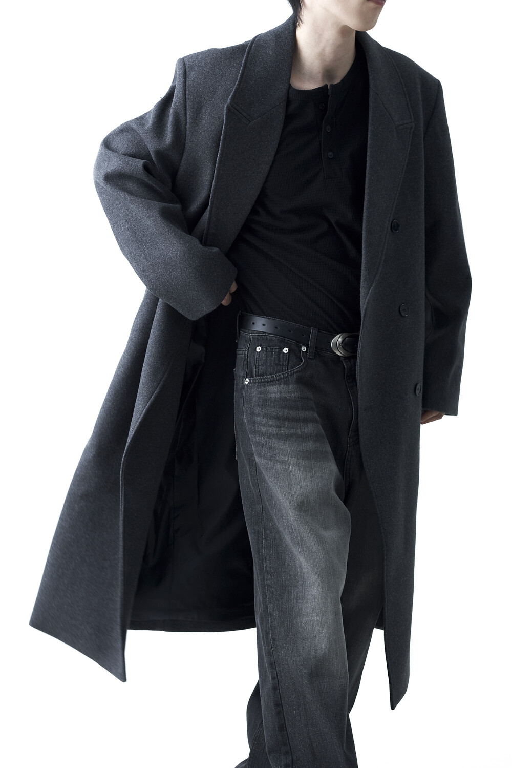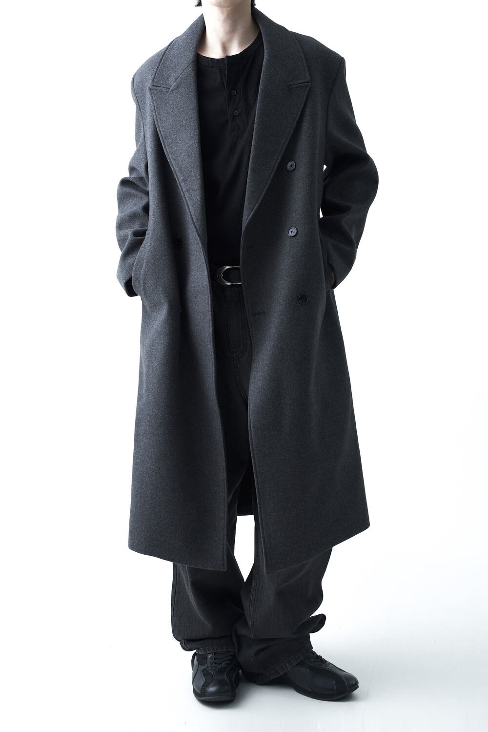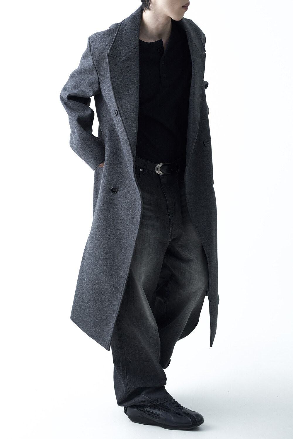 - 오버핏의 볼드한 라이닝이 가미된 울 더블 코트 제품입니다. 카라라인의 이중 라이닝이 매력적으로 접목된 디테일 코트 제품으로 와이드한 숄더라인이 매력적입니다.