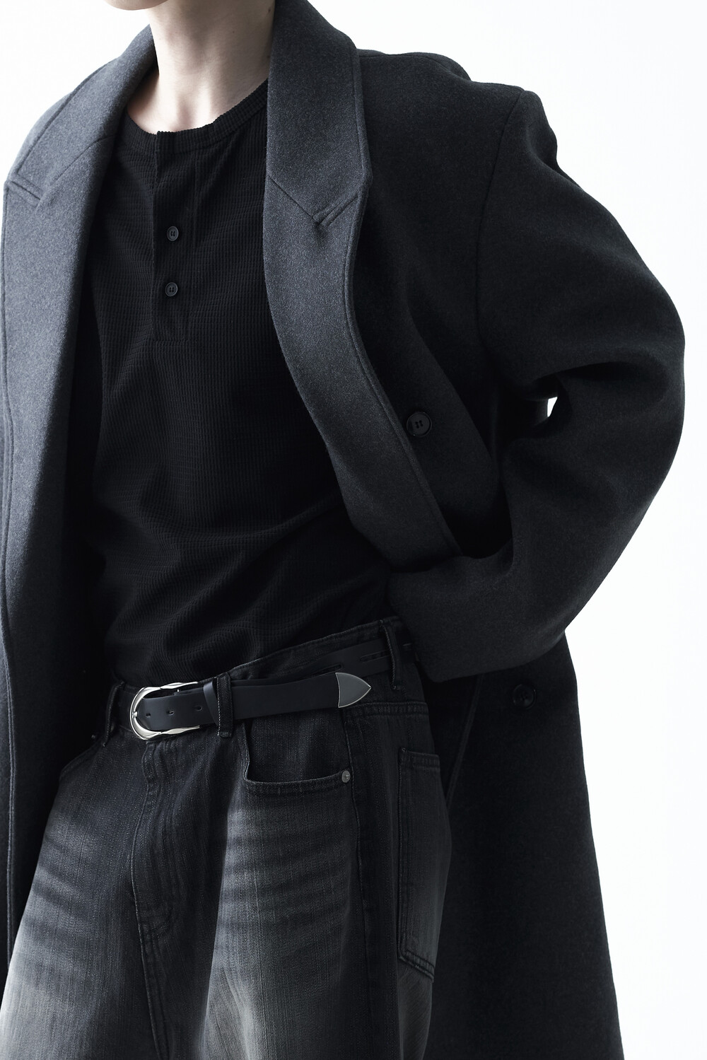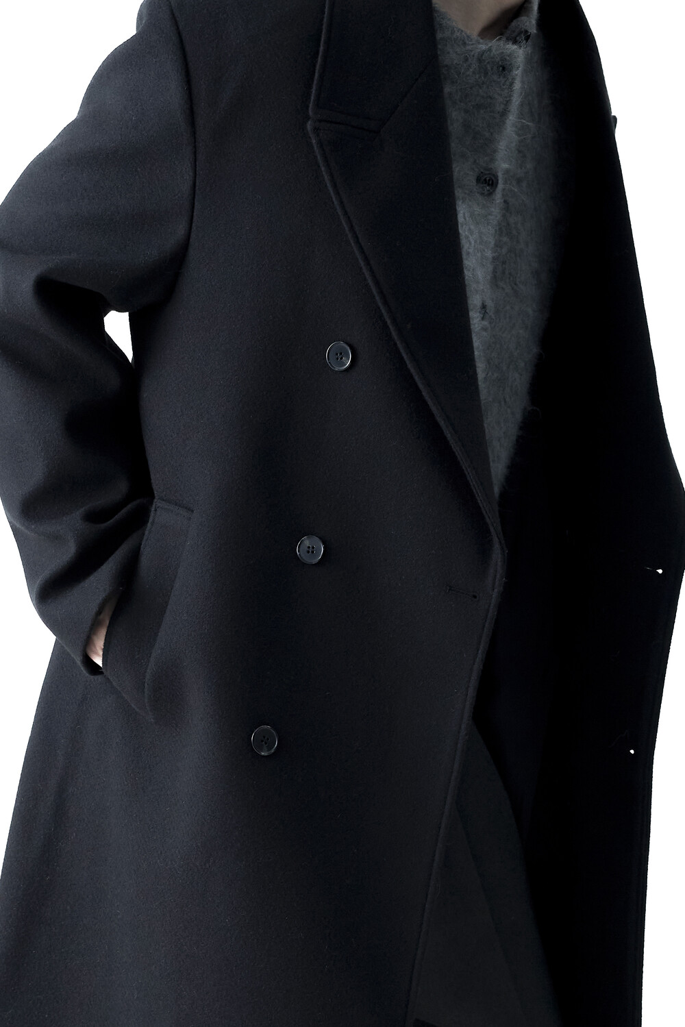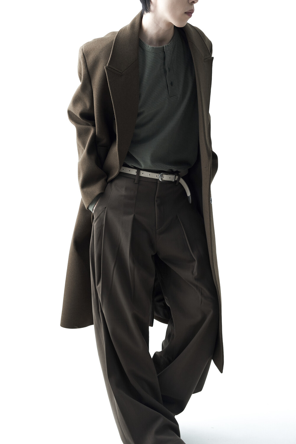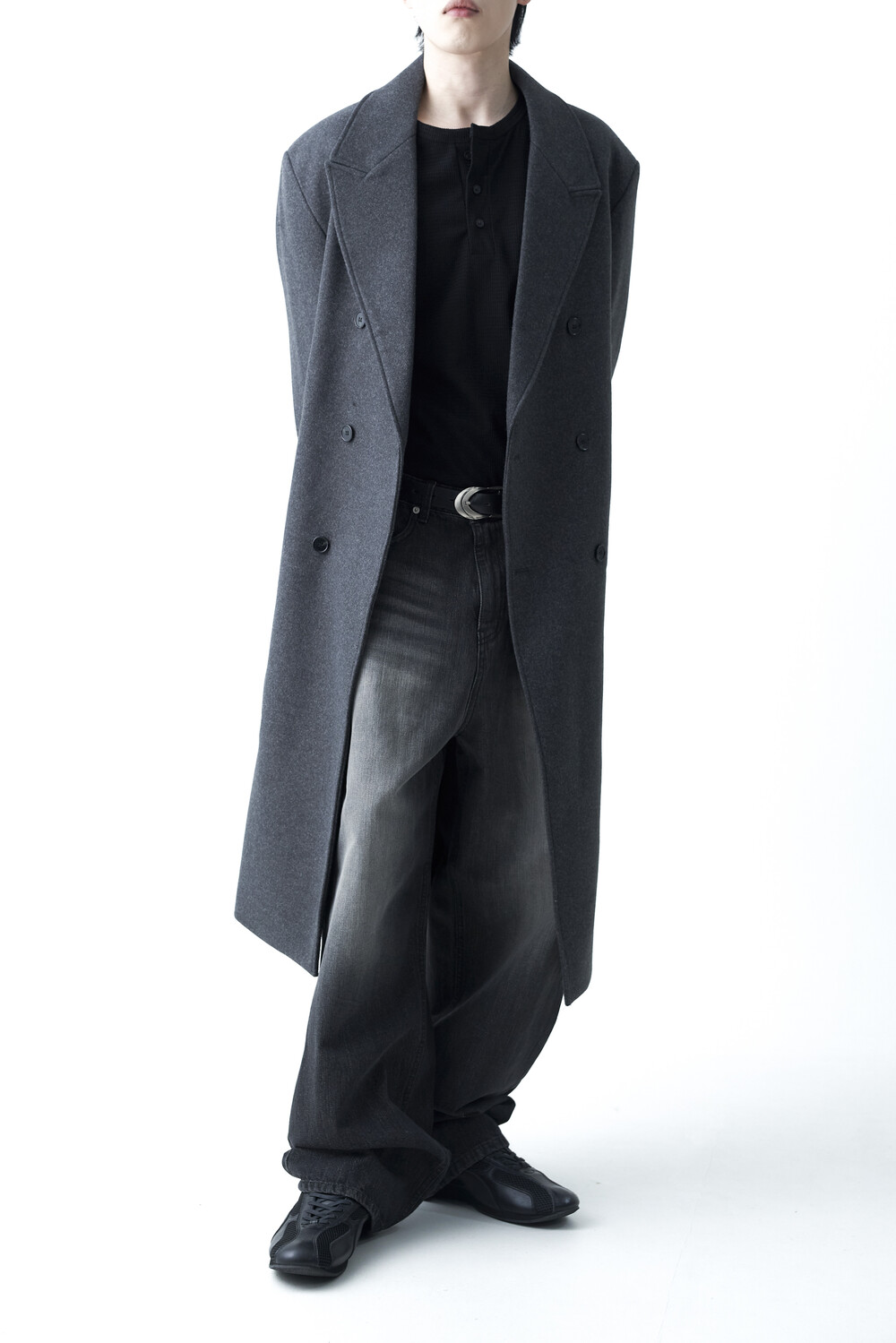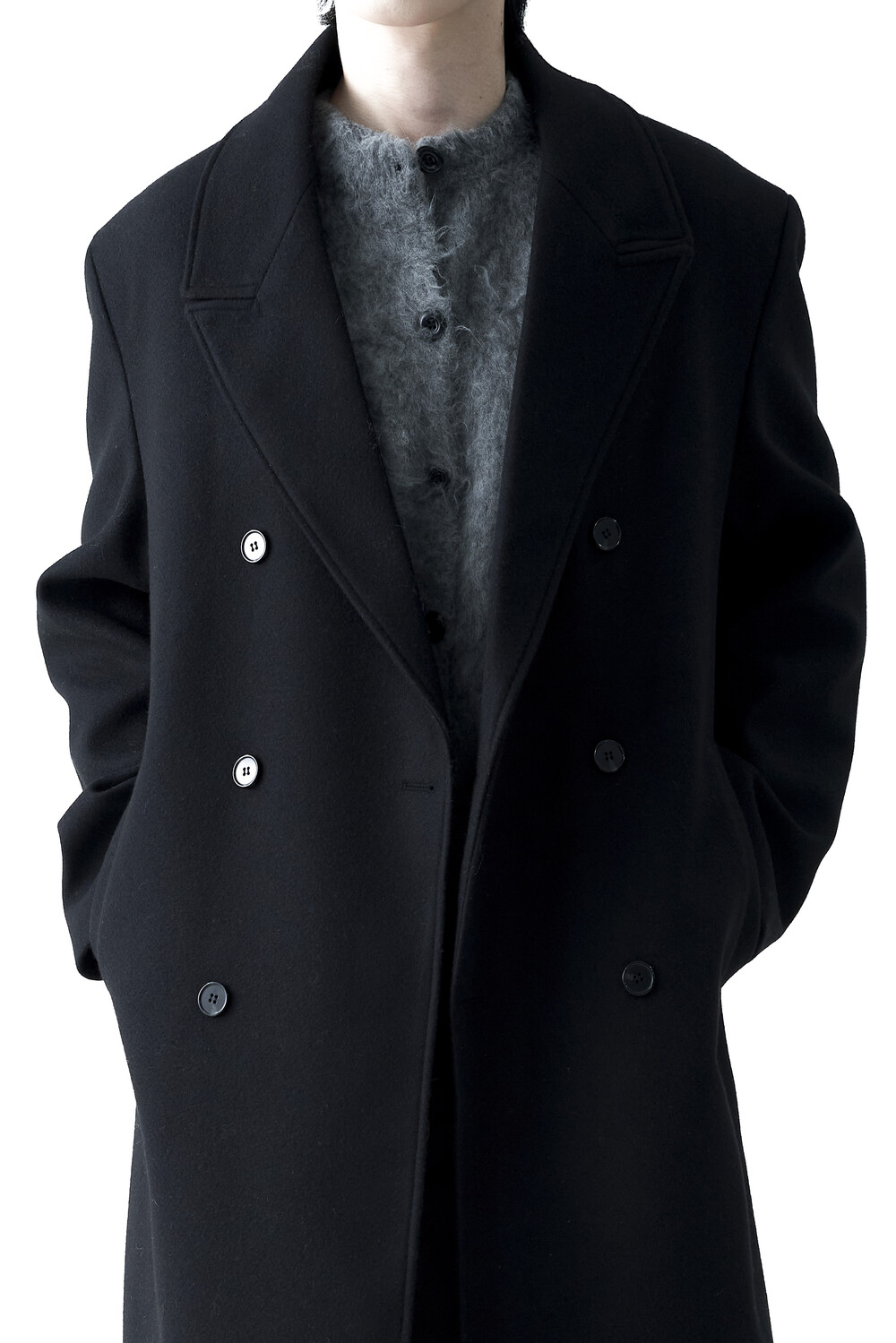 - 오버핏의 볼드한 라이닝이 가미된 울 더블 코트 제품입니다. 카라라인의 이중 라이닝이 매력적으로 접목된 디테일 코트 제품으로 와이드한 숄더라인이 매력적입니다.