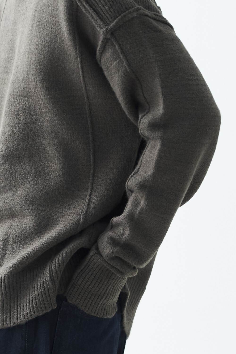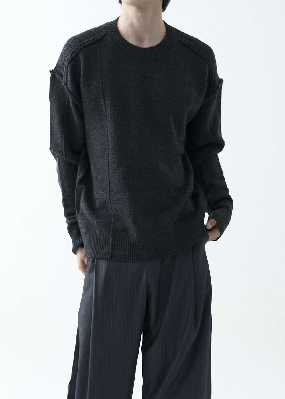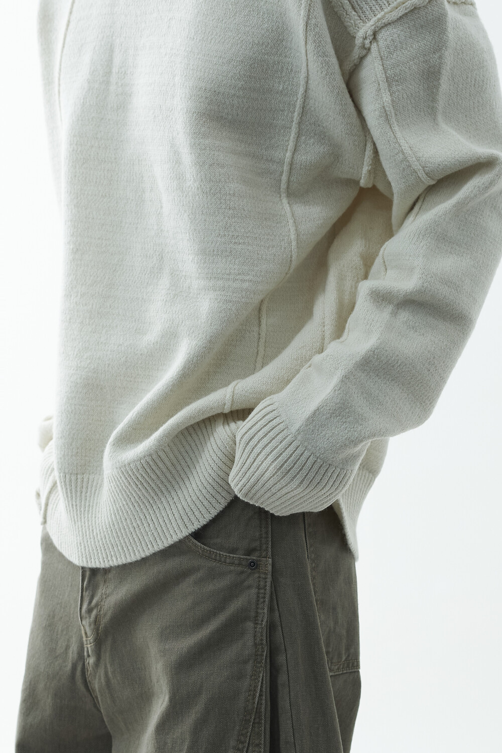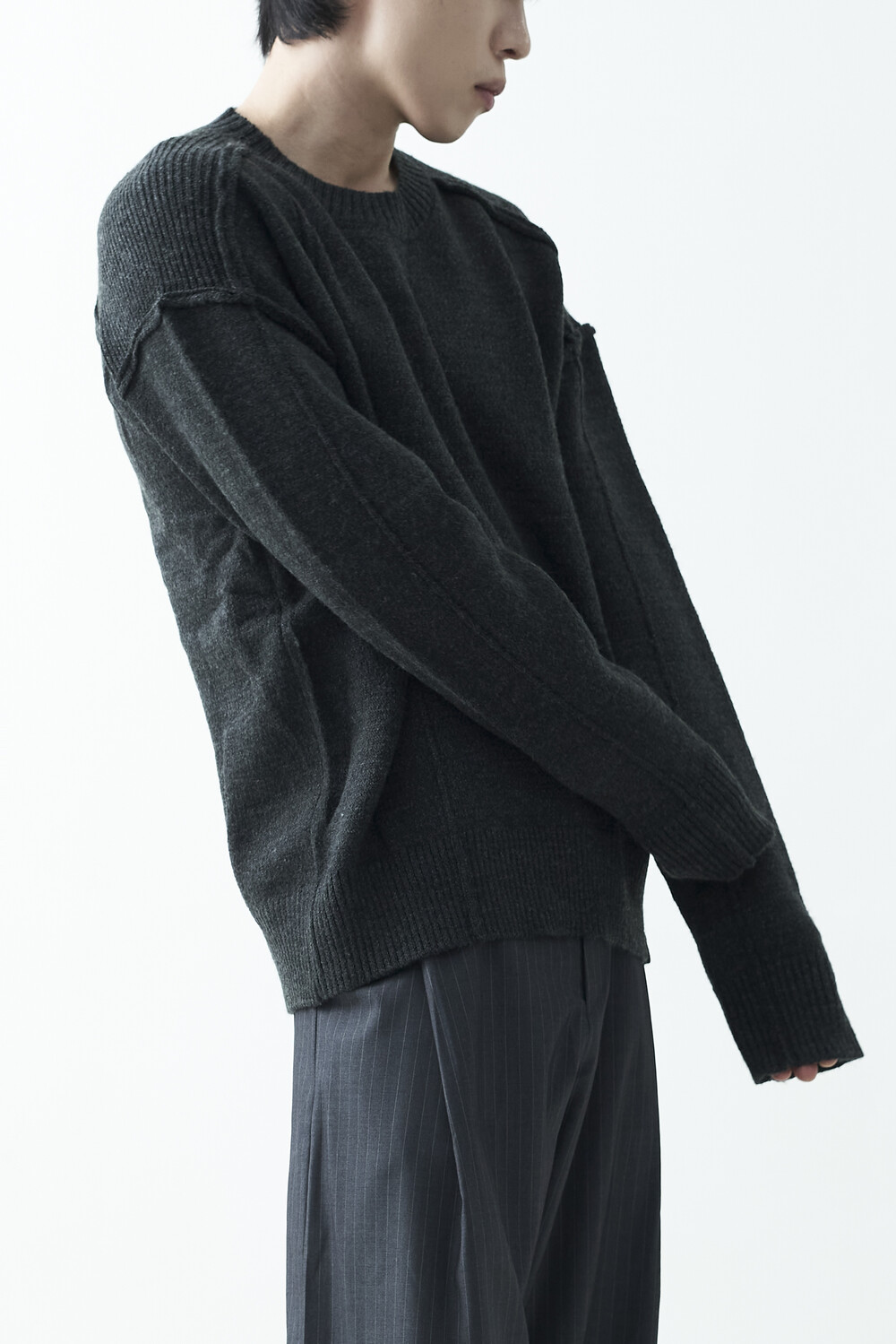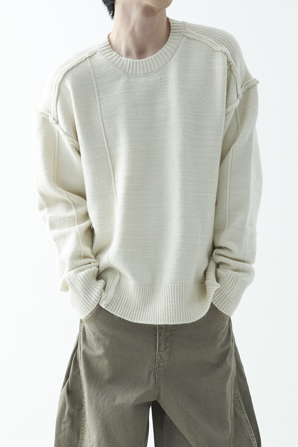 - 볼드한 밑단과 소매 디테일, 각 파트마다 적용된 라이닐 디테일이 매력적인 헤비니트 제품입니다. 도톰한 울 소재감과 함께 전체적으로 오버한 핏감+크롭한 기장감으로 구성되었습니다.