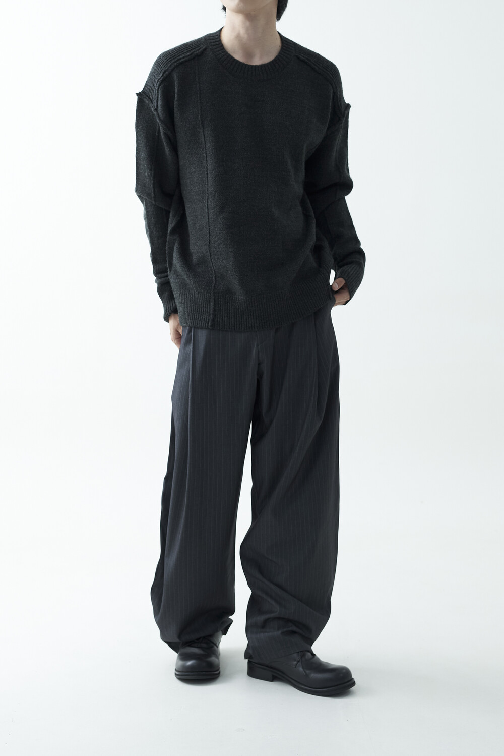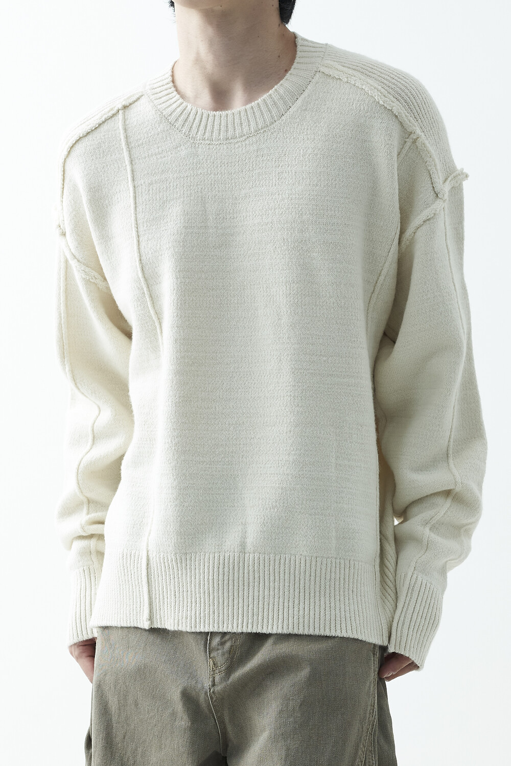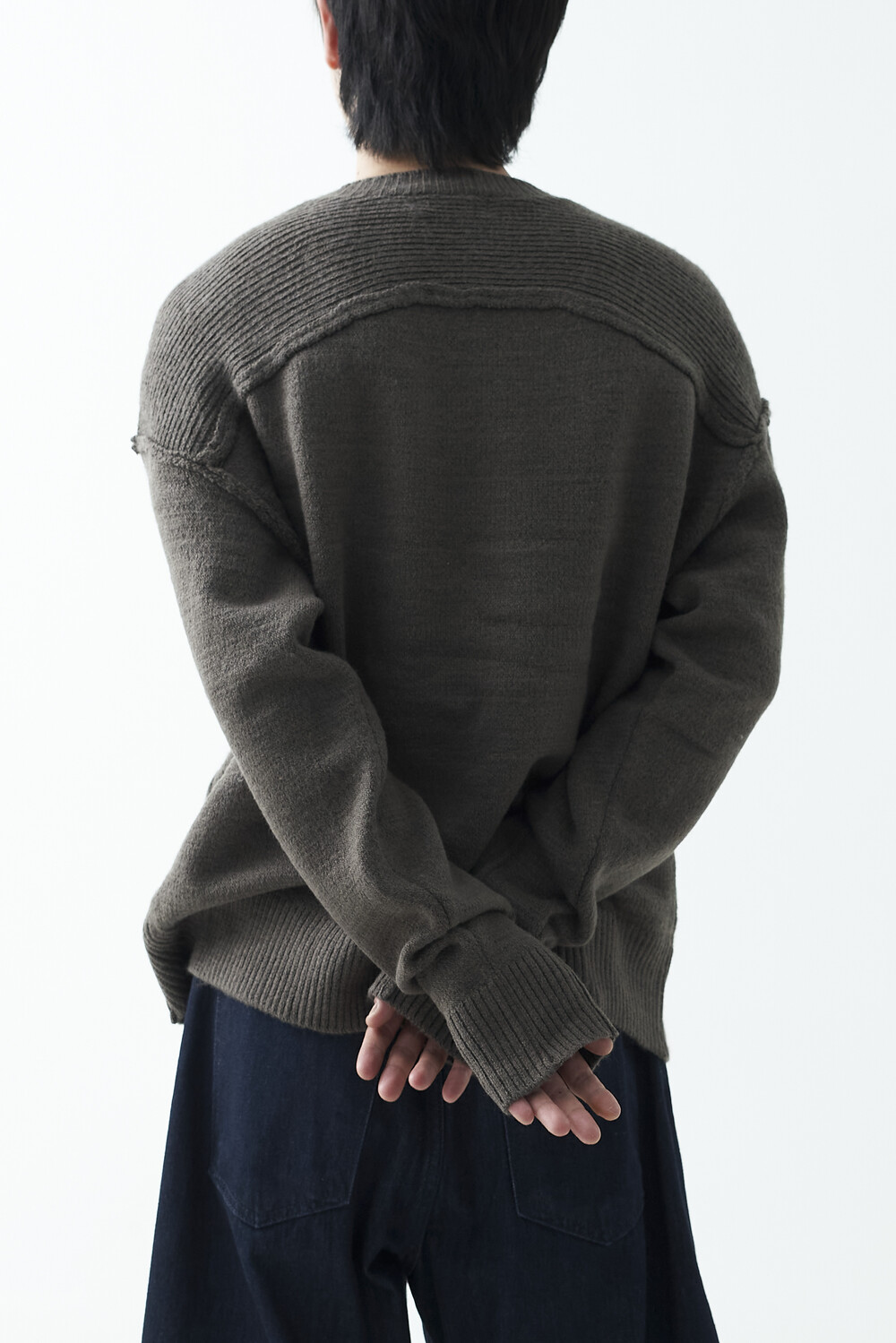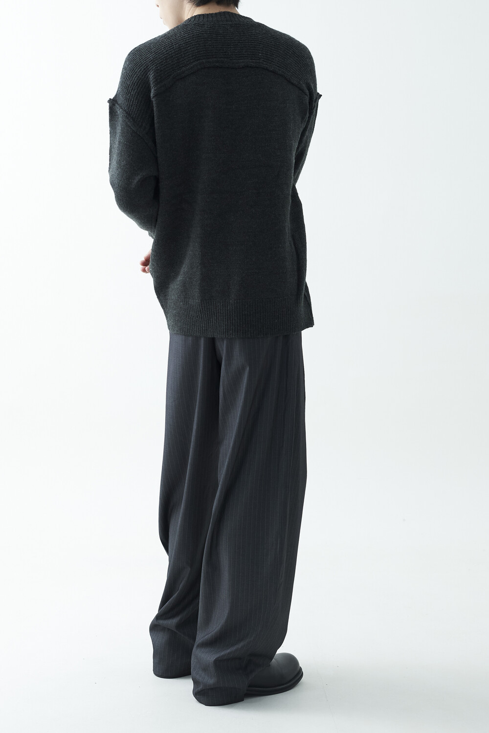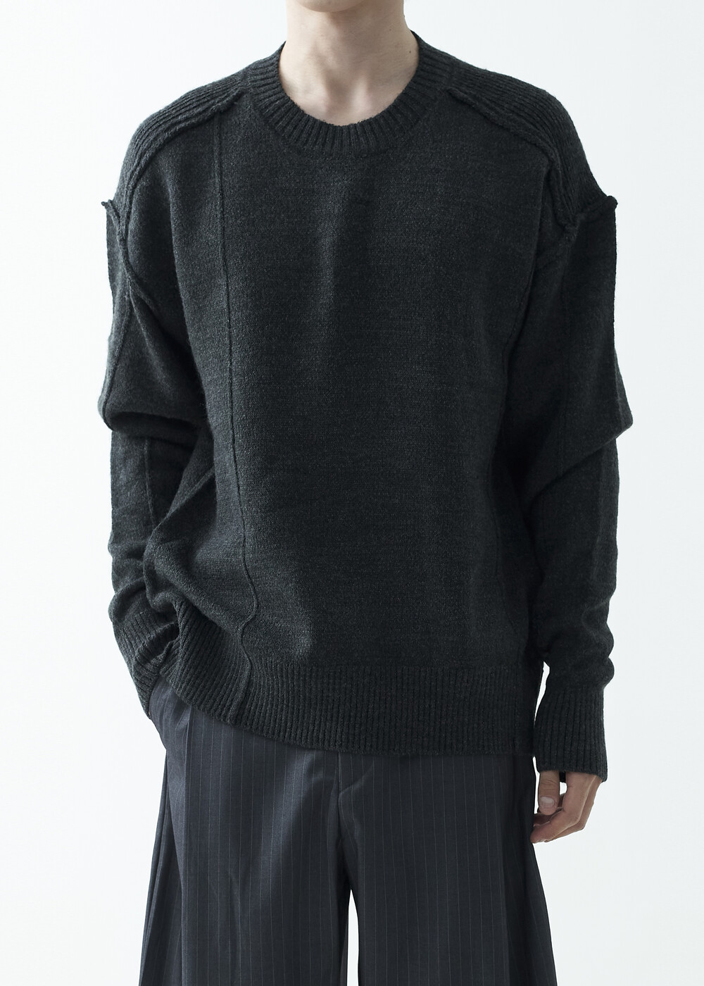 - 볼드한 밑단과 소매 디테일, 각 파트마다 적용된 라이닐 디테일이 매력적인 헤비니트 제품입니다. 도톰한 울 소재감과 함께 전체적으로 오버한 핏감+크롭한 기장감으로 구성되었습니다.