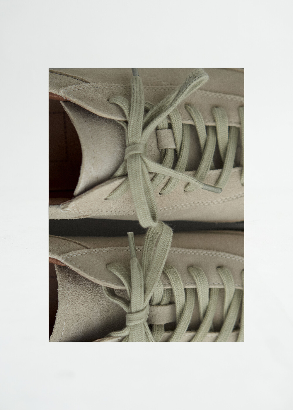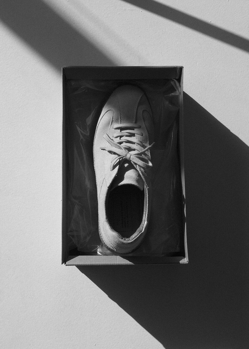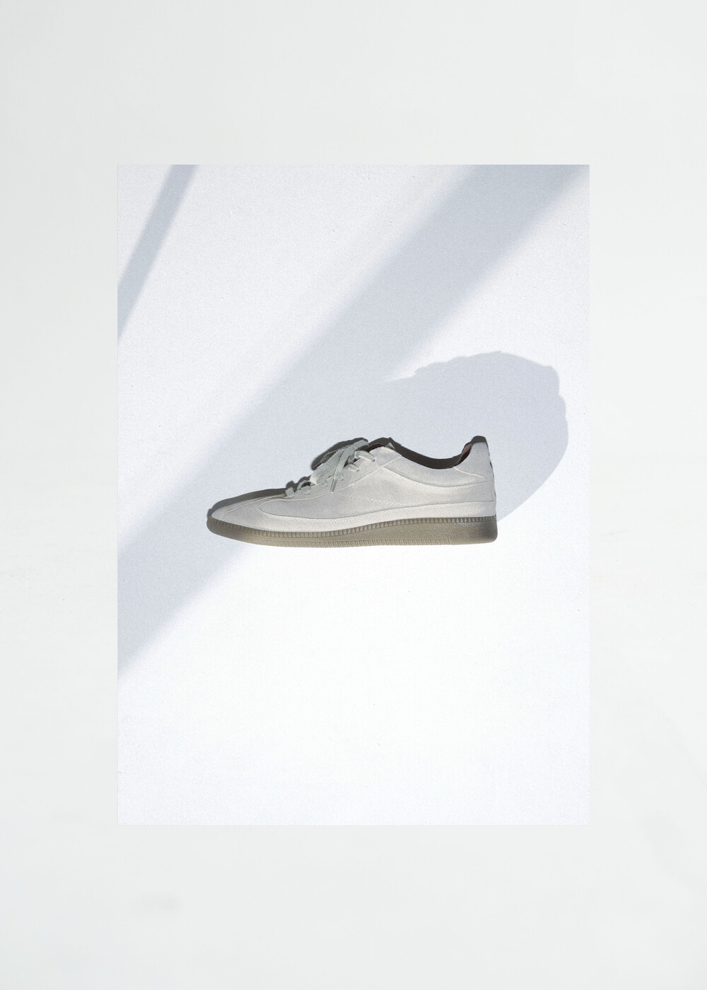 제품의 컬러와 매치업된 스트링과 스니커즈밑창의 매치업으로 캐쥬얼하면서도 미니멀한 무드를 연출합니다. 깔끔한 아웃핏을 나타낼 수 있도록 날렵하게 뻗어진 형태로 제작되었습니다.
