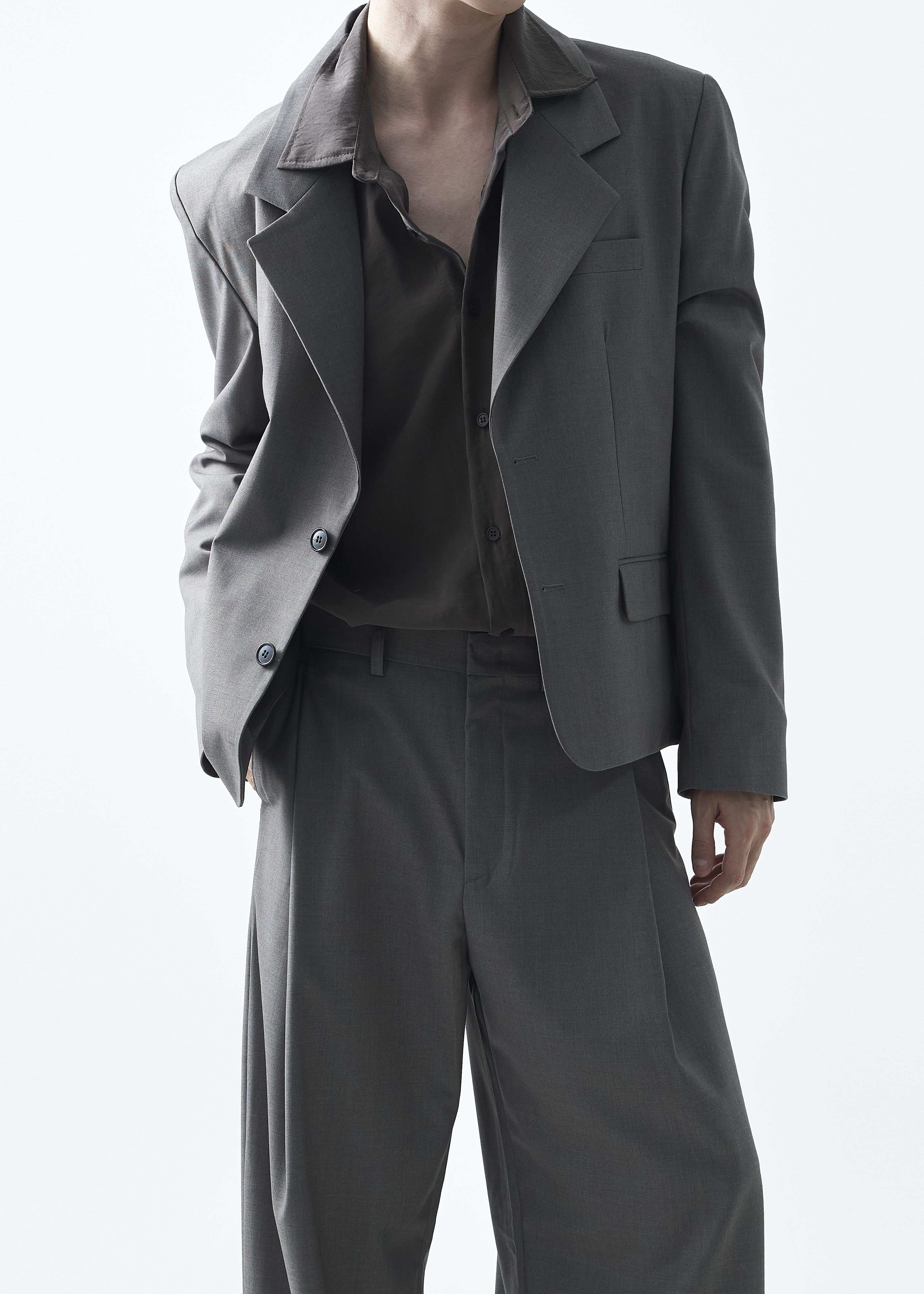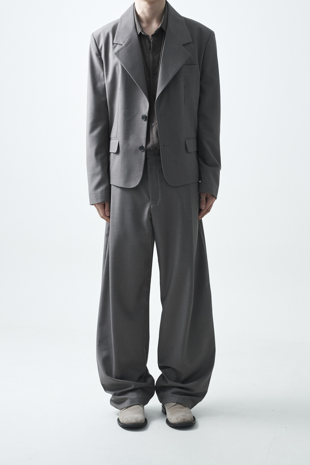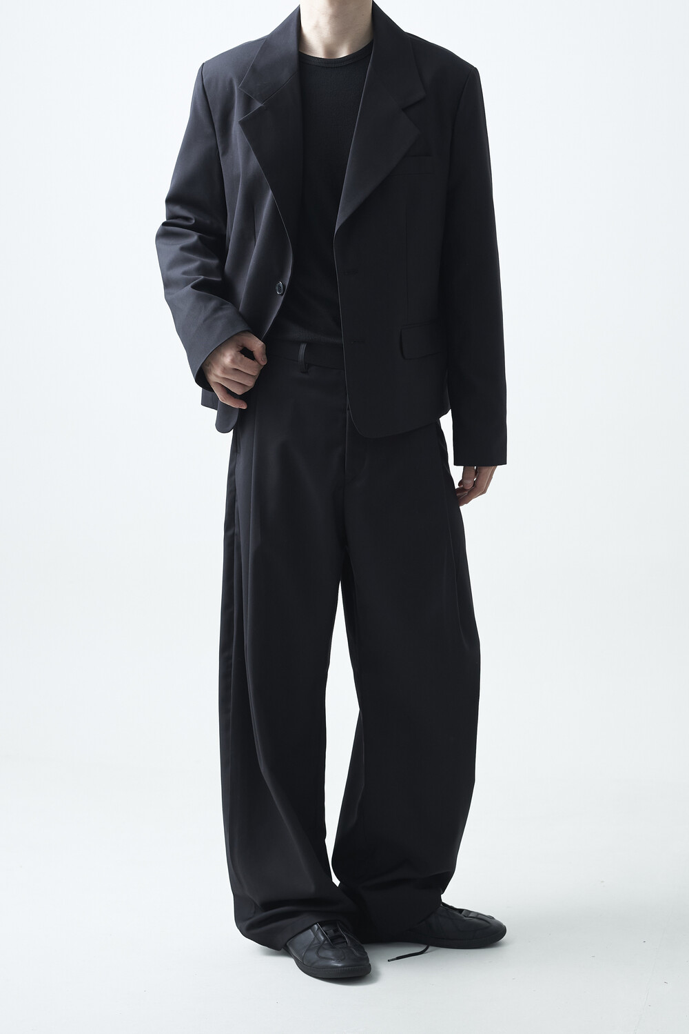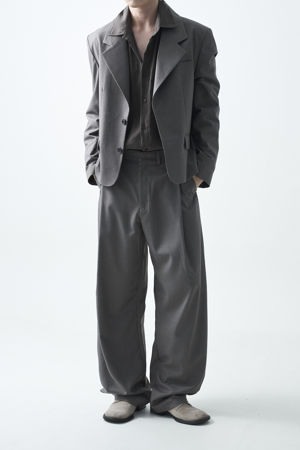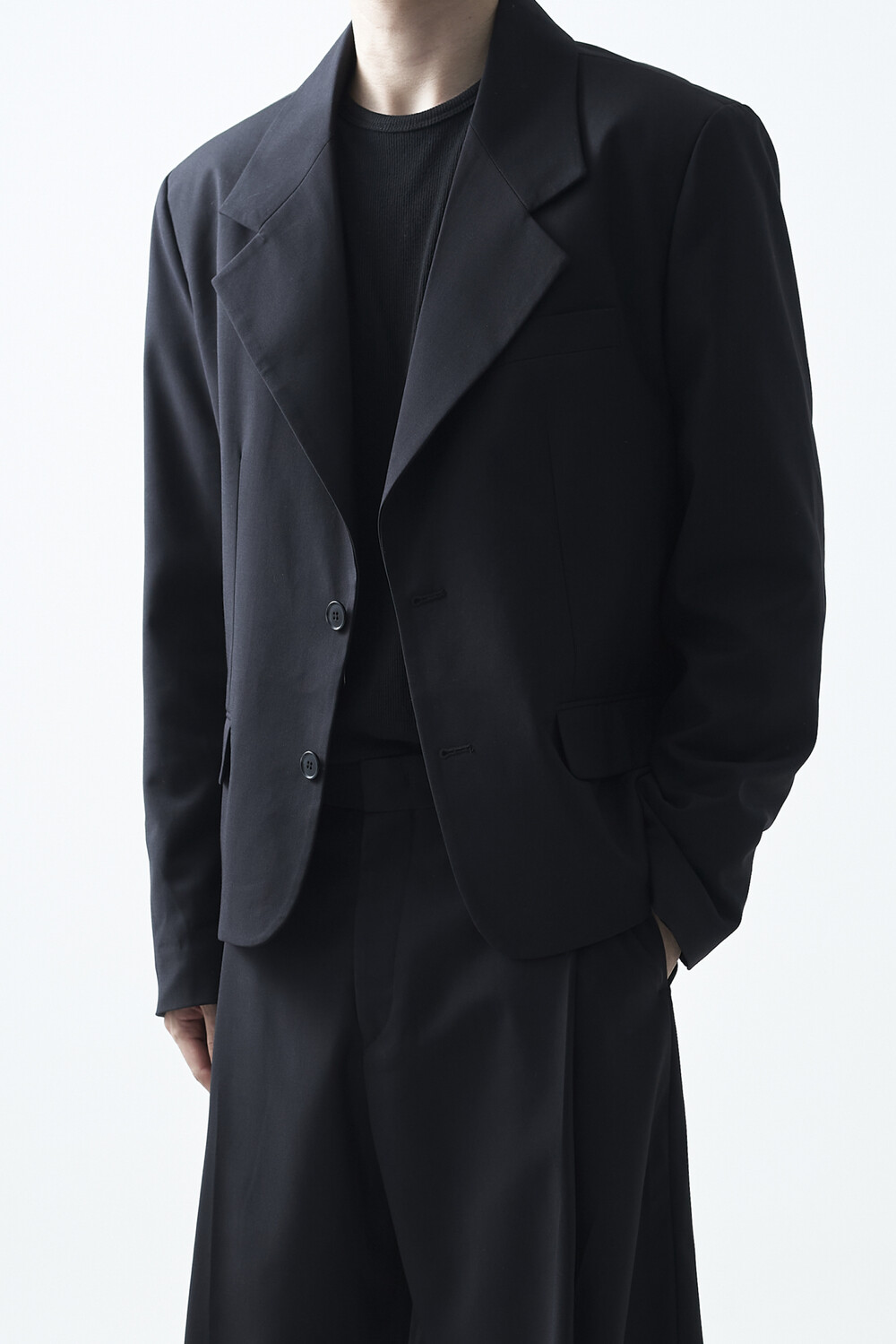 크롭한 기장감와 와이드한 라펠로 유니크한 매력을 보여주는 투버튼 블레이져 자켓 제품입니다. 슬림 크롭핏으로 와이드한 팬츠와 높은 매칭력을 갖췄으며 투포켓/투버튼으로 디테일로 더욱 미니멀한 감성을 더했습니다.