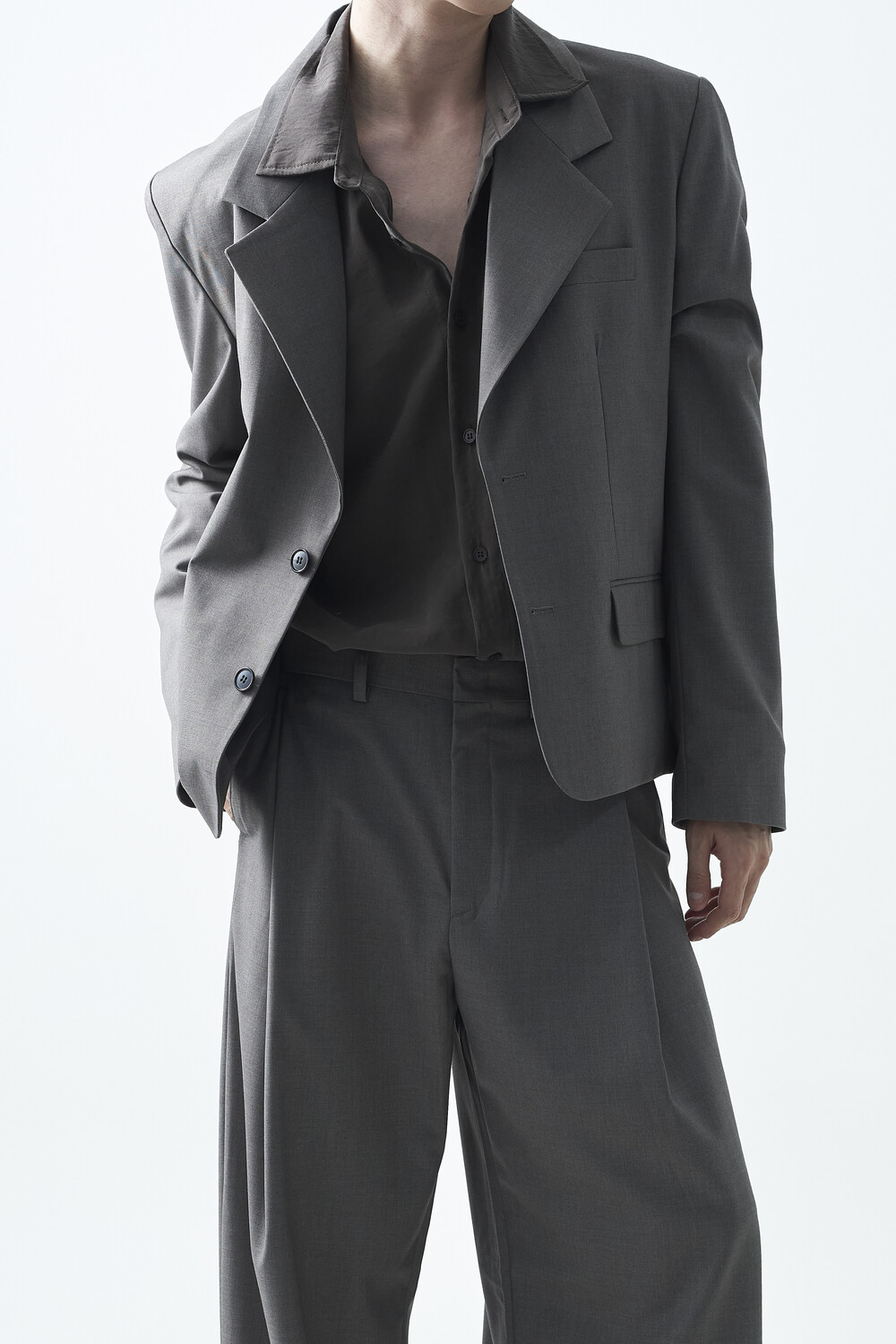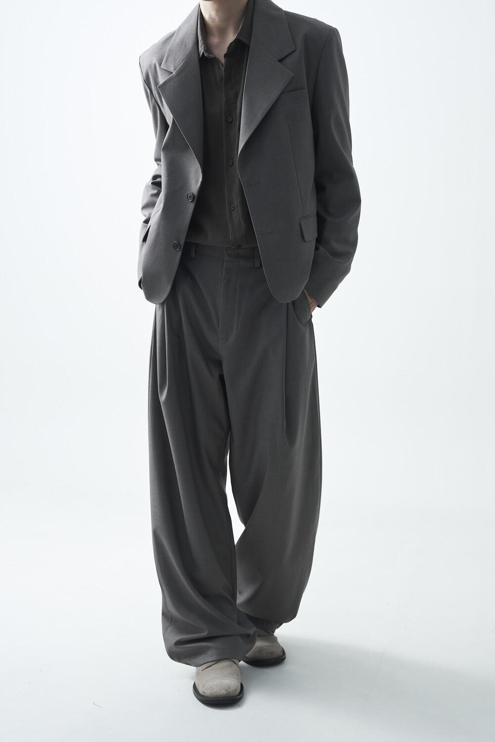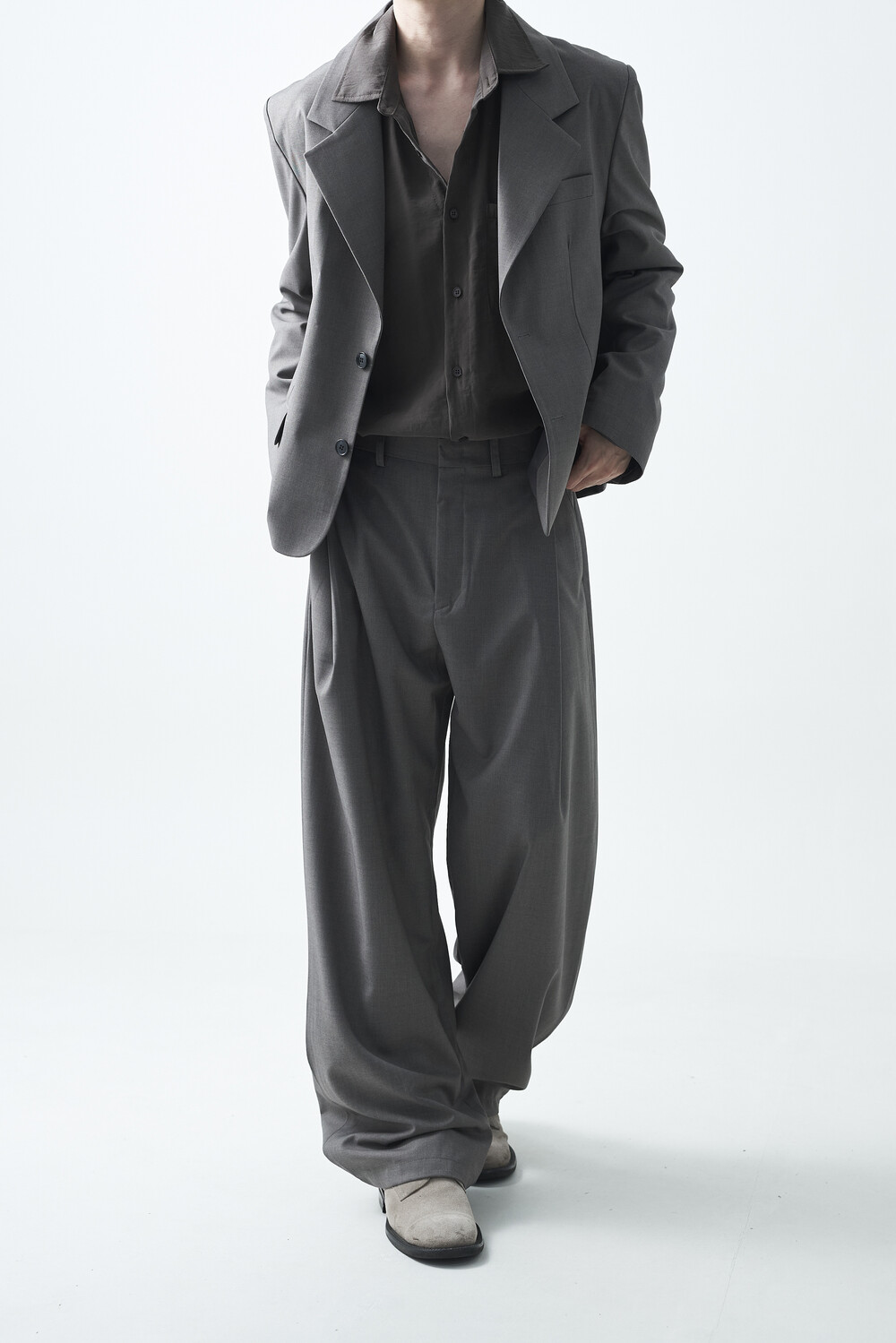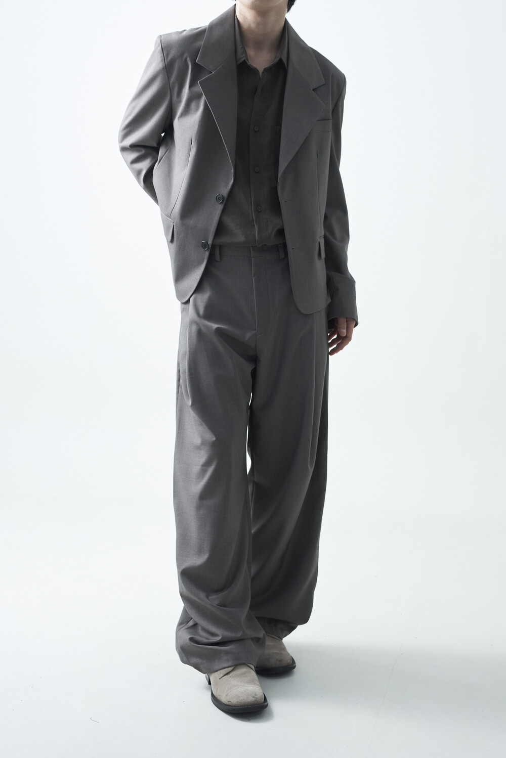 크롭한 기장감와 와이드한 라펠로 유니크한 매력을 보여주는 투버튼 블레이져 자켓 제품입니다. 슬림 크롭핏으로 와이드한 팬츠와 높은 매칭력을 갖췄으며 투포켓/투버튼으로 디테일로 더욱 미니멀한 감성을 더했습니다.
